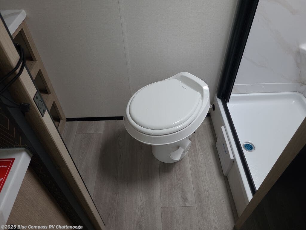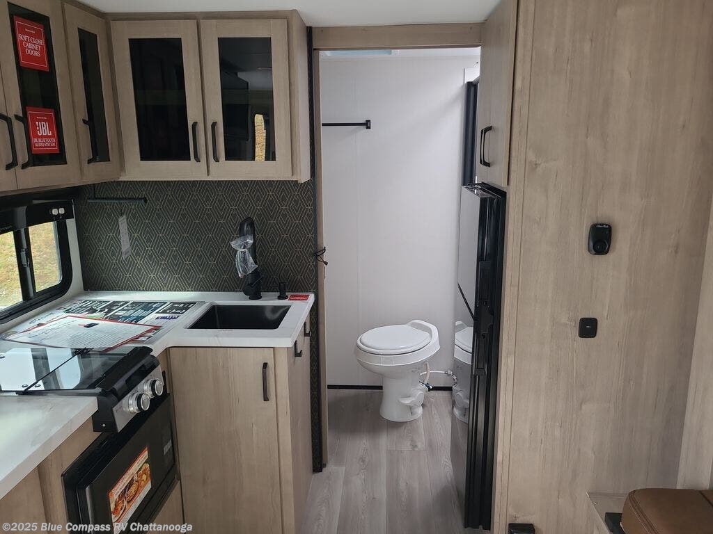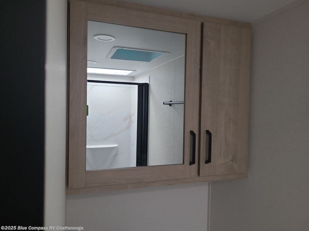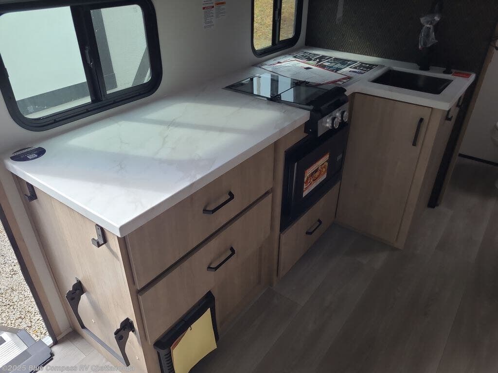 Pack your bags and head out on a fun camping trip in this travel trailer! The front queen bed offers a comfortable place to sleep at night, as well as the roll-over sleeper sofa slide with shoe storage. You can make meals on the cooktop or in the convection microwave. The full rear bathroom has a walk-in shower with an oversized vanity to easily get ready each day. Outside, you'll find a spray port, an unobstructed pass-thru storage, and an interior/exterior table to use at your convenience.