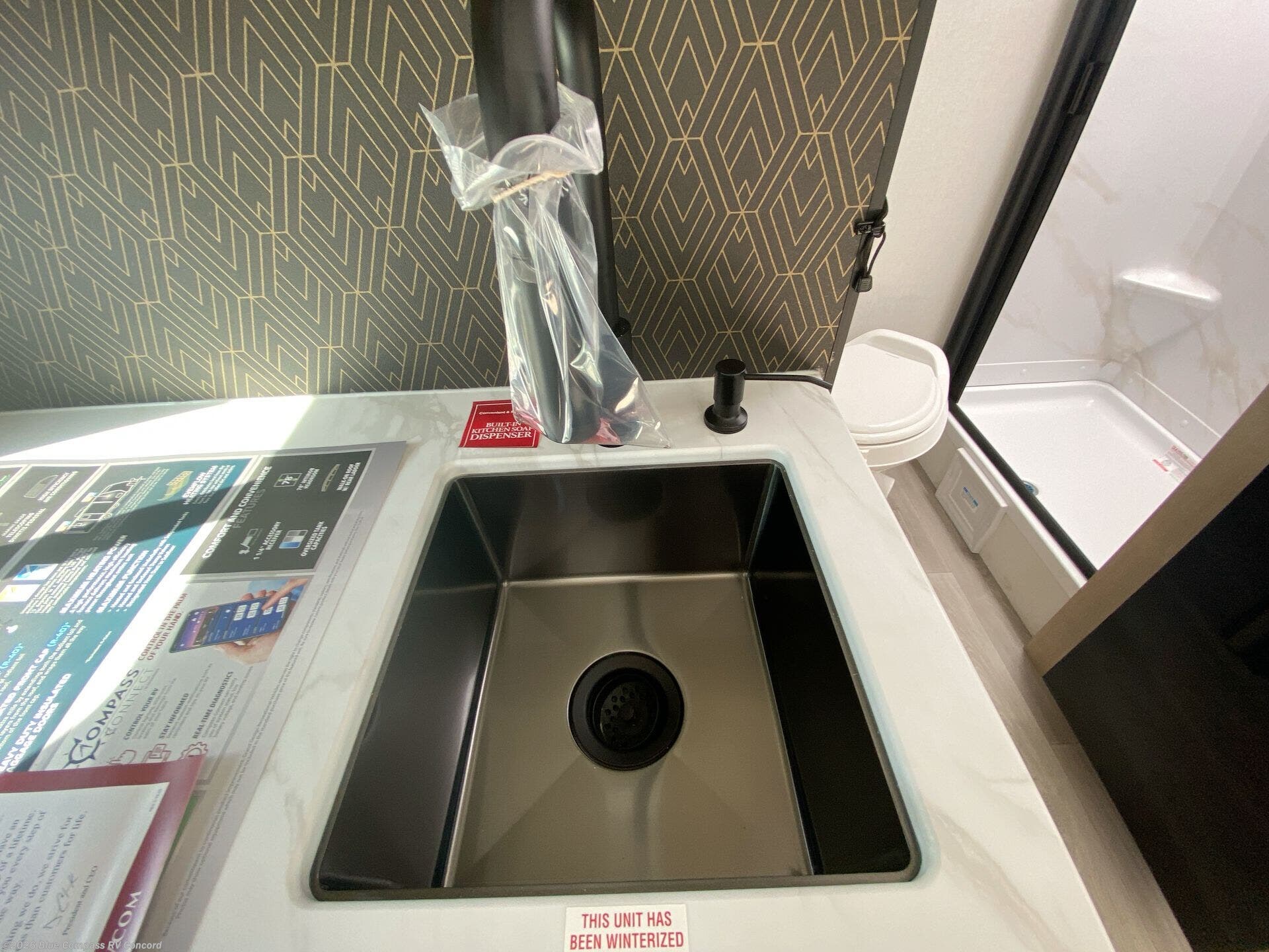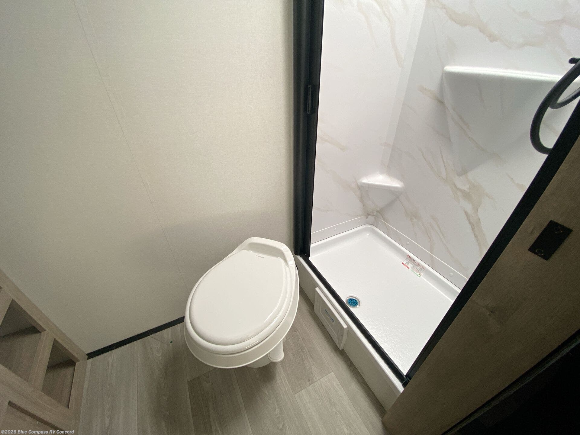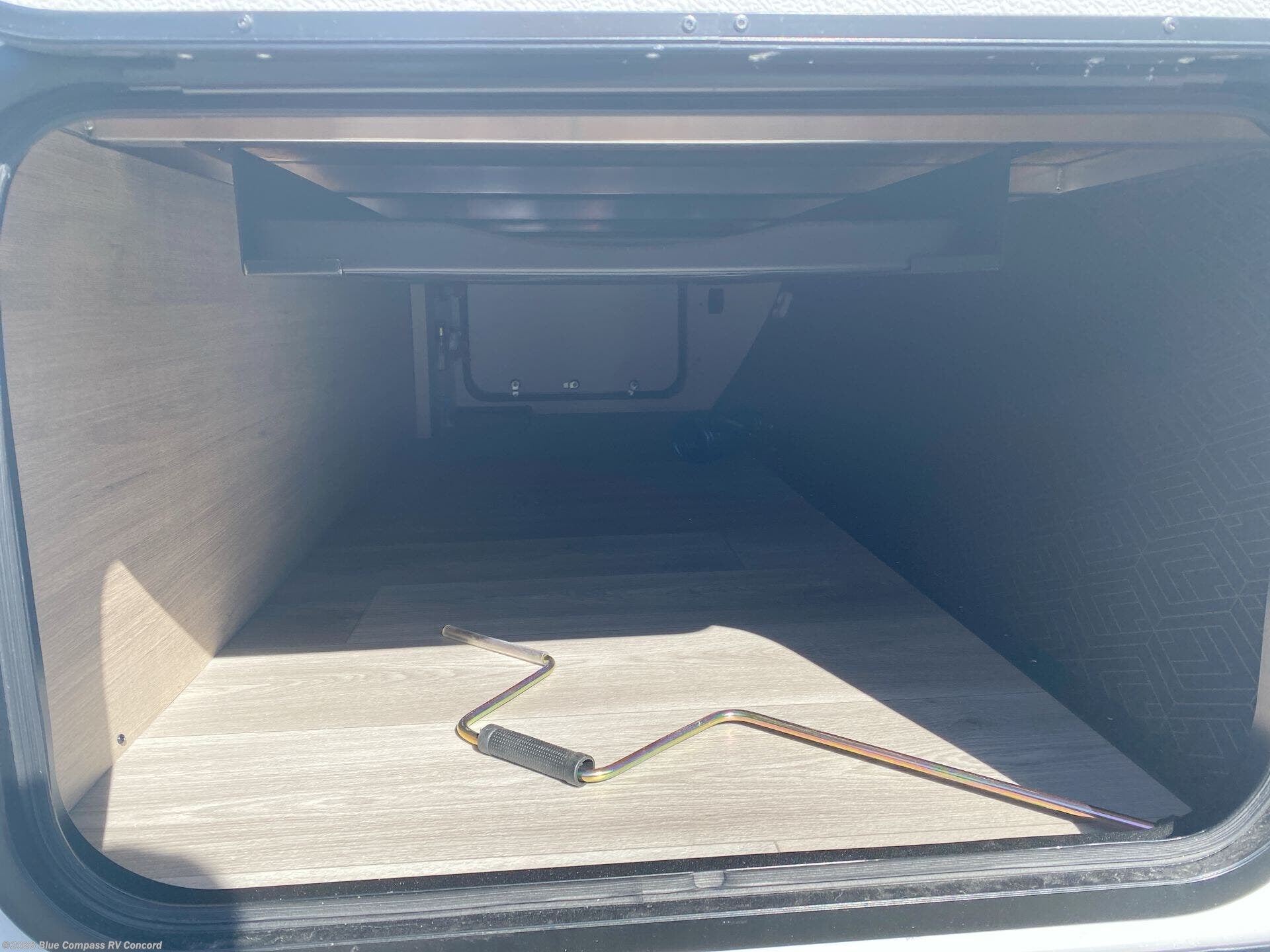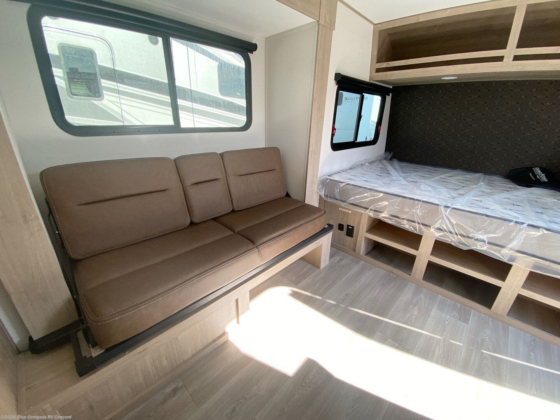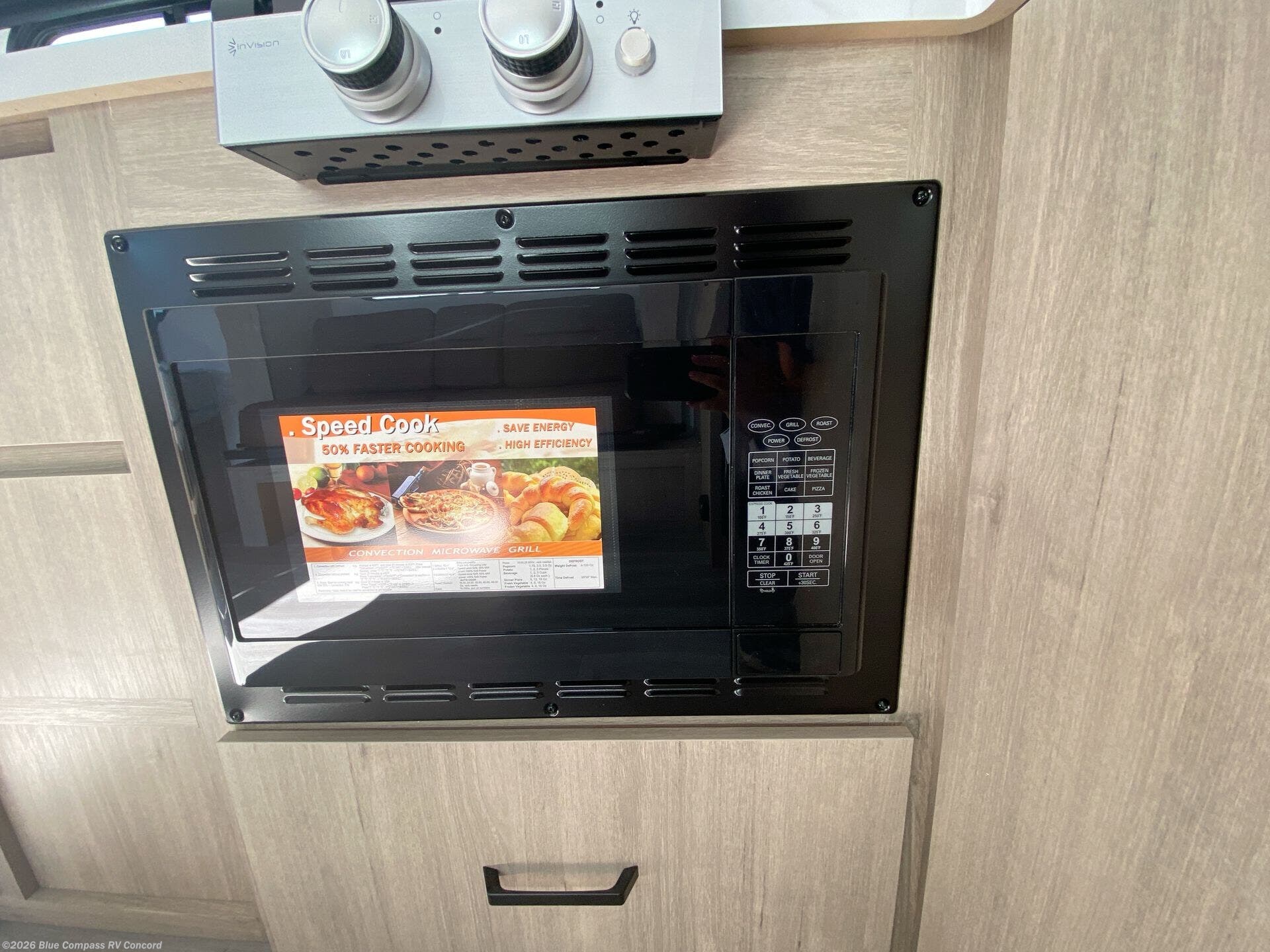 Pack your bags and head out on a fun camping trip in this travel trailer! The front queen bed offers a comfortable place to sleep at night, as well as the roll-over sleeper sofa slide with shoe storage. You can make meals on the cooktop or in the convection microwave. The full rear bathroom has a walk-in shower with an oversized vanity to easily get ready each day. Outside, you'll find a spray port, an unobstructed pass-thru storage, and an interior/exterior table to use at your convenience.