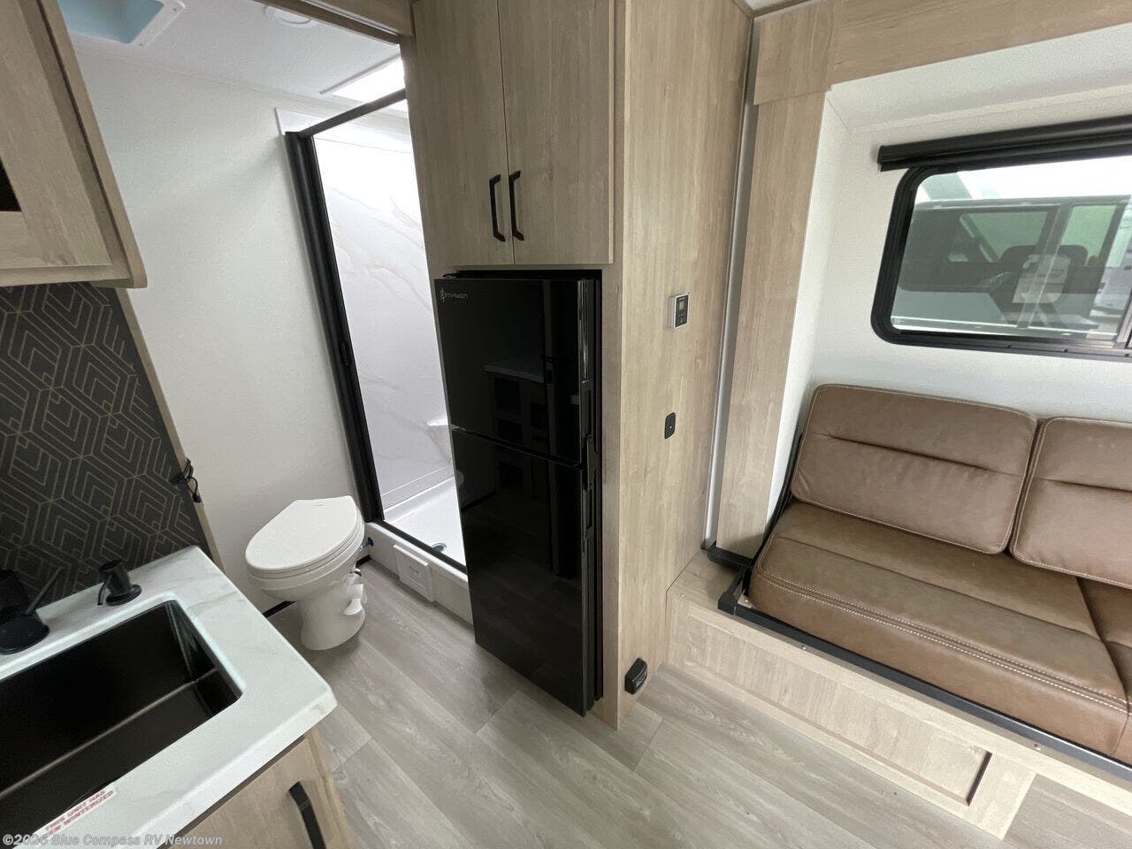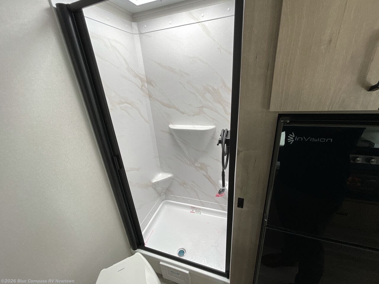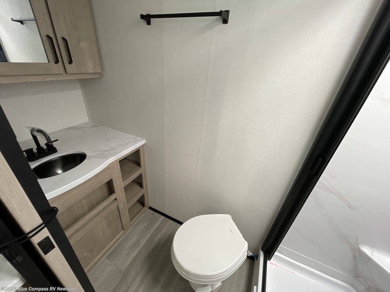 Pack your bags and head out on a fun camping trip in this travel trailer! The front queen bed offers a comfortable place to sleep at night, as well as the roll-over sleeper sofa slide with shoe storage. You can make meals on the cooktop or in the convection microwave. The full rear bathroom has a walk-in shower with an oversized vanity to easily get ready each day. Outside, you'll find a spray port, an unobstructed pass-thru storage, and an interior/exterior table to use at your convenience.