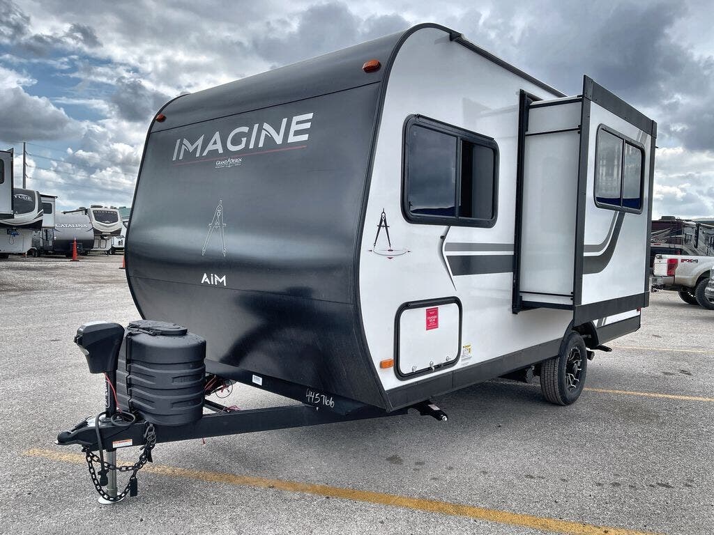 Aim for new destinations in one of these Grand Design Imagine AIM travel trailers! They are constructed to a superior standard with the 4-Seasons Protection Package that features a heated and enclosed underbelly with suspended tanks, a moisture barrier floor enclosure, a double insulated roof and front wall, and more. There is backup camera prep outside, along with a universal docking station, and a power tongue jack. You are sure to feel at home with residential cabinetry, premium window treatments, residential countertops, and a spacious walk-in shower to name a few comforts. The on-demand tankless water heater is a feature you won't want to camp without and the hi-definition LED TV will ensure you'll never go bored on rainy days. Each model also comes with four AIM packages; the Peace of Mind Package, The Ultimate Power Package, The 4-Season Protection Package, and the Solar Package!