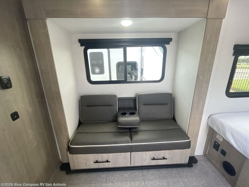 Pack your bags and head out on a fun camping trip in this travel trailer! The front queen bed offers a comfortable place to sleep at night, as well as the roll-over sleeper sofa slide with shoe storage. You can make meals on the cooktop or in the convection microwave. The full rear bathroom has a walk-in shower with an oversized vanity to easily get ready each day. Outside, you'll find a spray port, an unobstructed pass-thru storage, and an interior/exterior table to use at your convenience.