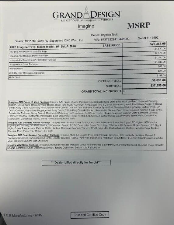 Request More Info on this 2026 Grand Design Imagine AIM 19MLA Offered for sale by McClain's RV Oklahoma City