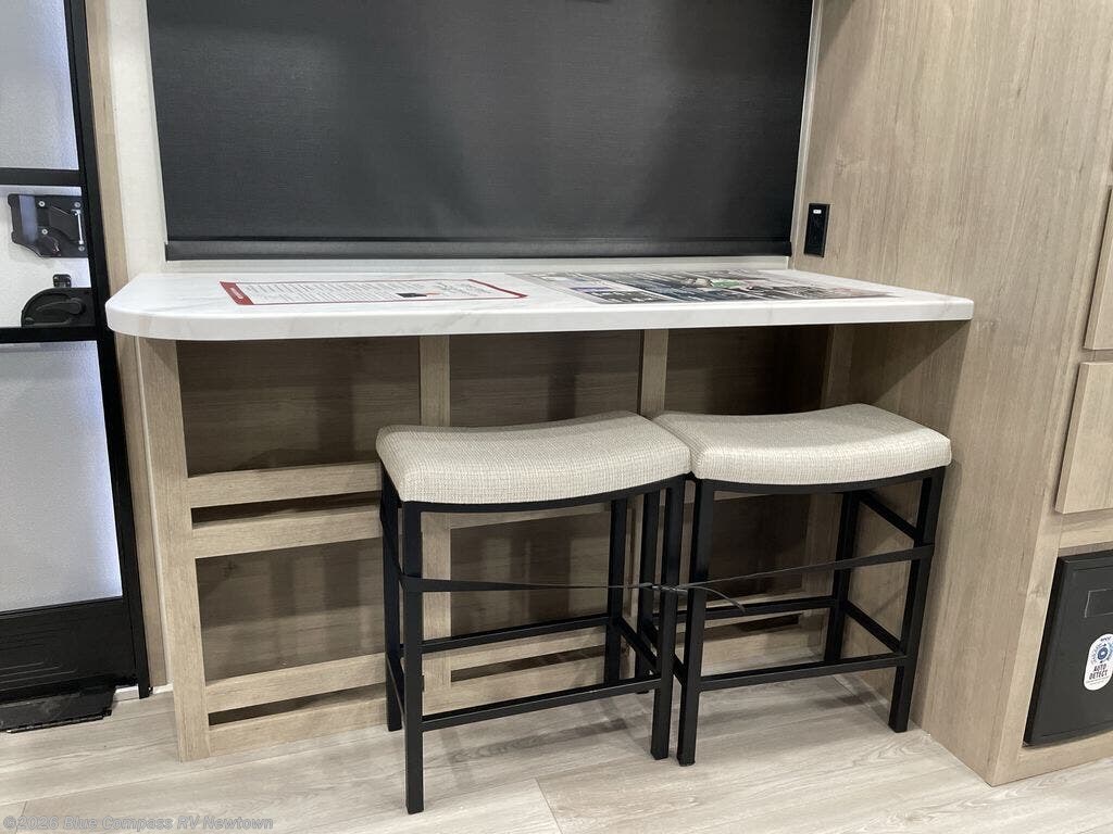 Pack your bags and head out on a fun camping trip in this travel trailer! The front queen bed offers a comfortable place to sleep at after taking off your footwear and place them in the shoe storage. You can make meals on the cooktop or in the convection microwave. The full rear corner bathroom has a walk-in shower with an oversized vanity to easily get ready each day. Outside, you'll find a spray port, an unobstructed pass-thru storage, and an interior/exterior table to use at your convenience.