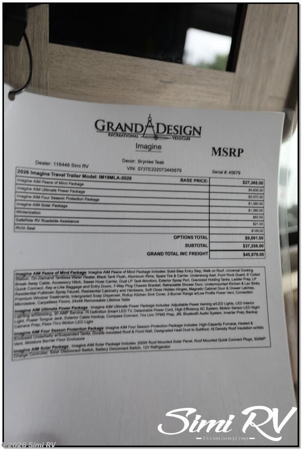 Request More Info on this 2026 Grand Design Imagine AIM 19MLA Offered for sale by Simi RV