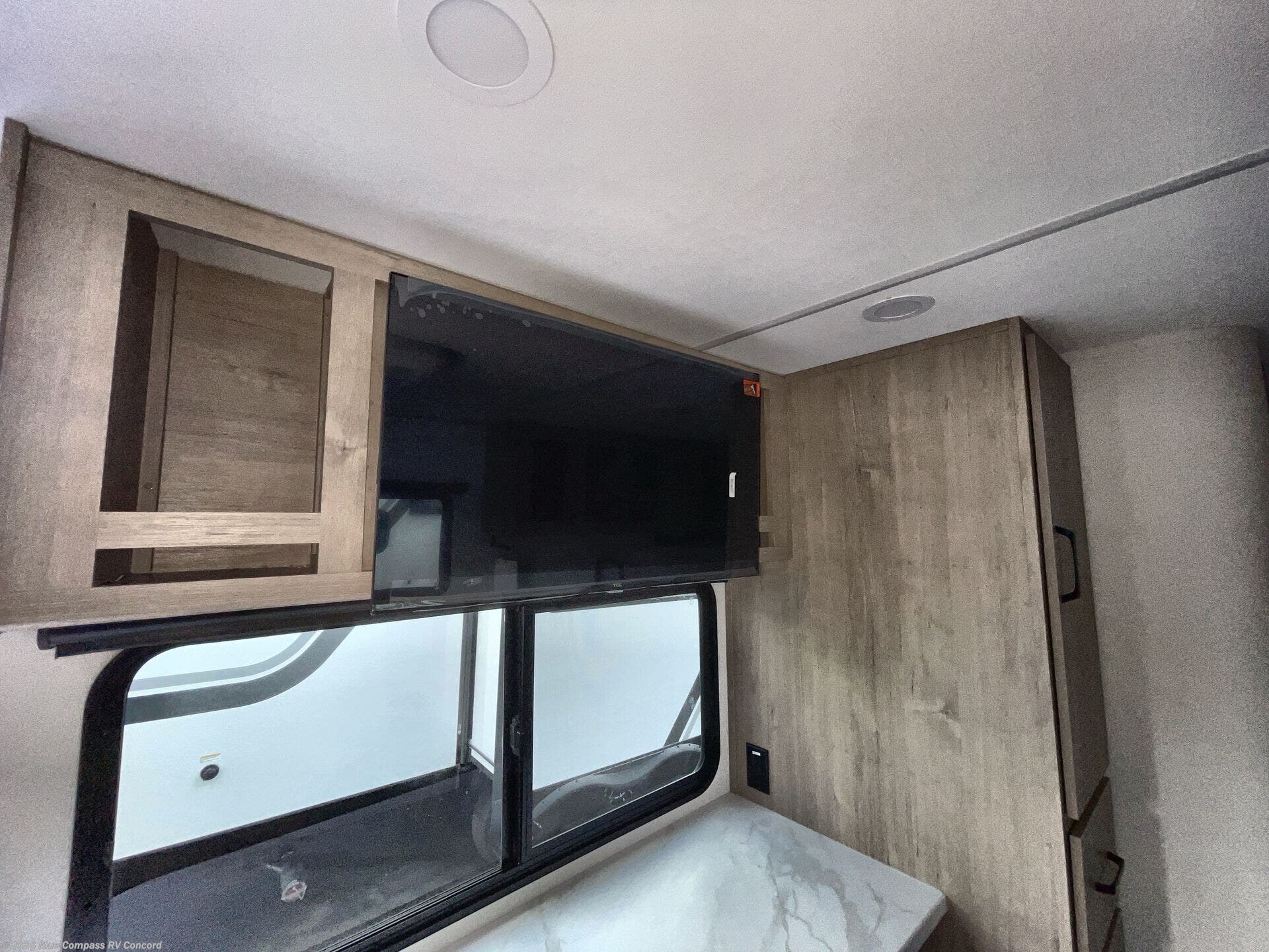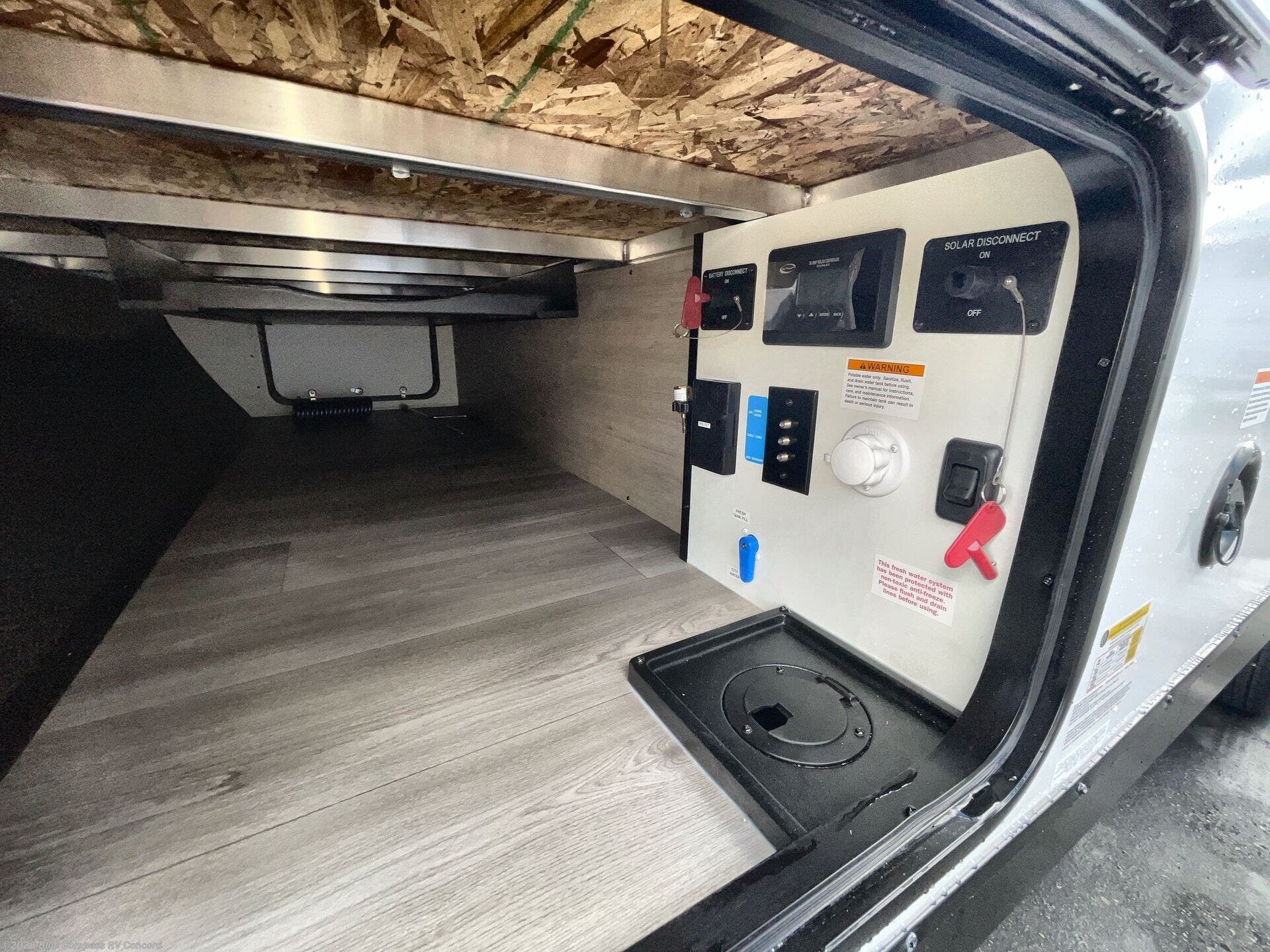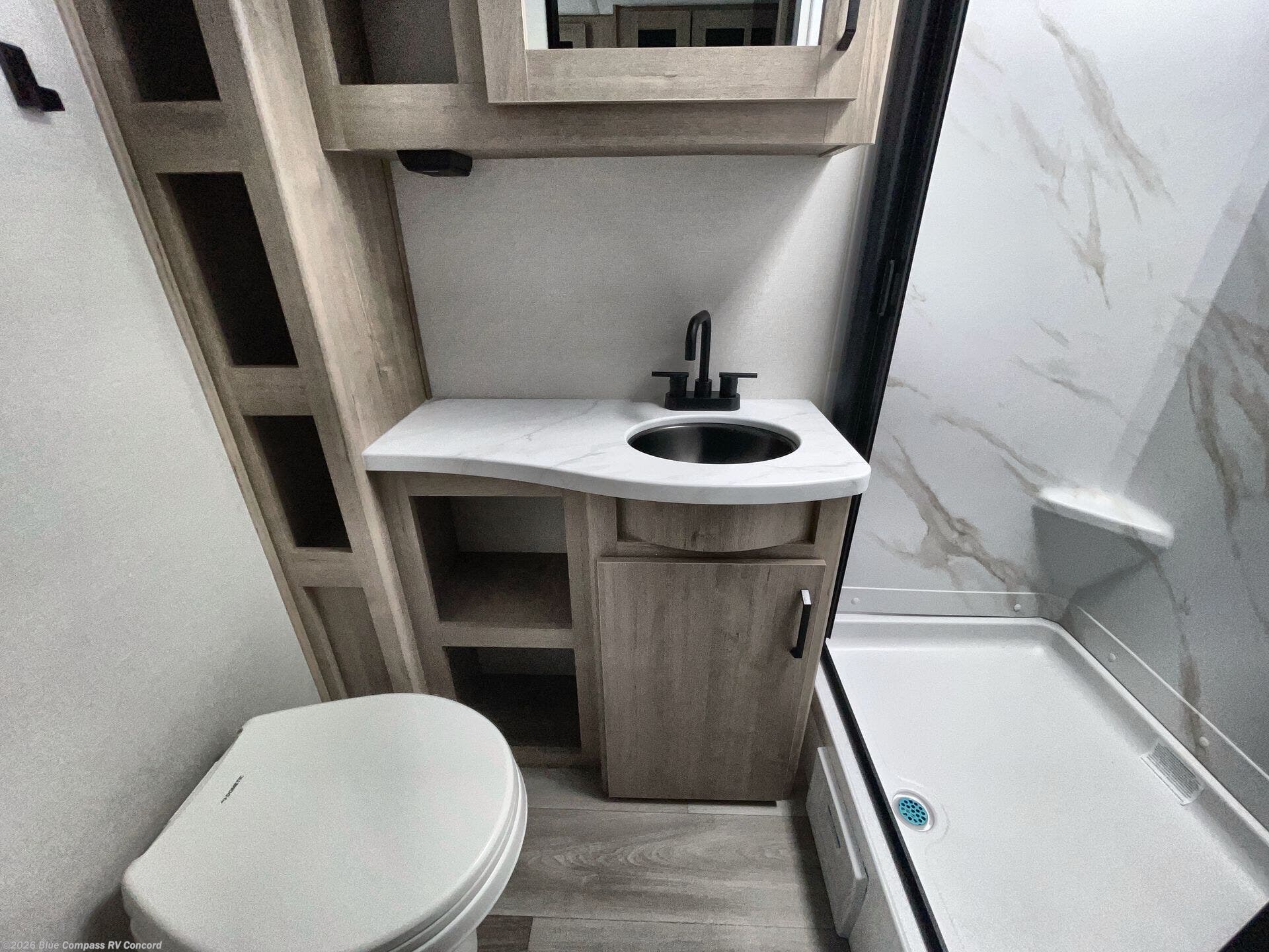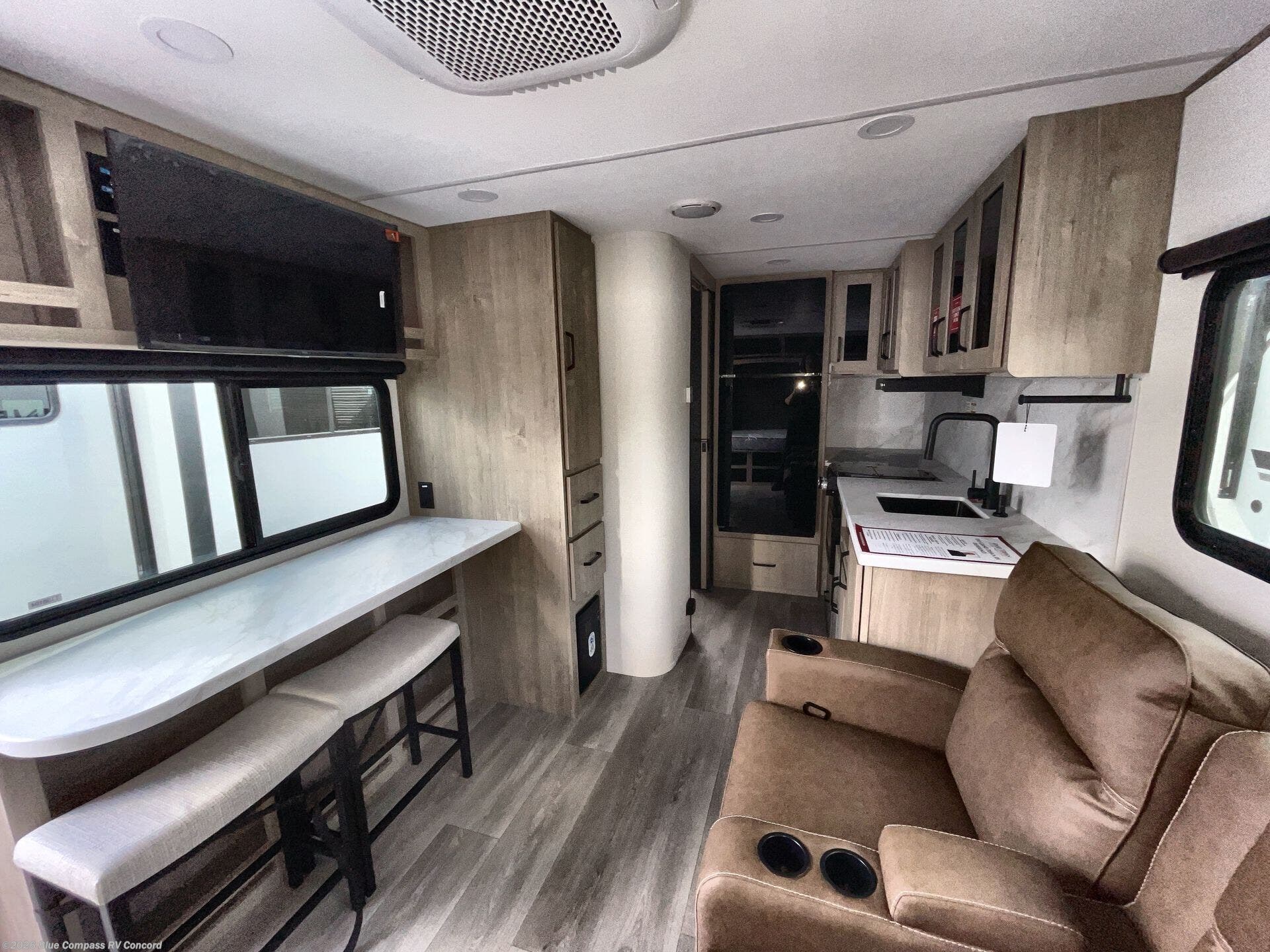 Pack your bags and head out on a fun camping trip in this travel trailer! The front queen bed offers a comfortable place to sleep at after taking off your footwear and place them in the shoe storage. You can make meals on the cooktop or in the convection microwave. The full rear corner bathroom has a walk-in shower with an oversized vanity to easily get ready each day. Outside, you'll find a spray port, an unobstructed pass-thru storage, and an interior/exterior table to use at your convenience.