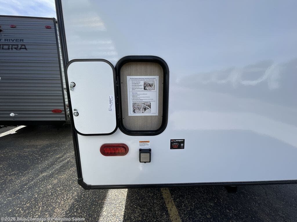 Pack your bags and head out on a fun camping trip in this travel trailer! The front queen bed offers a comfortable place to sleep at after taking off your footwear and place them in the shoe storage. You can make meals on the cooktop or in the convection microwave. The full rear corner bathroom has a walk-in shower with an oversized vanity to easily get ready each day. Outside, you'll find a spray port, an unobstructed pass-thru storage, and an interior/exterior table to use at your convenience.