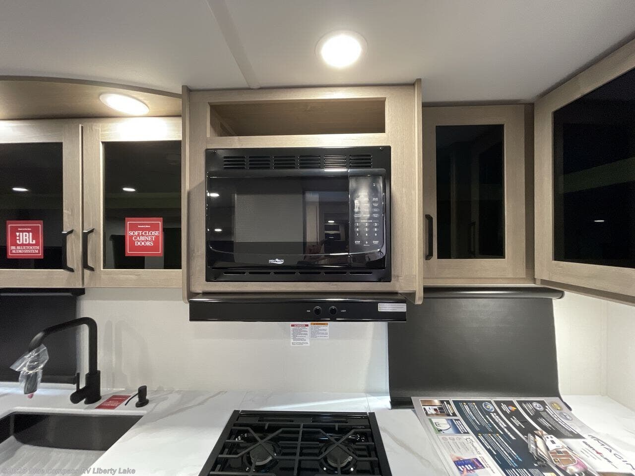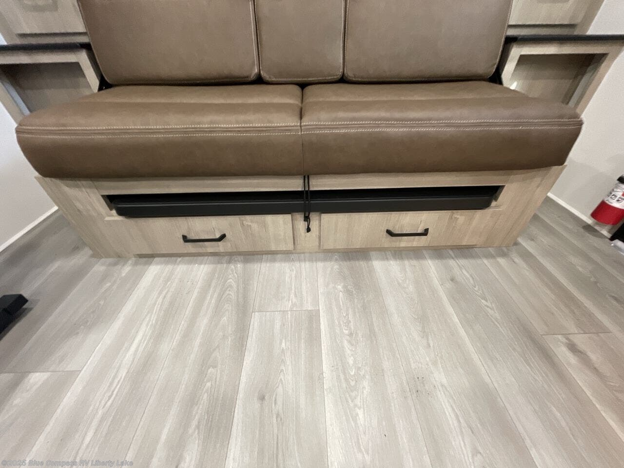 The Murphy bed is the eye-catching feature on this Imagine XLS travel trailer! Not only can it fold away in the morning to reveal a sofa for lounging, but it will also provide you with drawer storage under the sofa. Another functional feature is the theater dinette with a removable table in front, or you can choose the optional U-shaped dinette if you like to gather around for game night. It rests on the single slide so that there is more floor space, and it offers you great comfort while you dine across from the LED HDTV. A full bathroom will keep you clean and fresh with its residential walk-in shower, skylight, linen closet, vanity, toilet, and power vent fan.