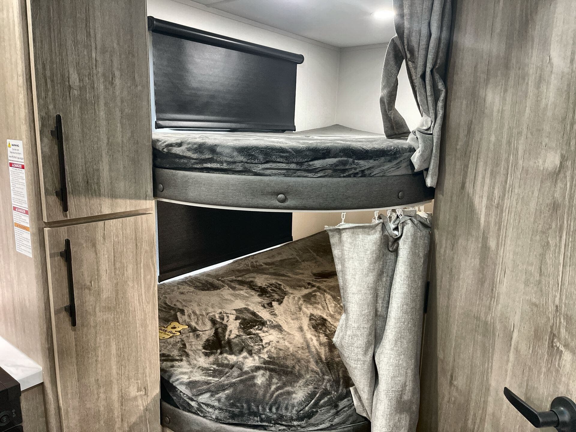 Booth Dinette, Bunk Beds, Bunkhouse, Dinette, Dinette Bed, Kitchen Sink, Medicine Cabinet, Murphy Bed, Non-Smoking Unit, Overhead Cabinetry, Pantry, Queen Bed, Roof Vents, Shower, Toilet, U-Shaped Dinette, Wardrobe(s)