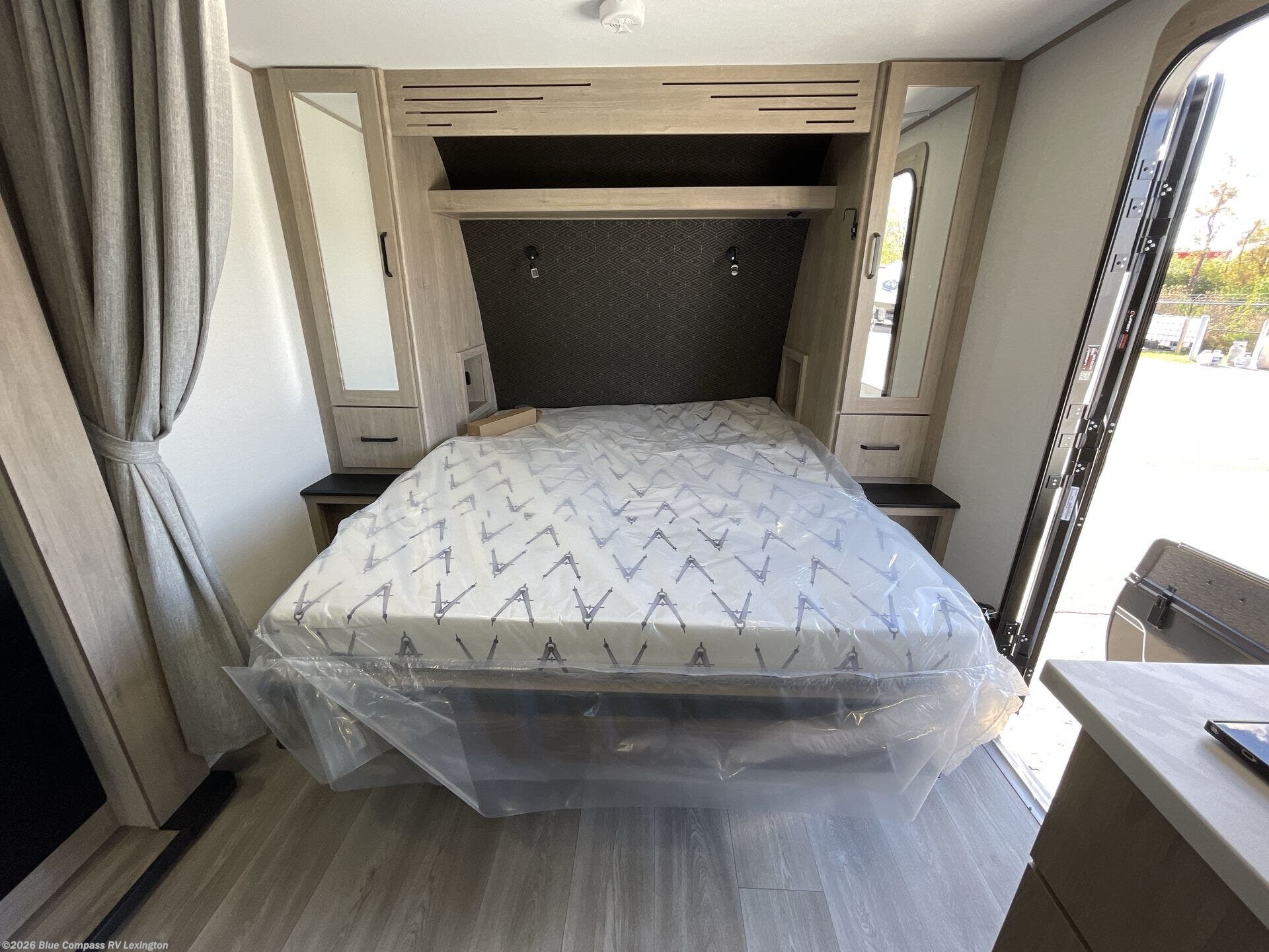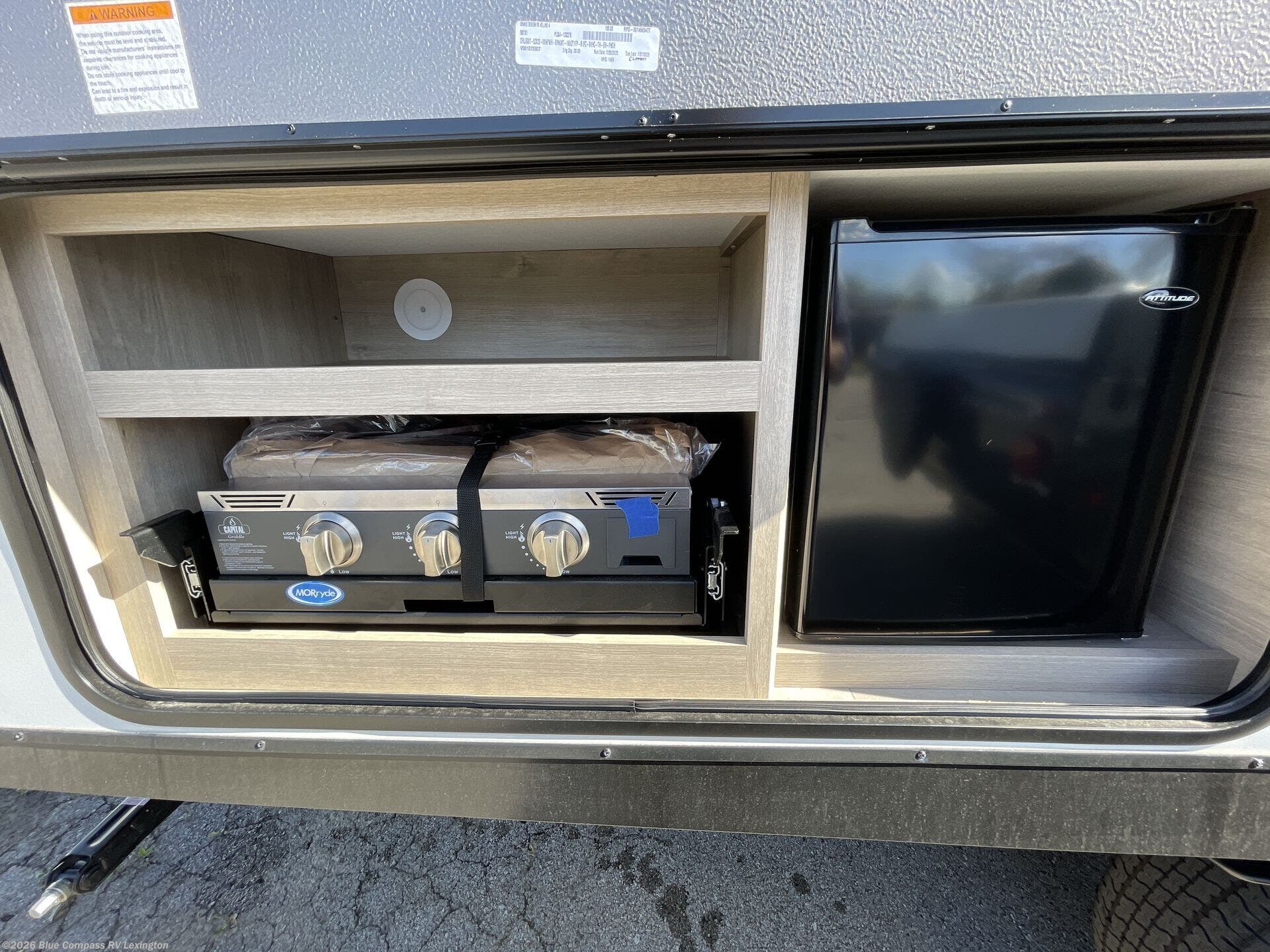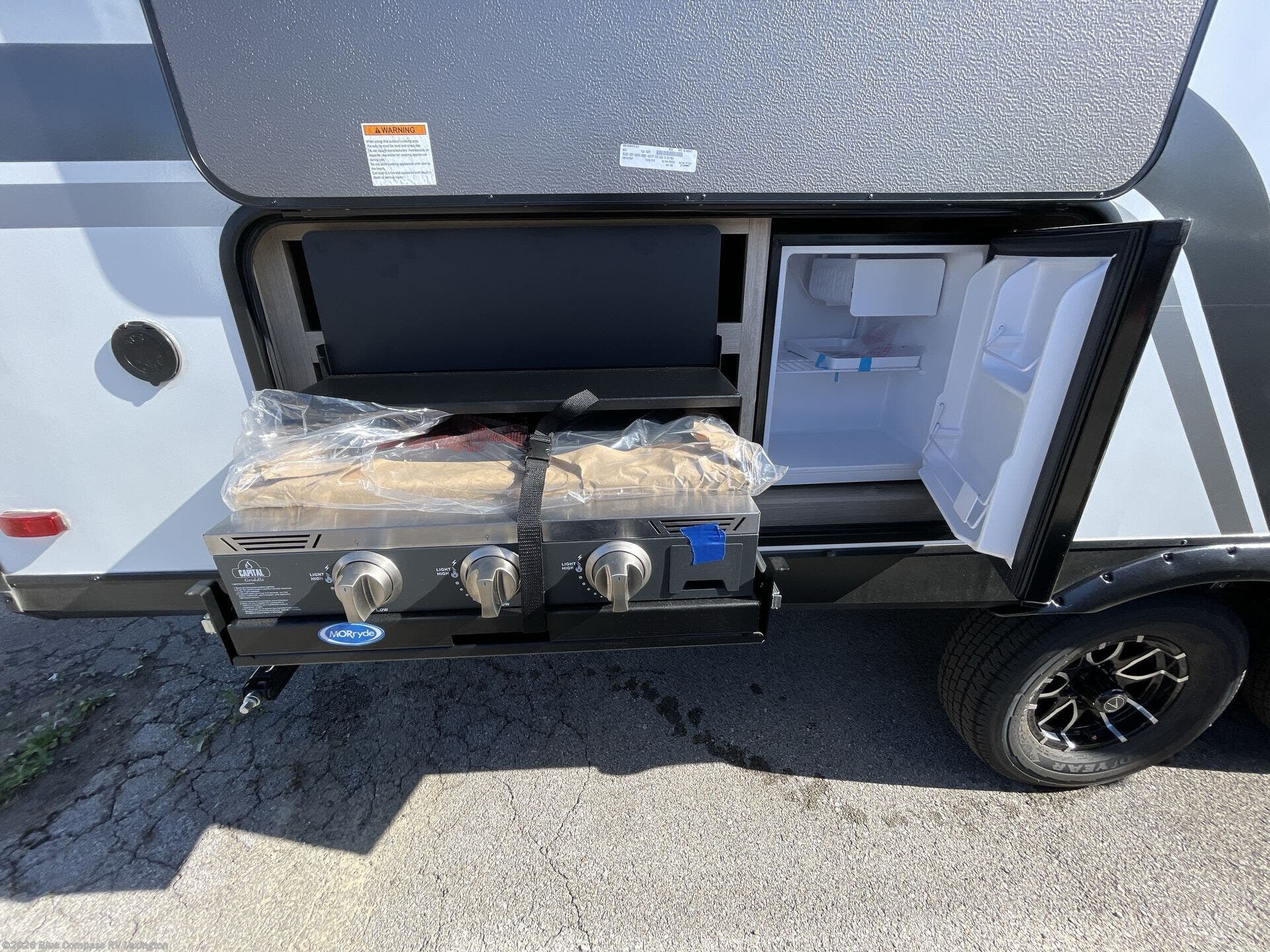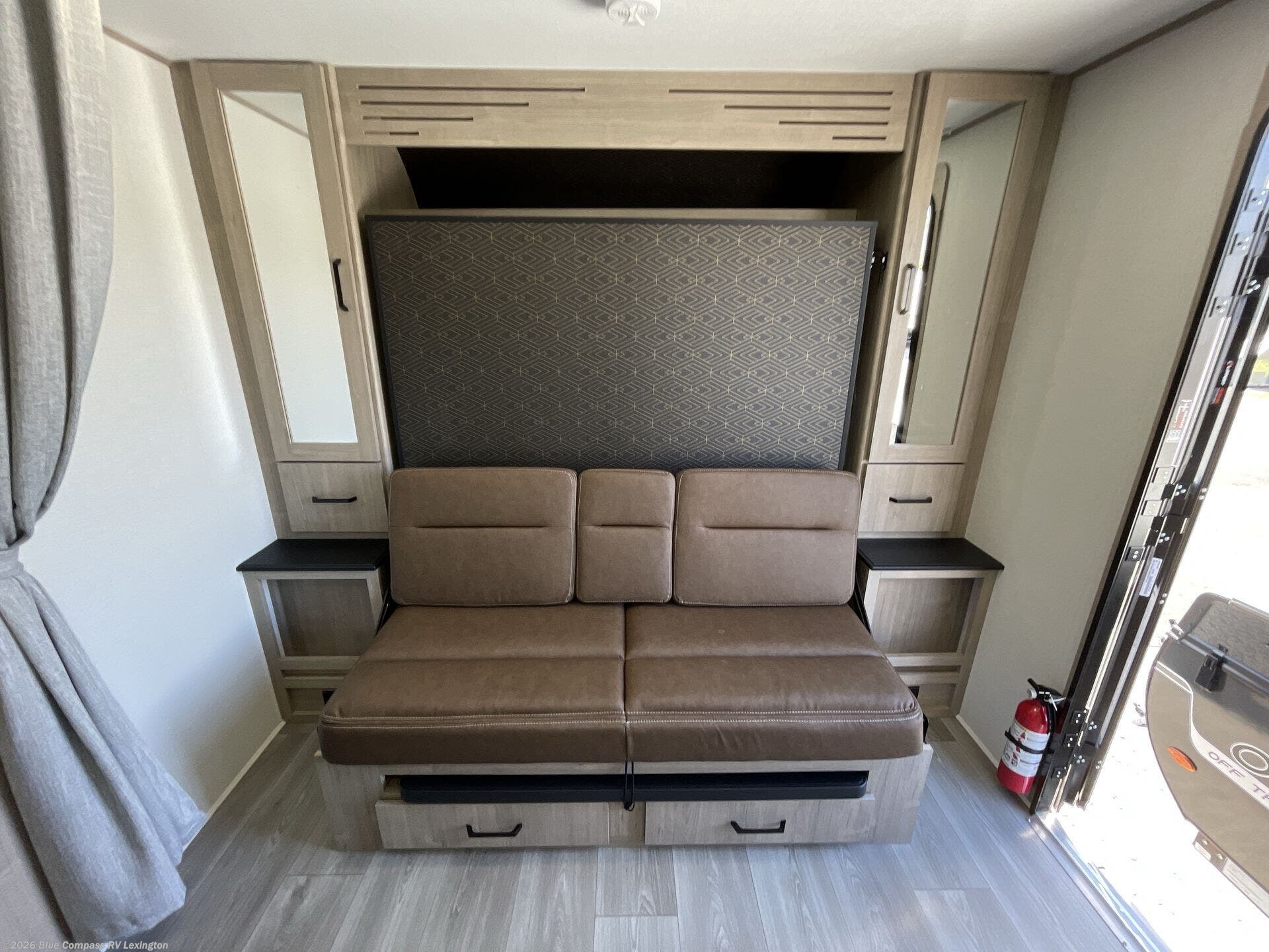 This travel trailer has everything you need for a great vacation! You will never miss home when you see all of the amenities included on this trailer. There is a full bathroom for easy morning routines, a set of 47" x 76" double over double-size bunks with privacy curtains for compact sleeping, a U-shaped dinette for meal times, and a full kitchen with all of the appliances needed for filling meals. You could even switch out the dinette for an optional theater dinette. The front Murphy bed not only provides versatility with a bed to sleep on at night, and a seating area during the day, but also a removable interior/exterior table. In addition to all of that, you'll also find an outdoor griddle and 1.6 cu. ft. refrigerator that you can use when the weather is nice. The unobstructed pass-through storage will be able to store your fishing poles and sports equipment while you travel.
