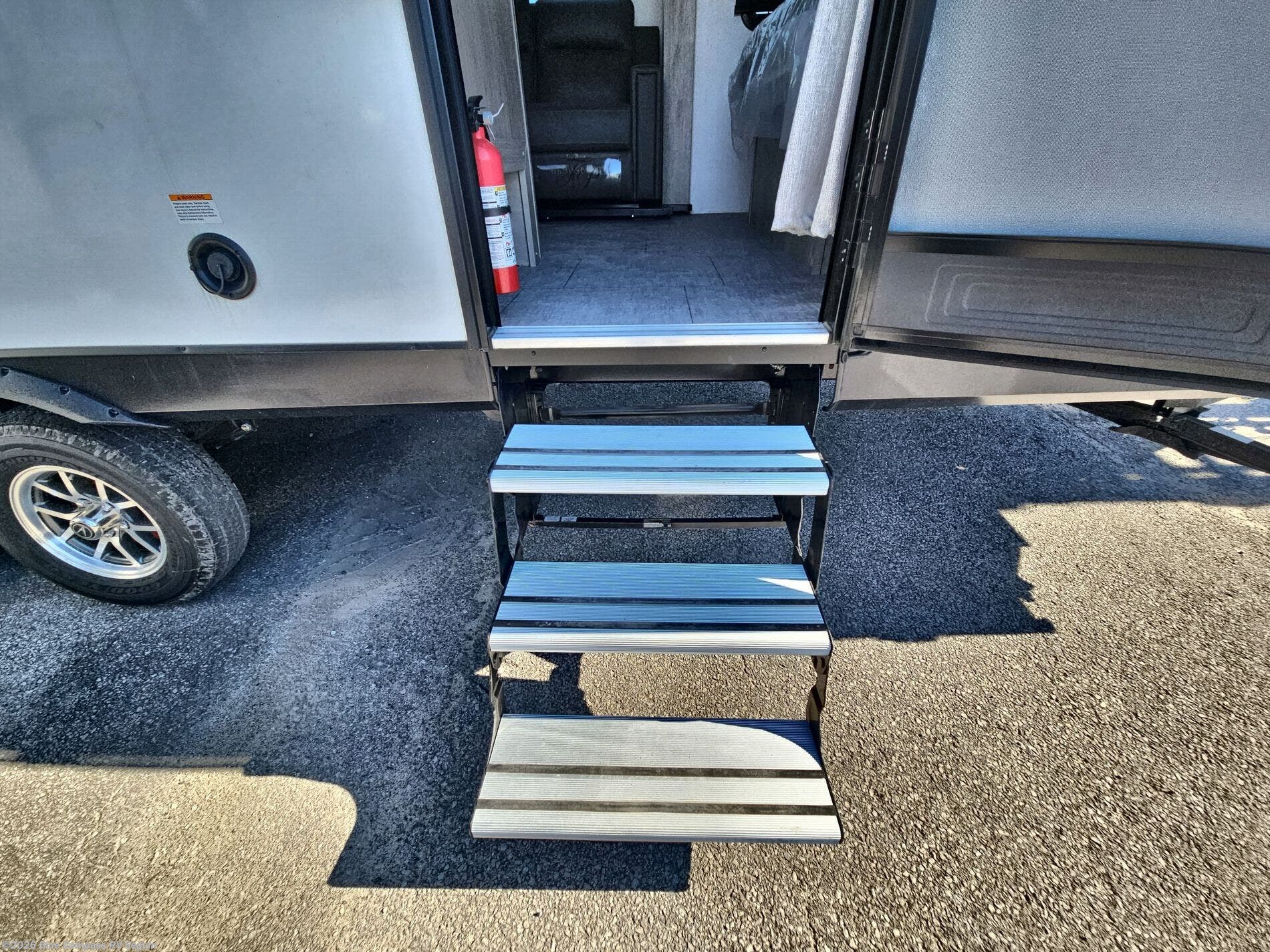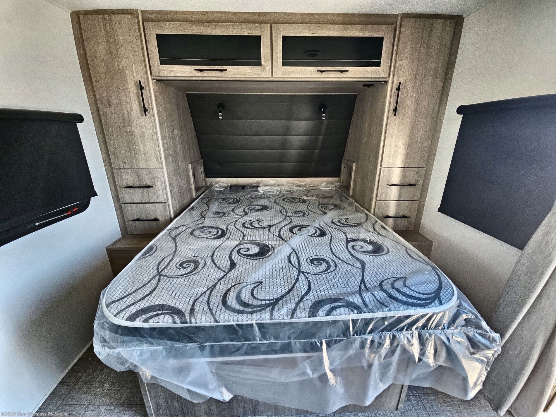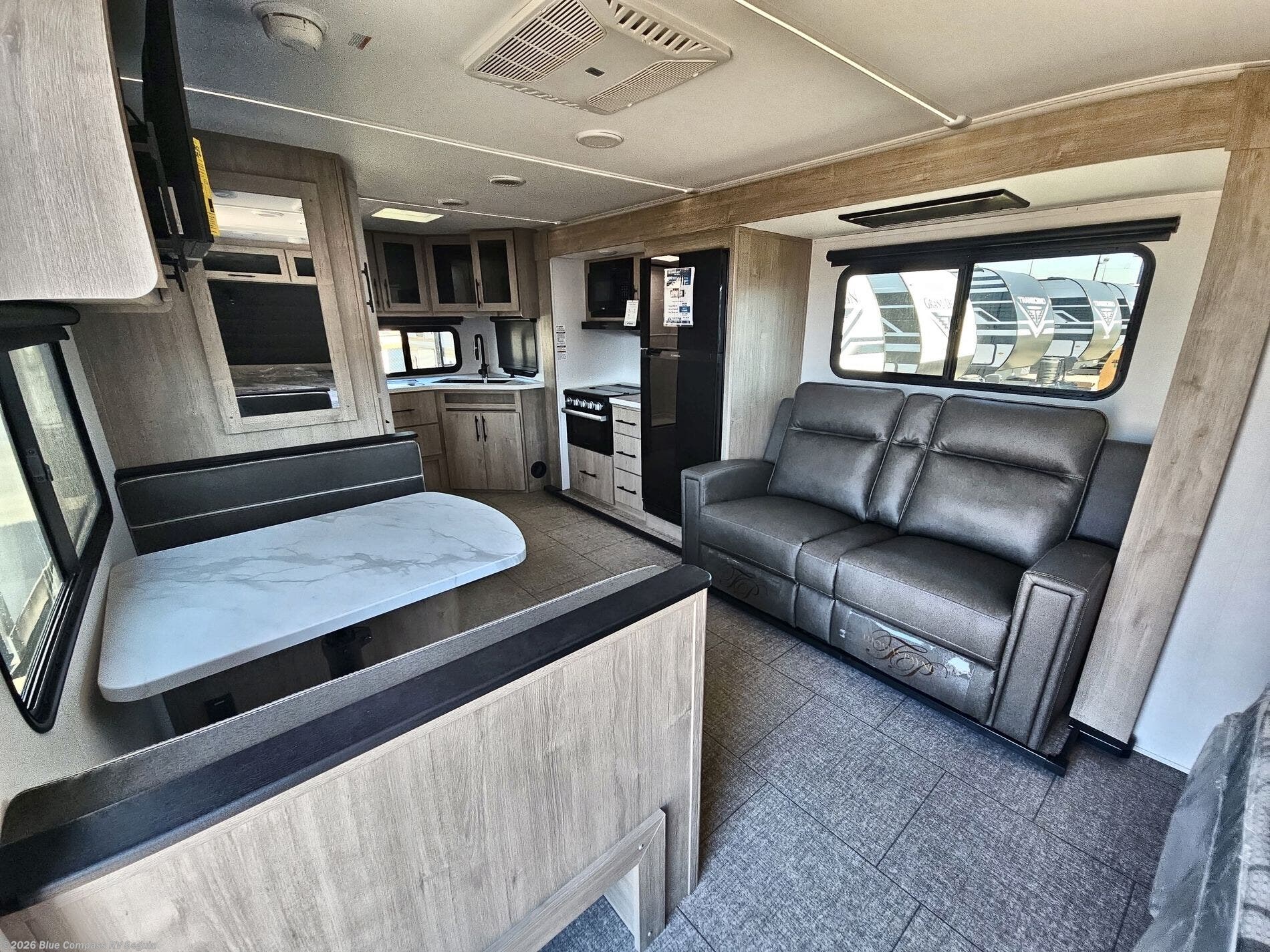 This travel trailer has everything you need for a great vacation! You will never miss home when you see all of the amenities included on this trailer. There is a full bathroom for easy morning routines, a set of 47" x 76" double over double-size bunks with privacy curtains for compact sleeping, a U-shaped dinette for meal times, and a full kitchen with all of the appliances needed for filling meals. You could even switch out the dinette for an optional theater dinette. The front Murphy bed not only provides versatility with a bed to sleep on at night, and a seating area during the day, but also a removable interior/exterior table. In addition to all of that, you'll also find an outdoor griddle and 1.6 cu. ft. refrigerator that you can use when the weather is nice. The unobstructed pass-through storage will be able to store your fishing poles and sports equipment while you travel.