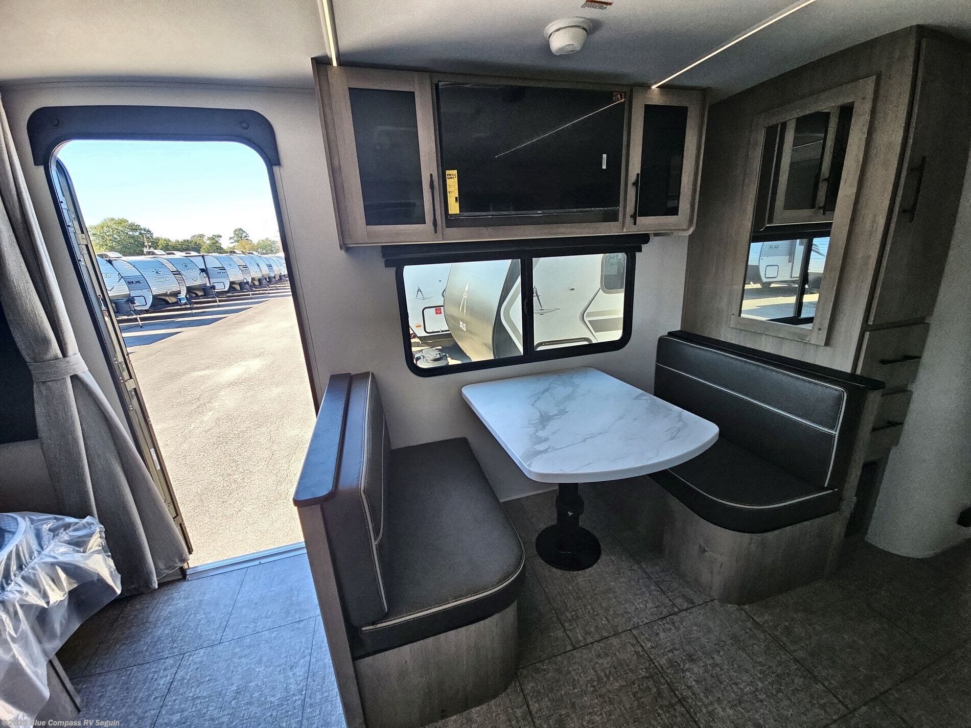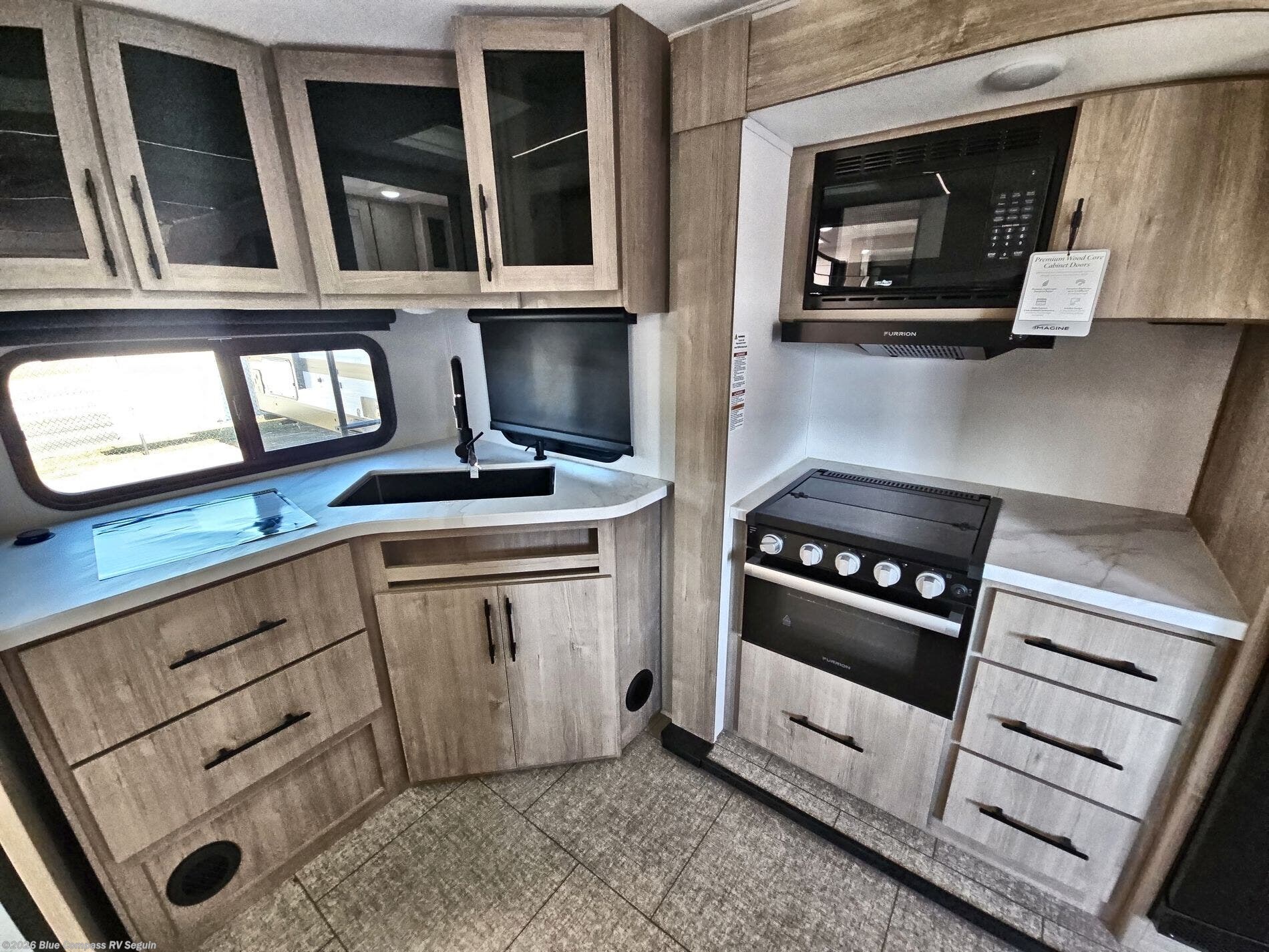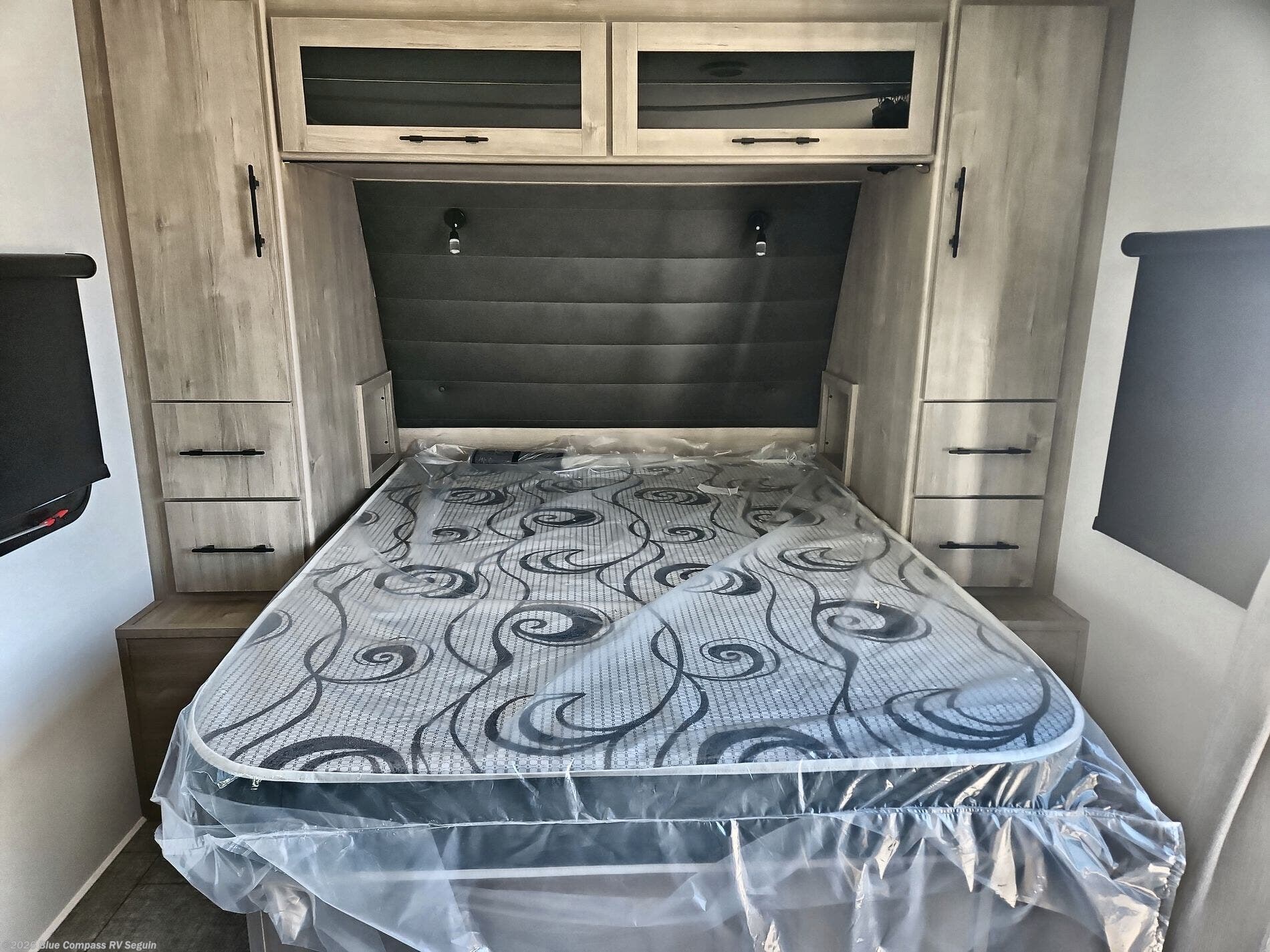 This travel trailer has everything you need for a great vacation! You will never miss home when you see all of the amenities included on this trailer. There is a full bathroom for easy morning routines, a set of 47" x 76" double over double-size bunks with privacy curtains for compact sleeping, a U-shaped dinette for meal times, and a full kitchen with all of the appliances needed for filling meals. You could even switch out the dinette for an optional theater dinette. The front Murphy bed not only provides versatility with a bed to sleep on at night, and a seating area during the day, but also a removable interior/exterior table. In addition to all of that, you'll also find an outdoor griddle and 1.6 cu. ft. refrigerator that you can use when the weather is nice. The unobstructed pass-through storage will be able to store your fishing poles and sports equipment while you travel.