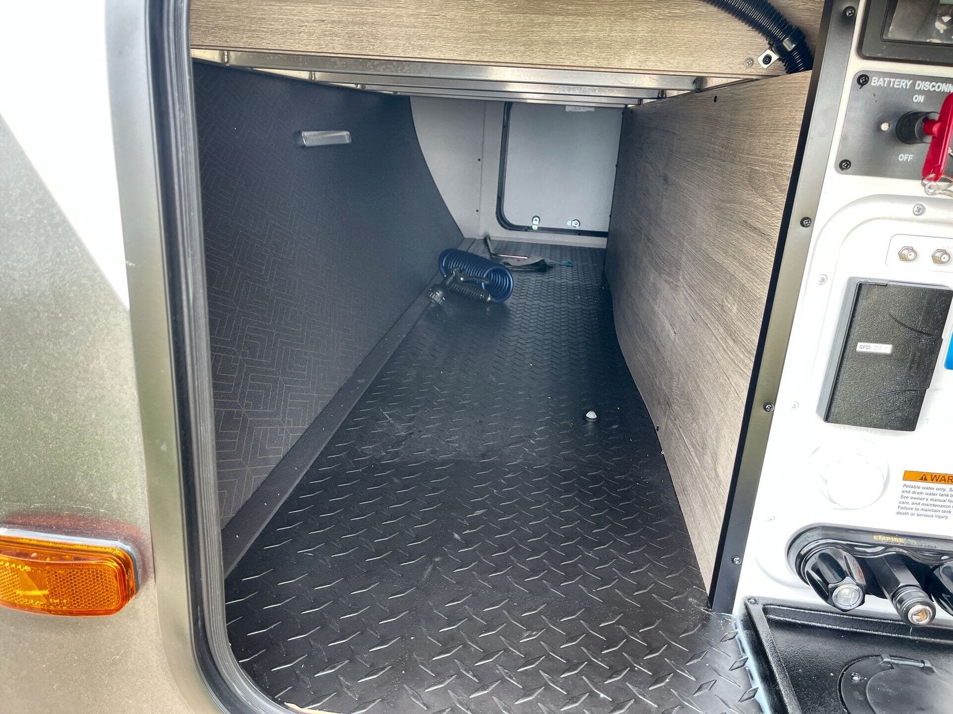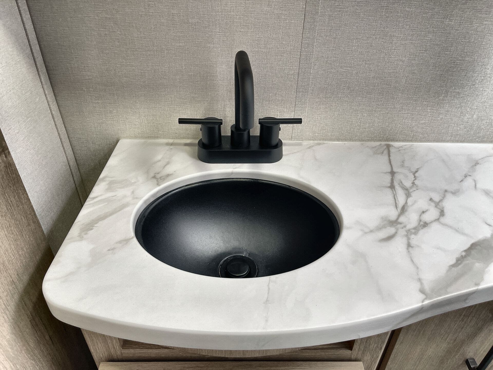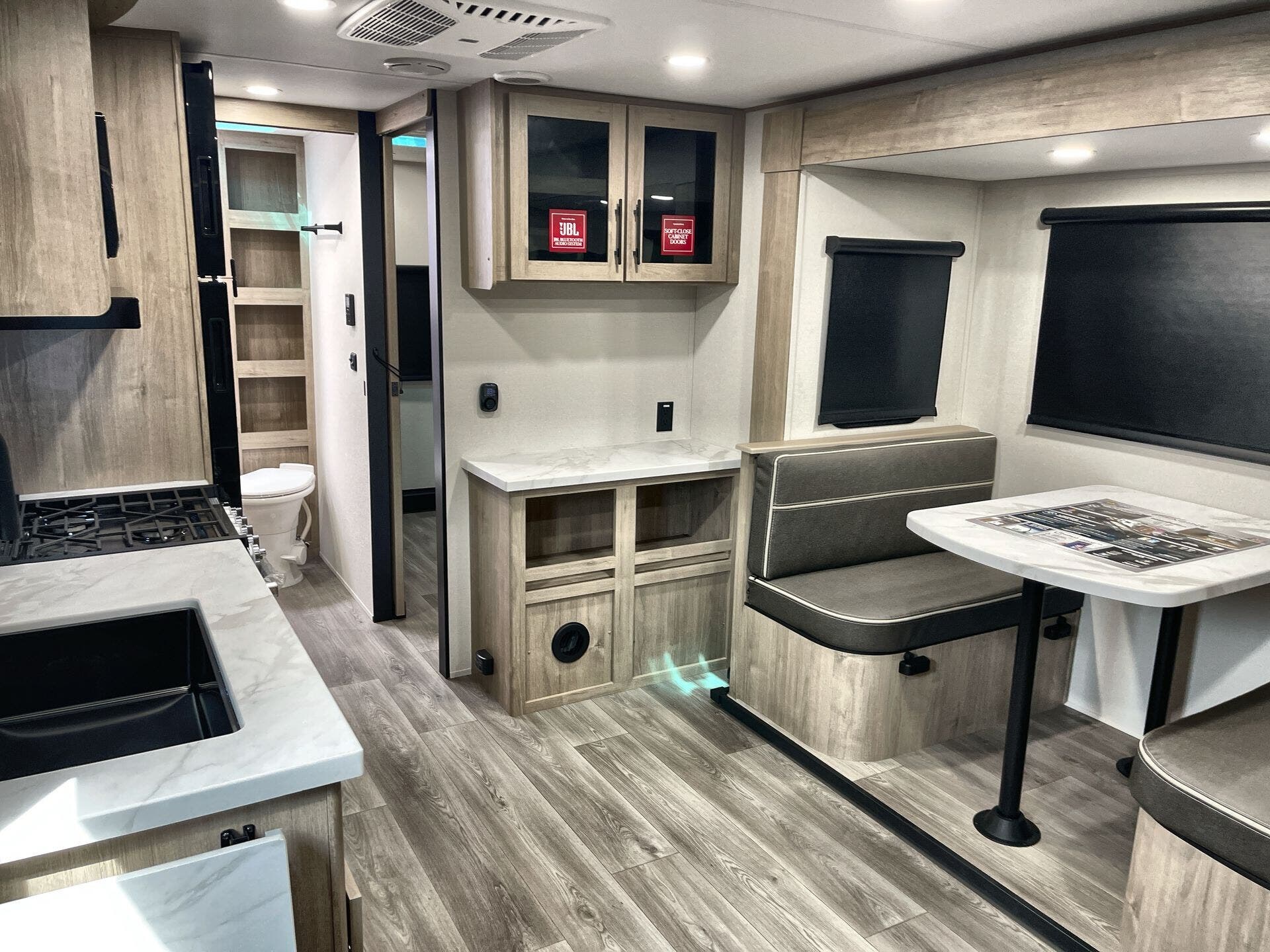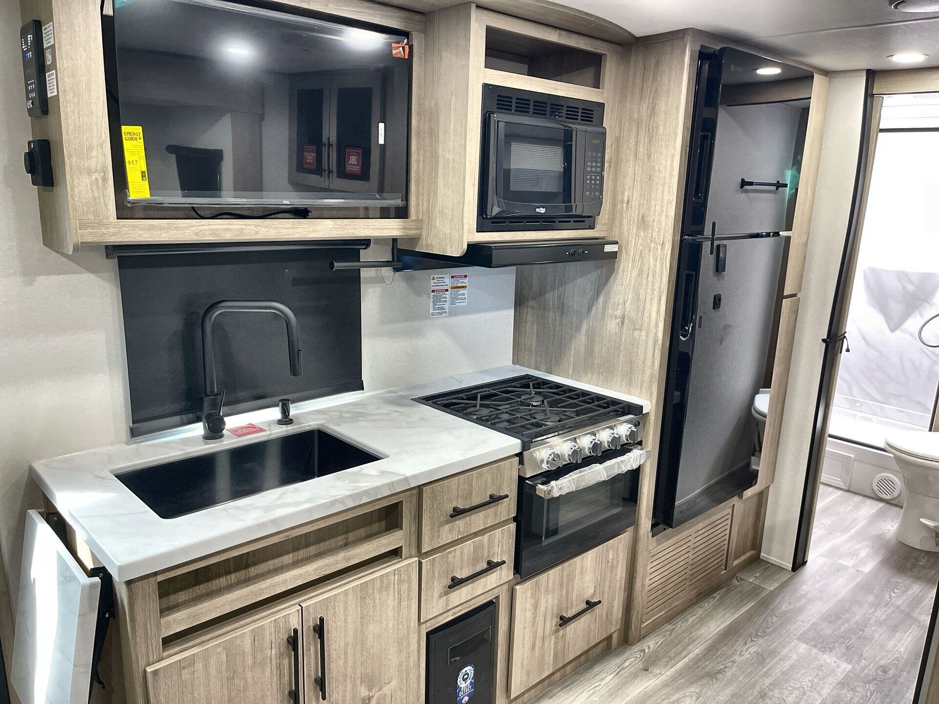 - Compact, easy-to-tow trailer with modern conveniences for travel and full-time camping