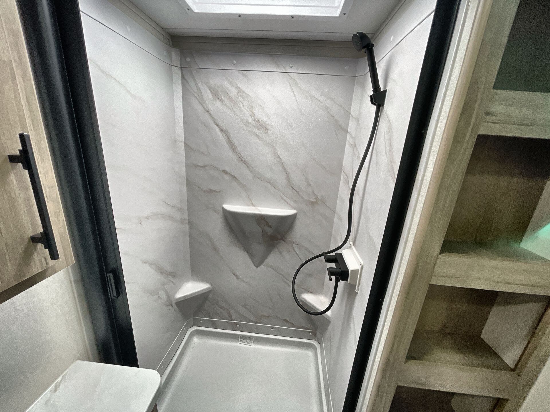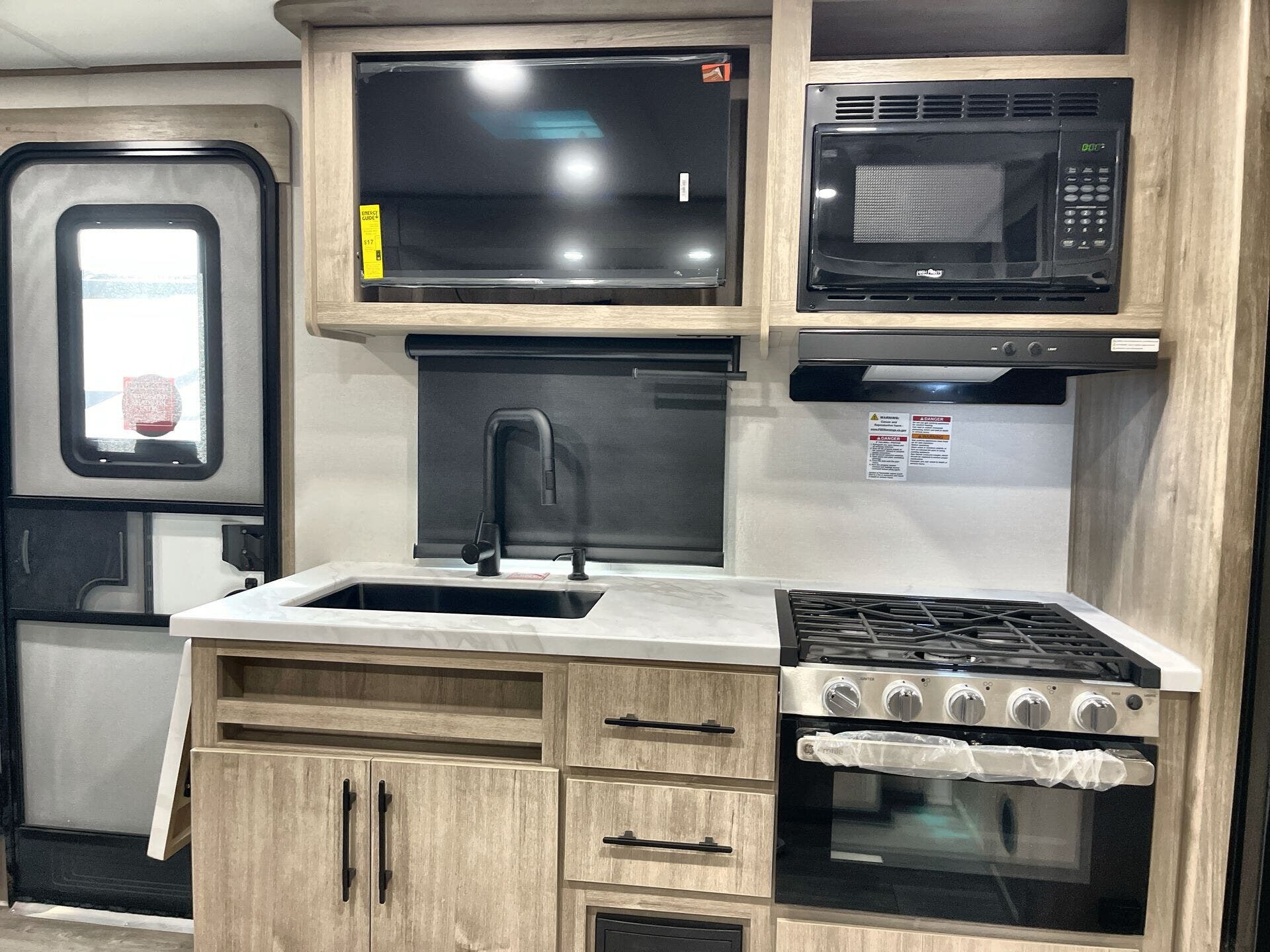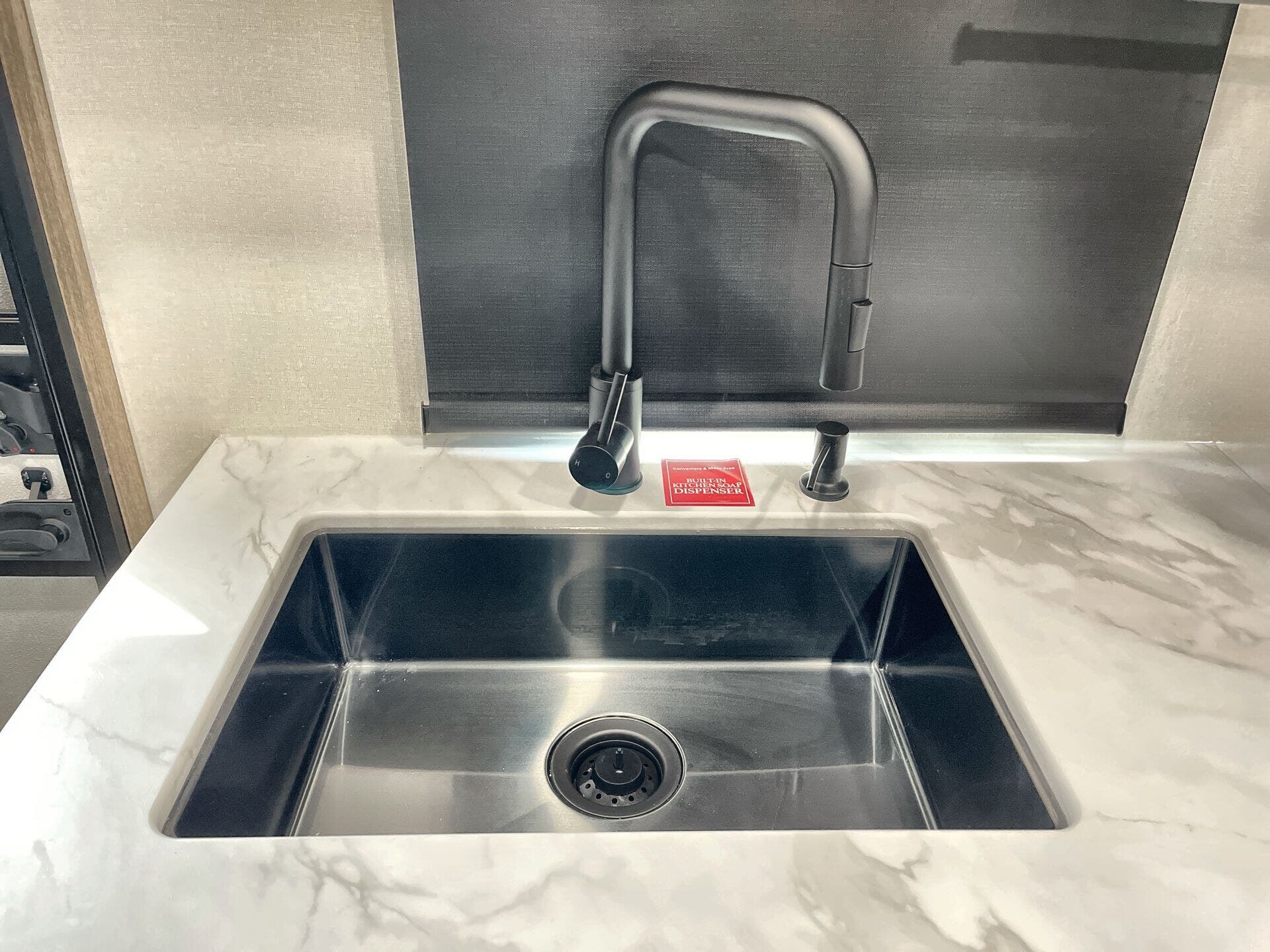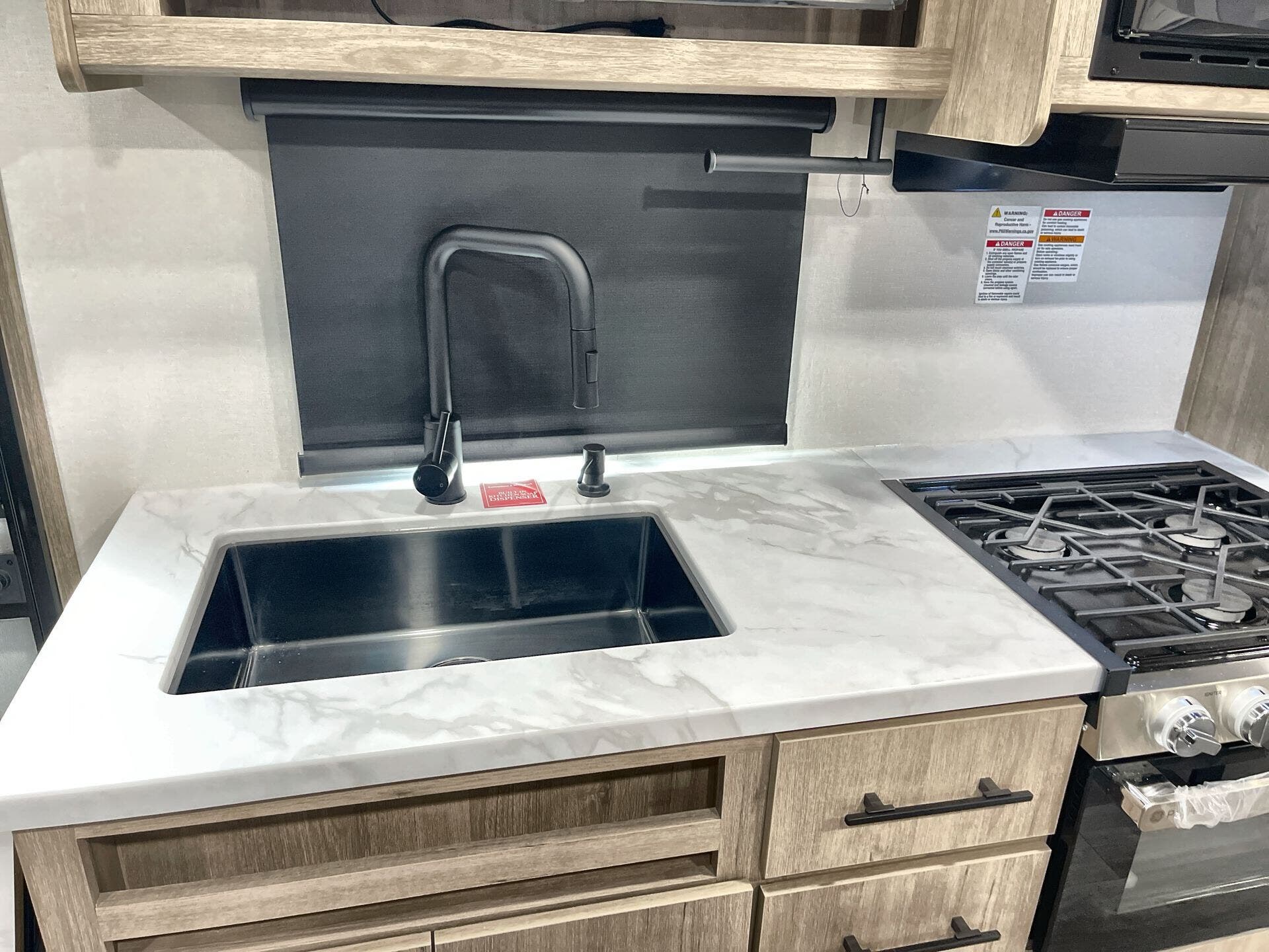 - Compact, easy-to-tow trailer with modern conveniences for travel and full-time camping