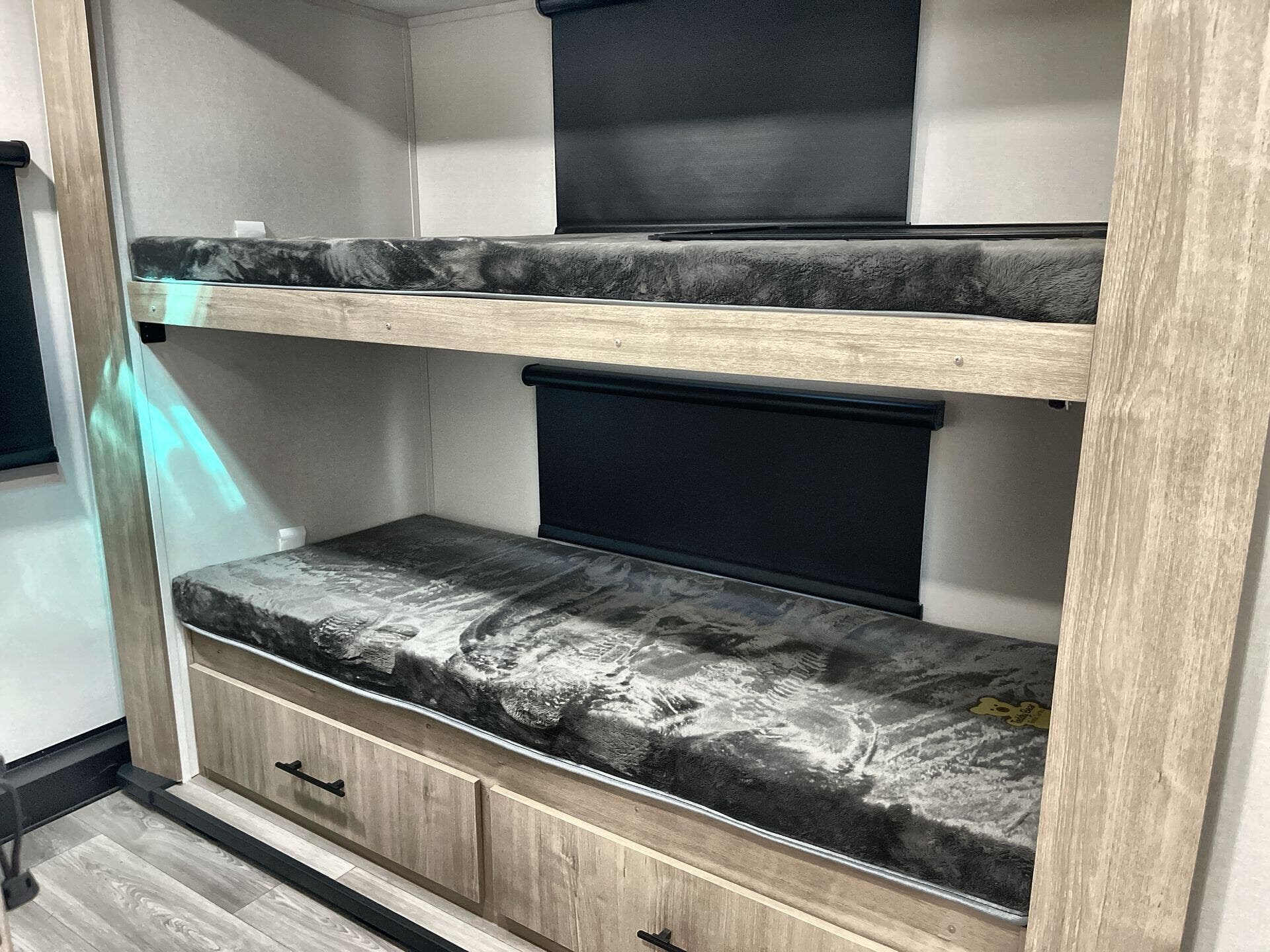 - Two Slideouts add living space; Bunk Beds for kids; Medicine Cabinet