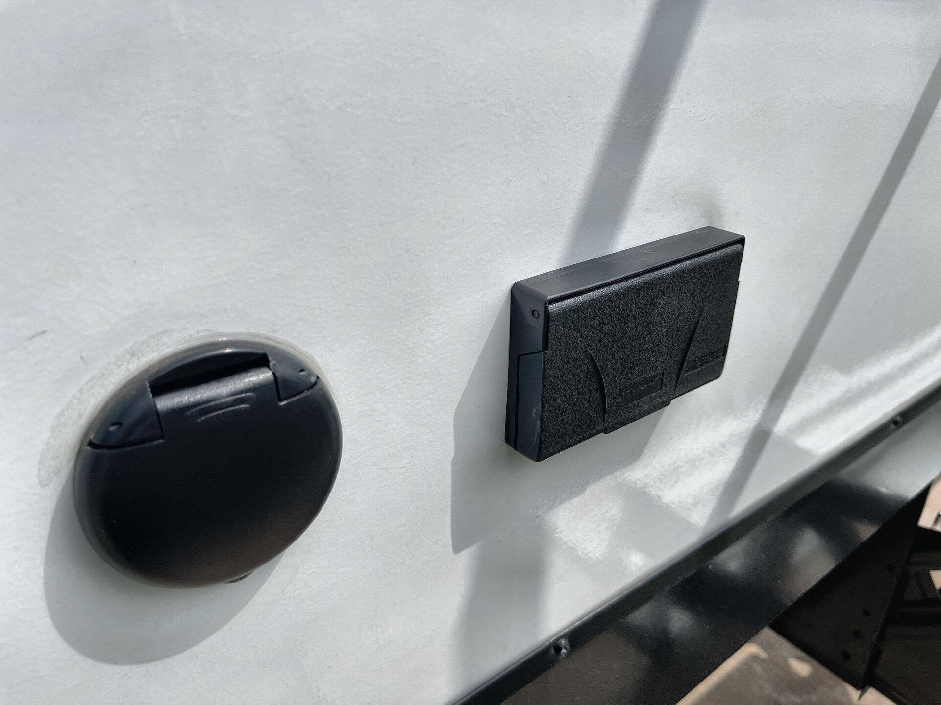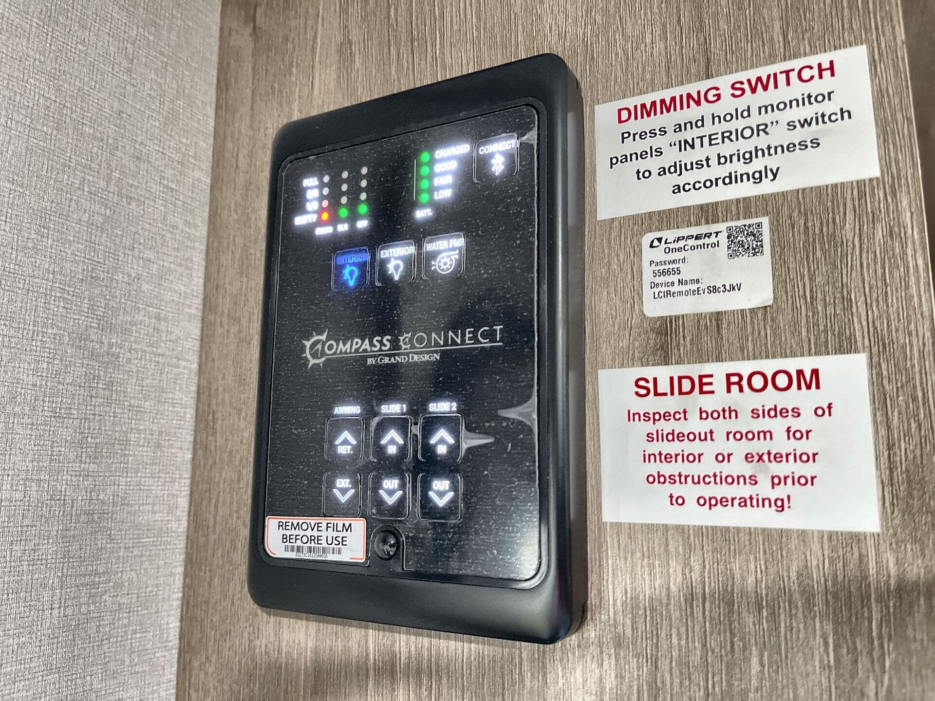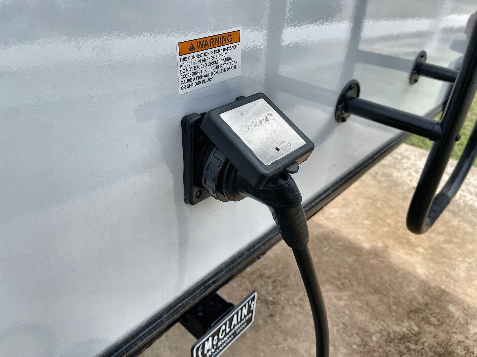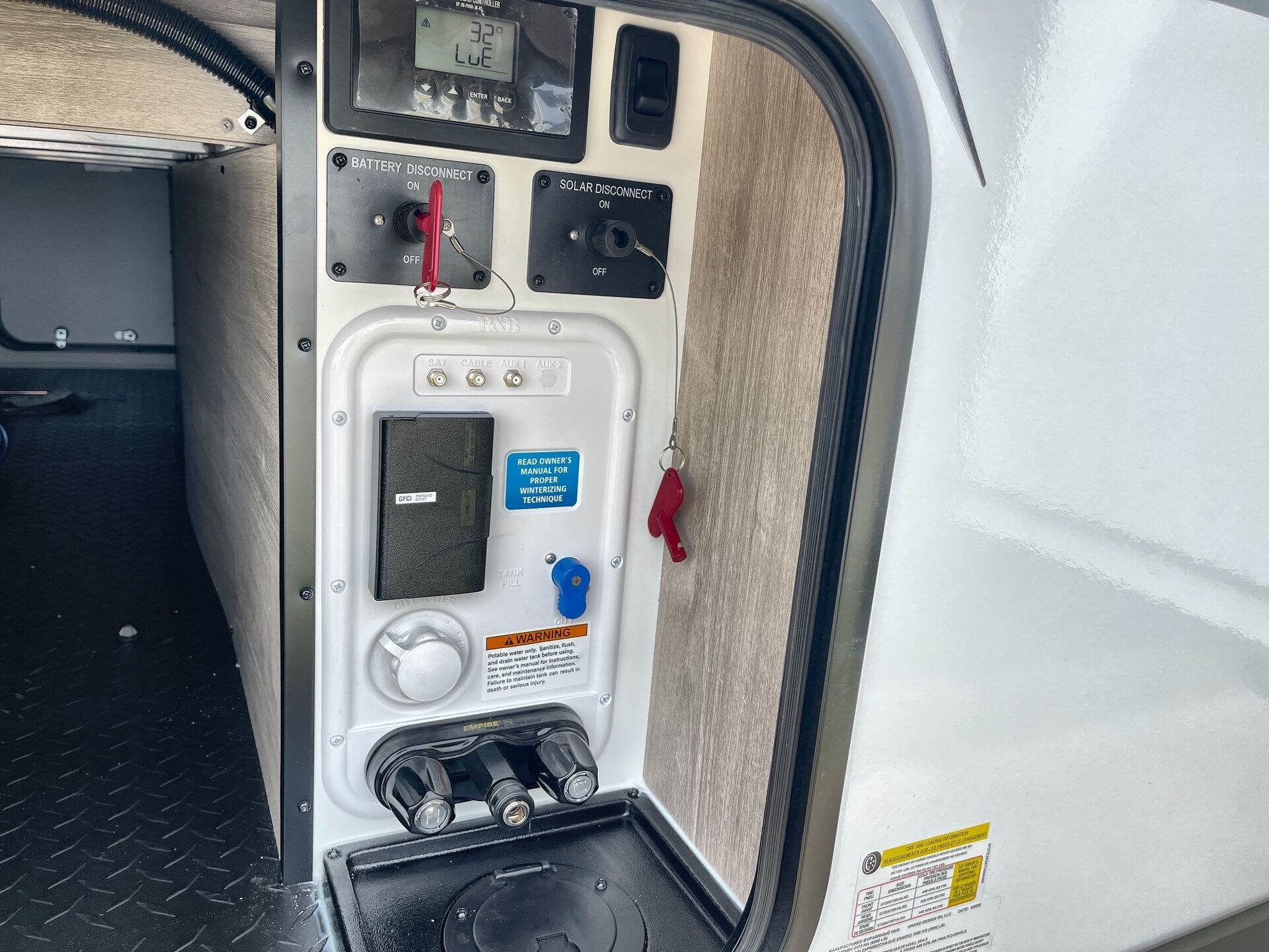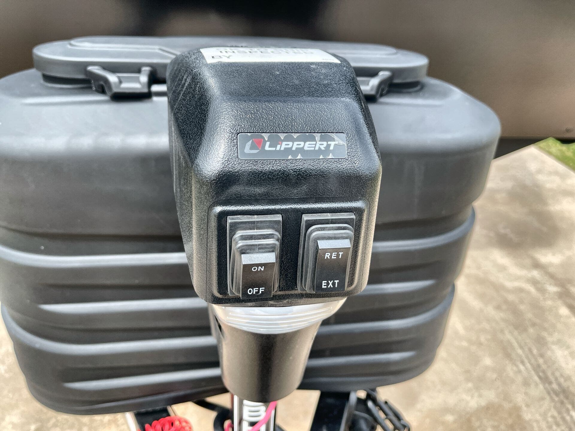 - TV for entertainment, Awning for outdoor shade, Ladder and Leveling Jacks