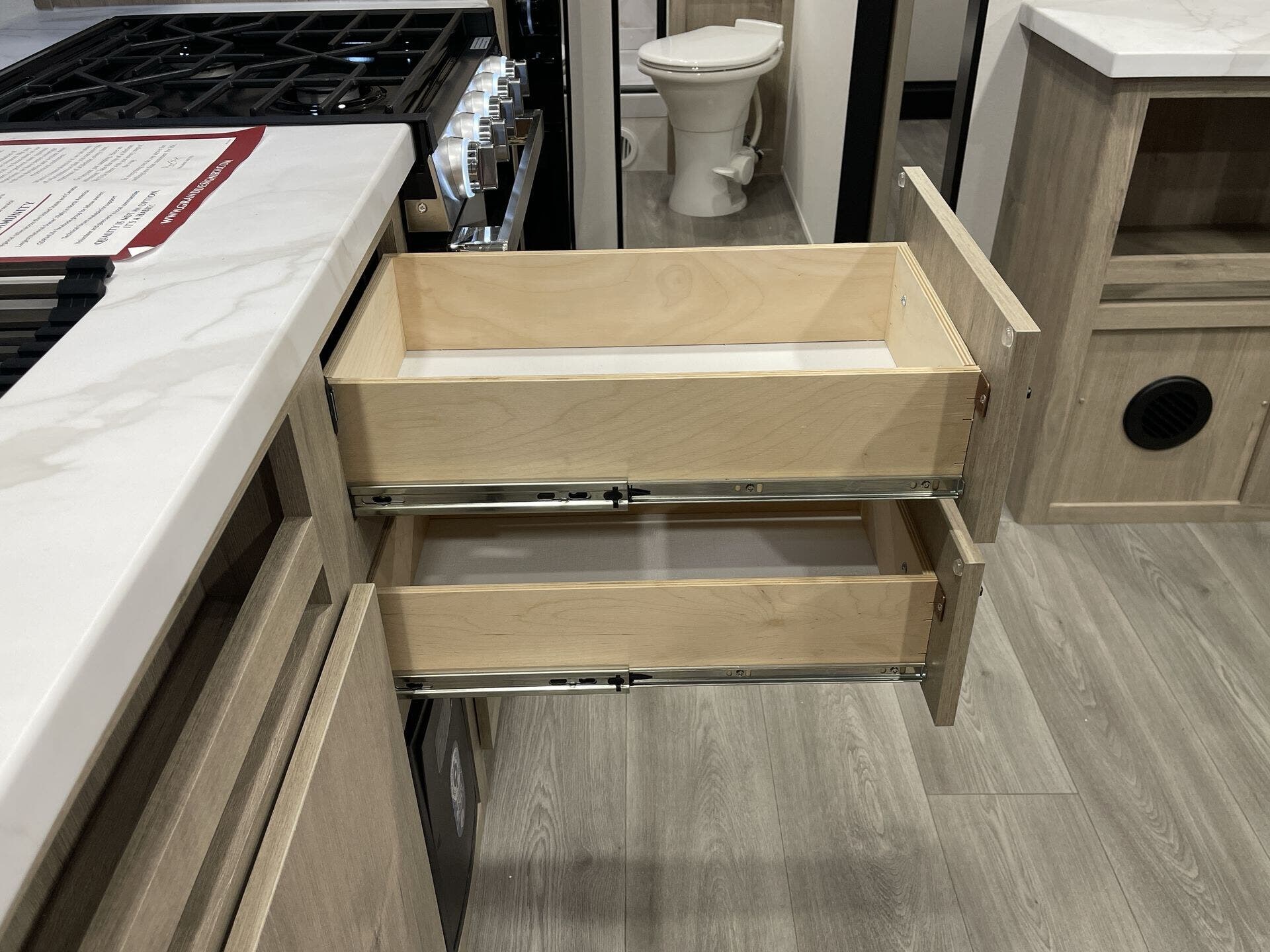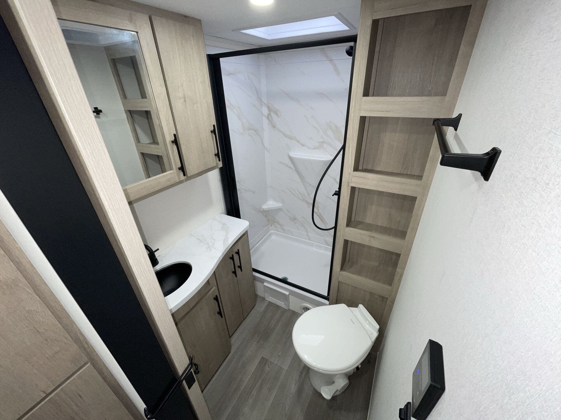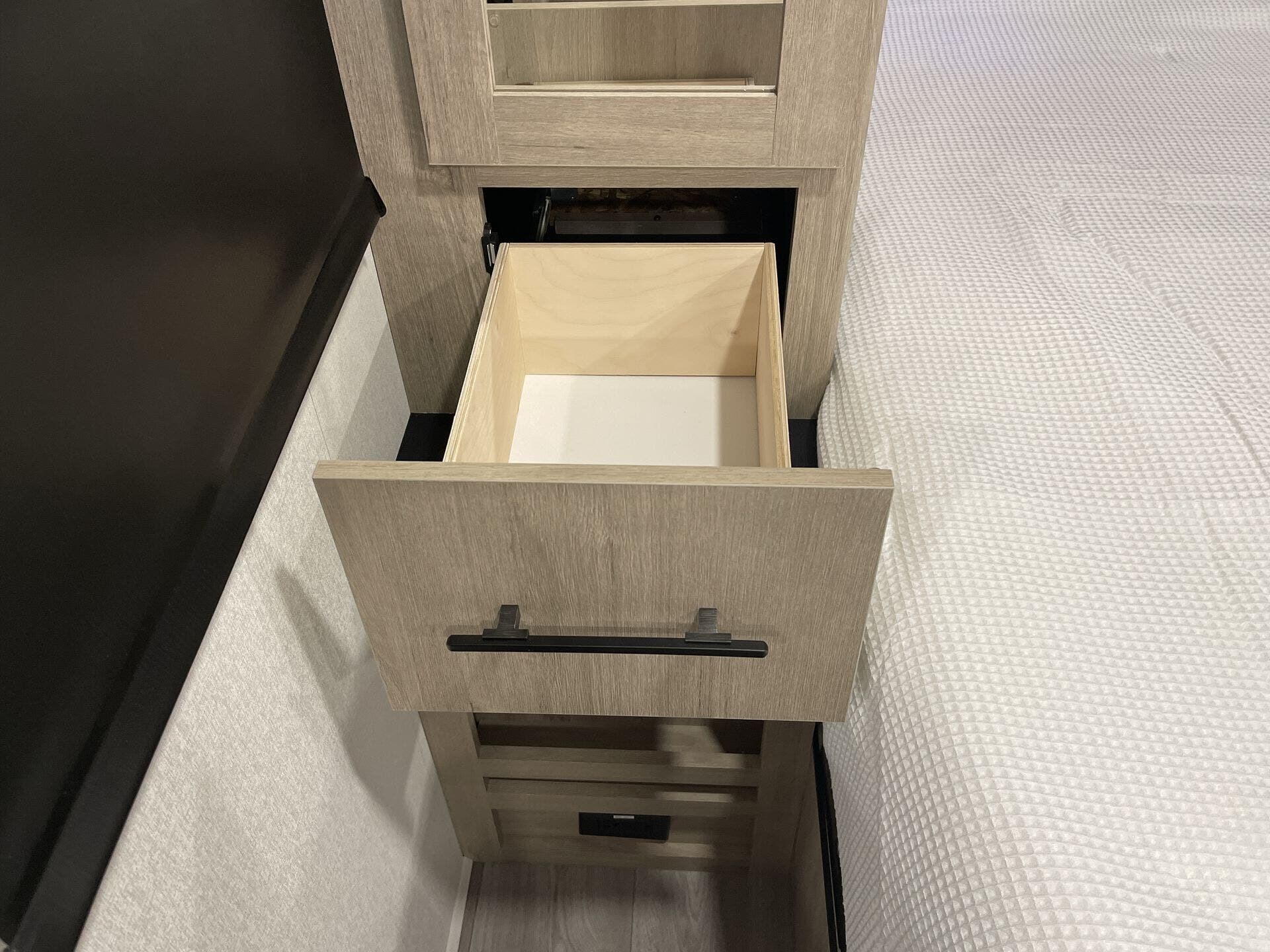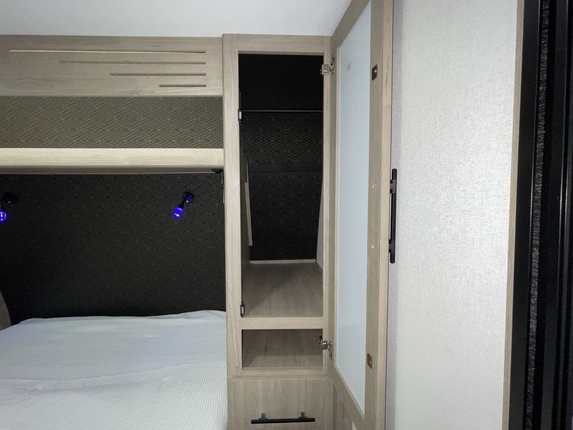 Booth Dinette, Bunk Beds, Day/Night Shades, Dinette Bed, Kitchen Sink, Medicine Cabinet, Murphy Bed, Overhead Cabinetry, Pantry, Roof Vents, Shower, Theater Seating, Toilet, U-Shaped Dinette, Wardrobe(s)