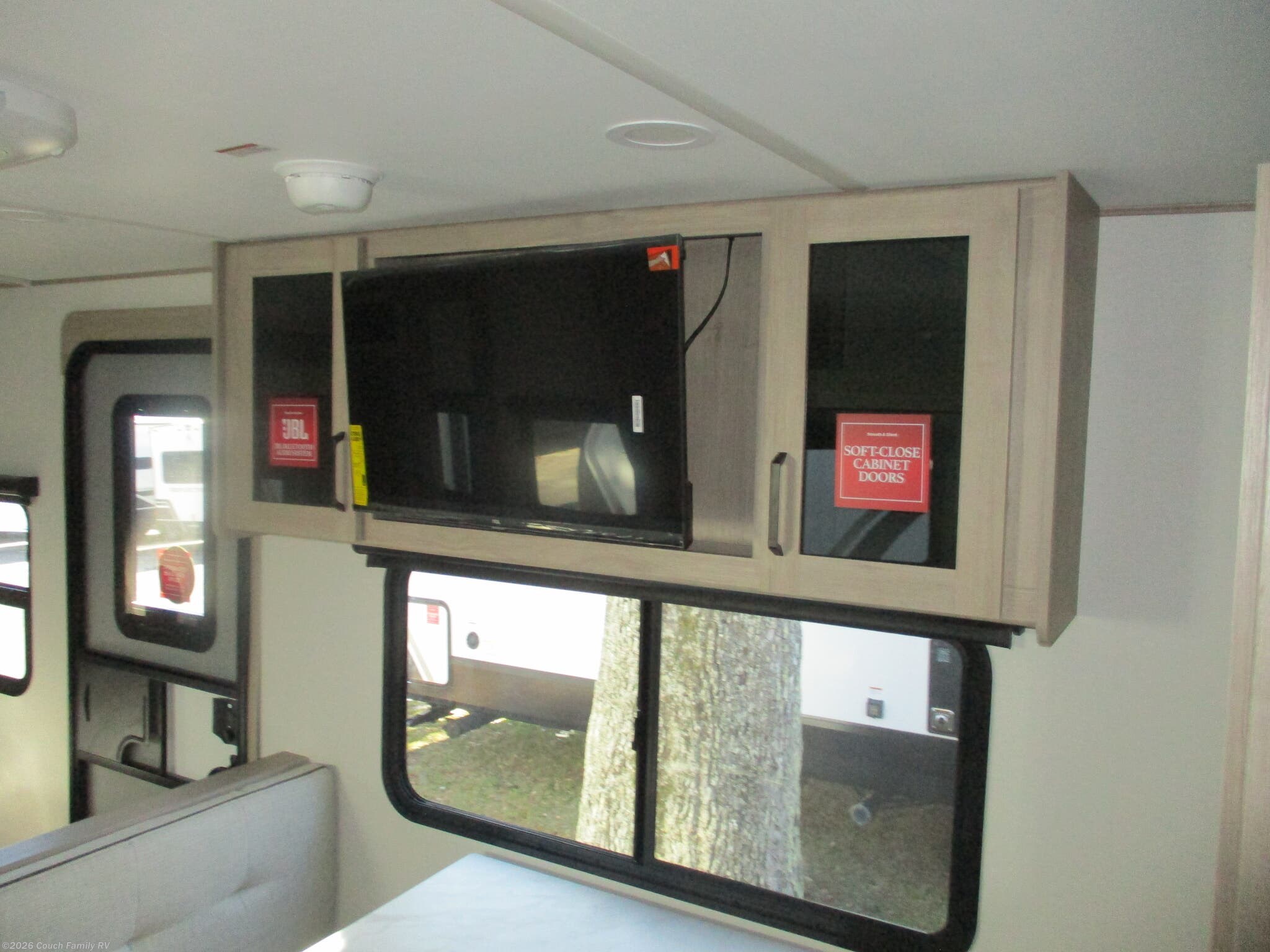 - Exterior amenities like a ladder, power roof vent, and leveling jacks for easy maintenance