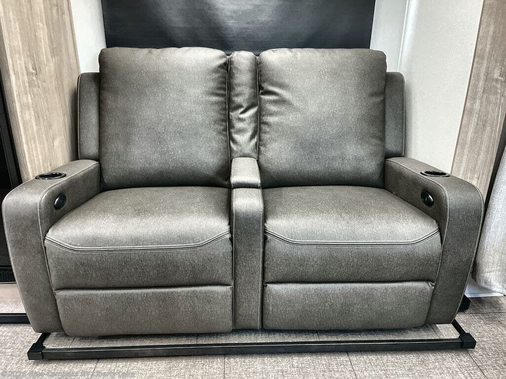 This Imagine XLS travel trailer has theater seating and a booth dinette that you can use any time you need a little break from the outdoors. If you want to come in and grab a coffee, put together a puzzle, or work on your itinerary for the week, just put up your feet and relax. You could even switch on the LED HDTV if you want a little entertainment. The front queen-size bed has a privacy curtain that you can draw to create a semi-private bedroom, and in the back of the trailer you will find the rest of your amenities, like the kitchen and the bathroom. The large slide makes it easy to enjoy spending your time indoors, but if you do want to get back outside, you can sit underneath the 18' electric awning for some shade.