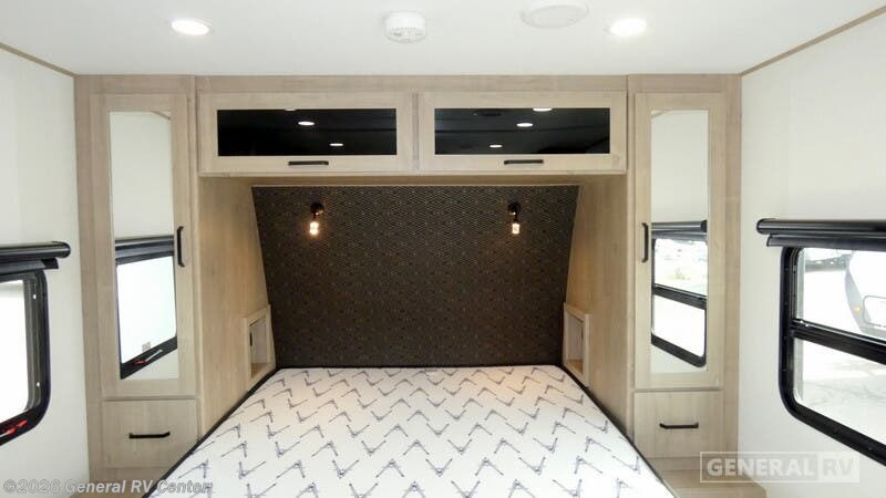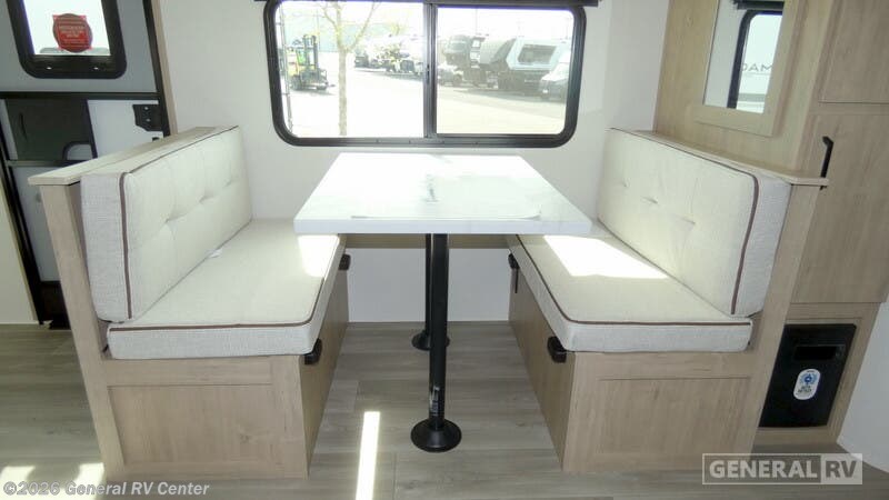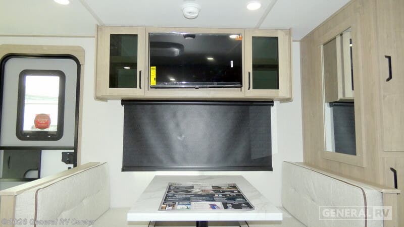 Step into the 2026 Grand Design Imagine XLS 22MLE, where comfort meets convenience in a compact yet spacious travel companion. This well-crafted RV is designed to cater to your adventurous spirit while ensuring you have all the comforts of home. Measuring just over 26 feet in length, the 22MLE offers an inviting layout featuring a center kitchen and living area, complemented by a rear bath and a cozy front bedroom. The 60" x 80" queen bed promises restful nights, while the convertible seating ensures that up to four guests can sleep comfortably. The heart of this RV is the thoughtfully designed kitchen, equipped with a mid-size refrigerator and a three-burner cooktop, perfect for whipping up your favorite meals on the road. Enjoy your culinary creations in the booth dinette or relax in the plush theater seating, all under the expansive 18-foot powered retractable awning that extends your living space outdoors. With ample storage, including an unobstructed pass-thru compartment, and a universal docking station, the Imagine XLS 22MLE ensures that every journey is both convenient and memorable. For more details, visit your nearest General RV dealership and embark on your next adventure in style.