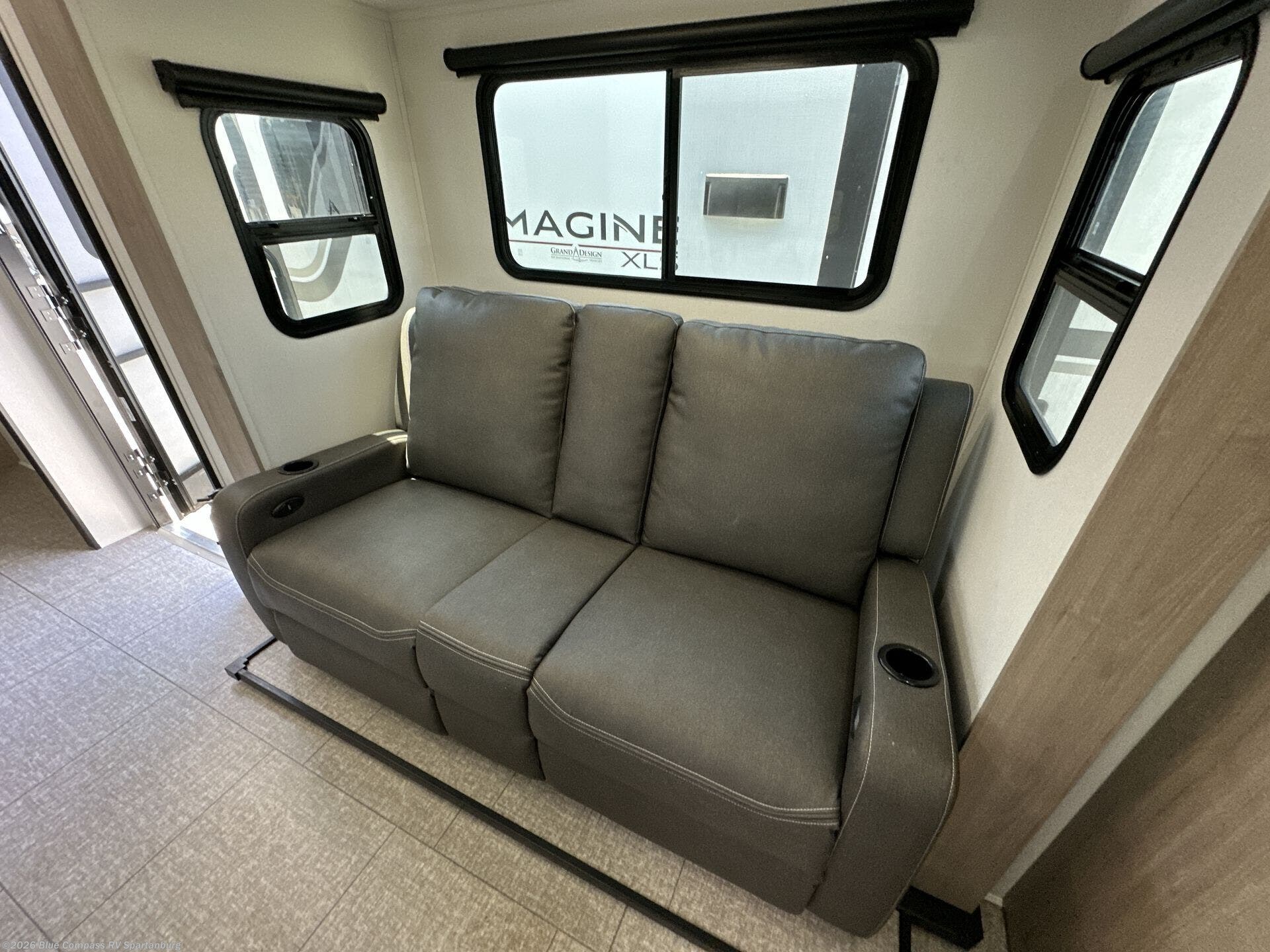 Let your imagination run wild with the possibilities that the Grand Design Imagine XLS travel trailer can provide! The Imagine XLS has been built with oversized tank capacities, an extra-large 2" fresh water drain valve, a ducted A/C system, a power tongue jack, and a heated and enclosed underbelly with suspended tanks. There is a designated heat duct to the subfloor and a residential ductless heating system throughout. For outdoor adventures, the electric awning with LED lights will enable you to stay protected, and the Tuff-Ply pass-thru flooring will withstand your many adventures. You will also love the XLS Solar Package that comes with a 200W roof mounted solar panel, a 40 Amp charge controller, a 12V 10 cu. ft. refrigerator, and roof mounted quick connect plugs!
