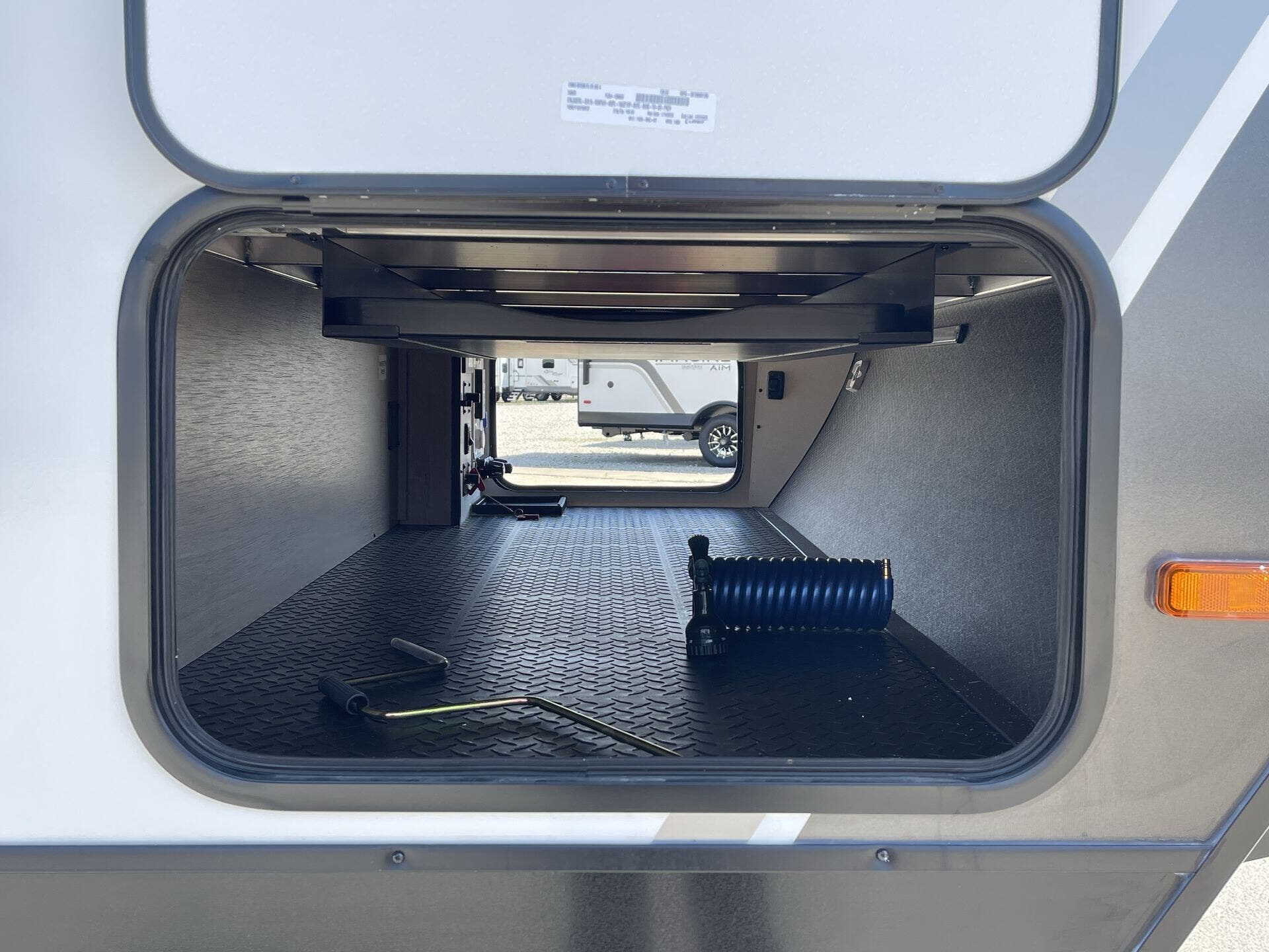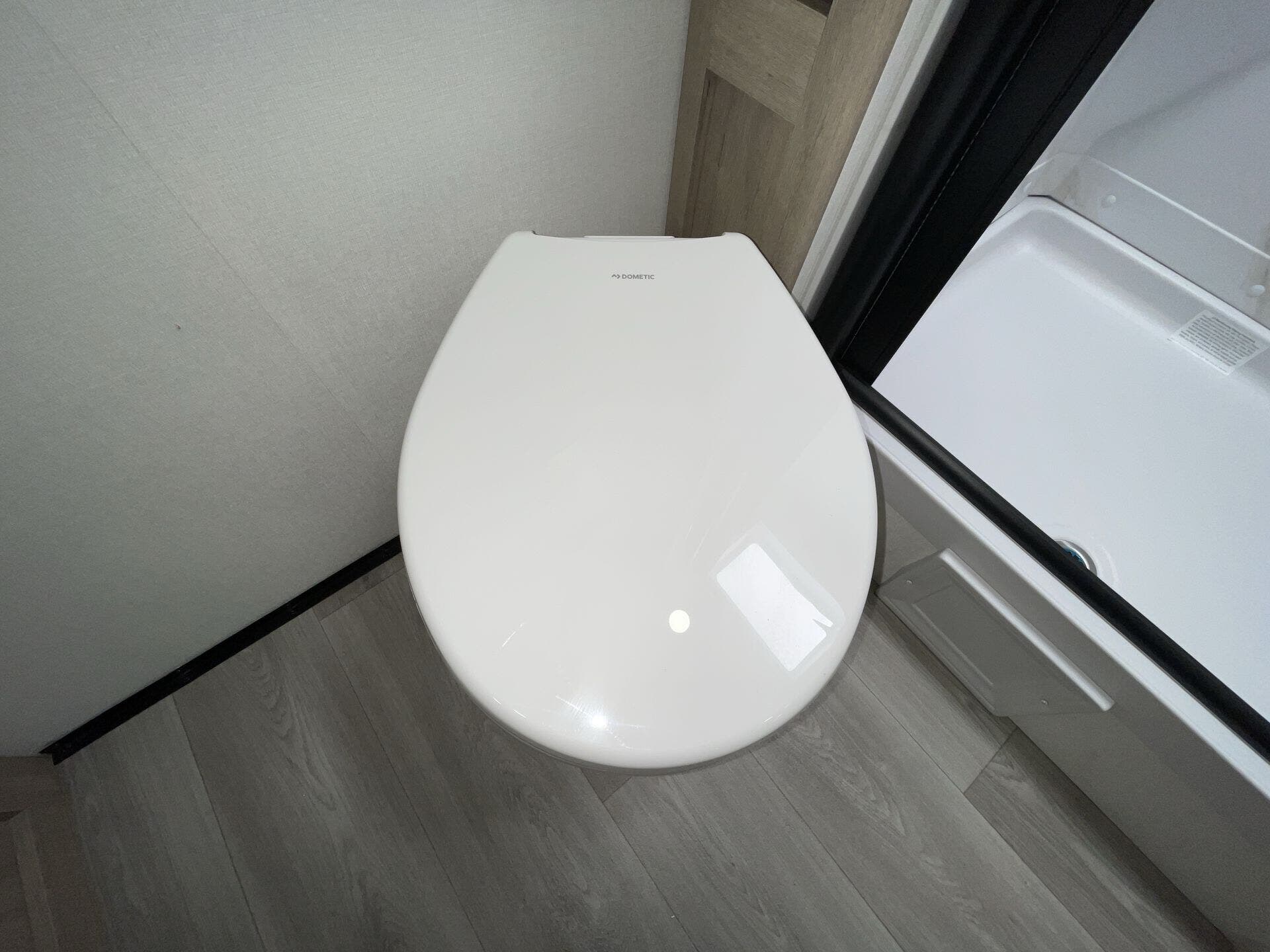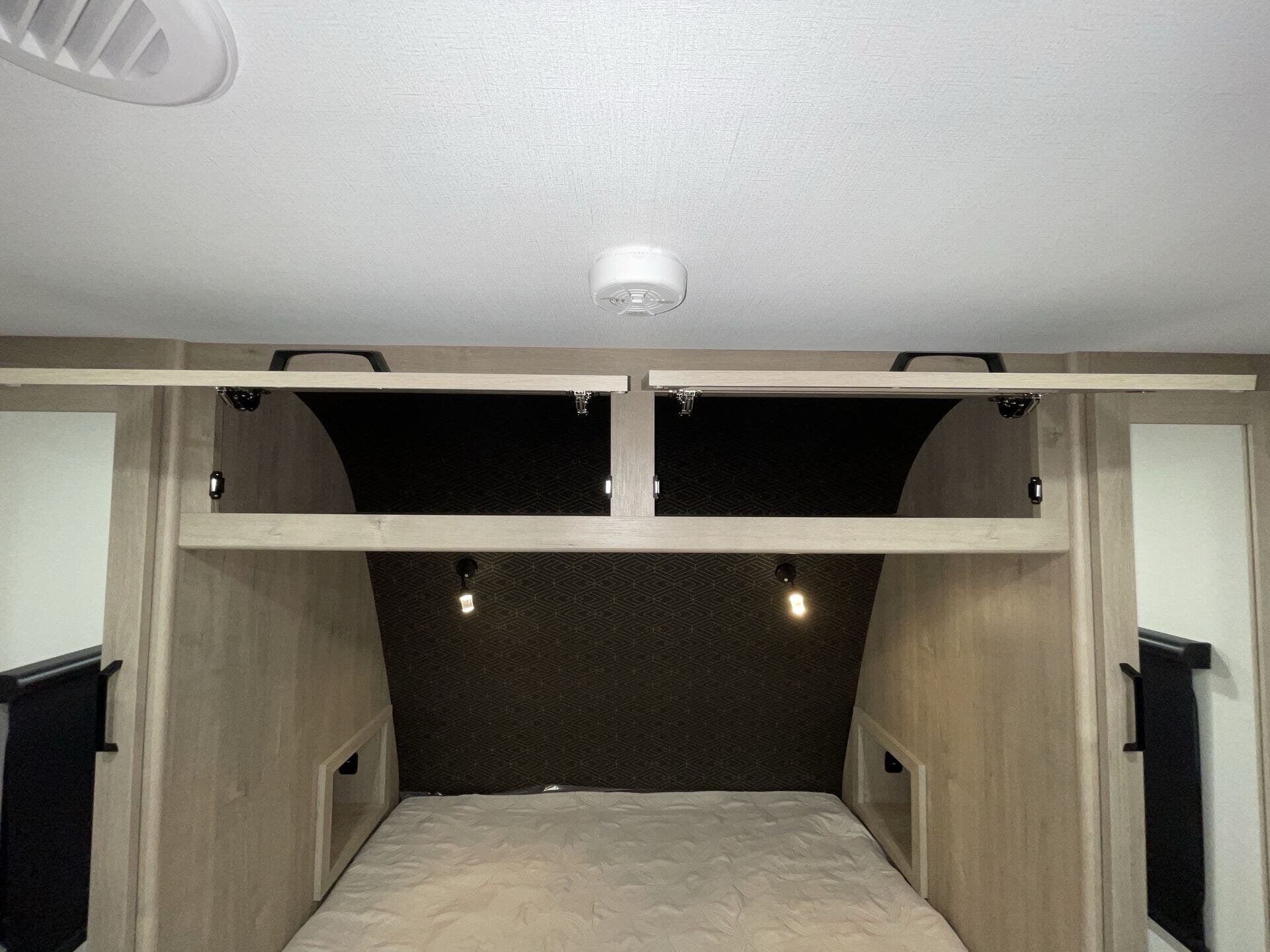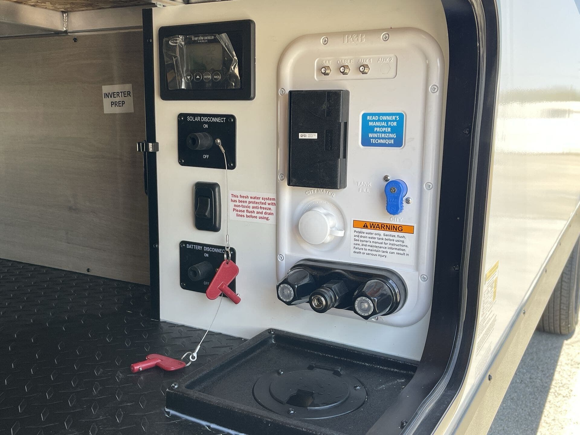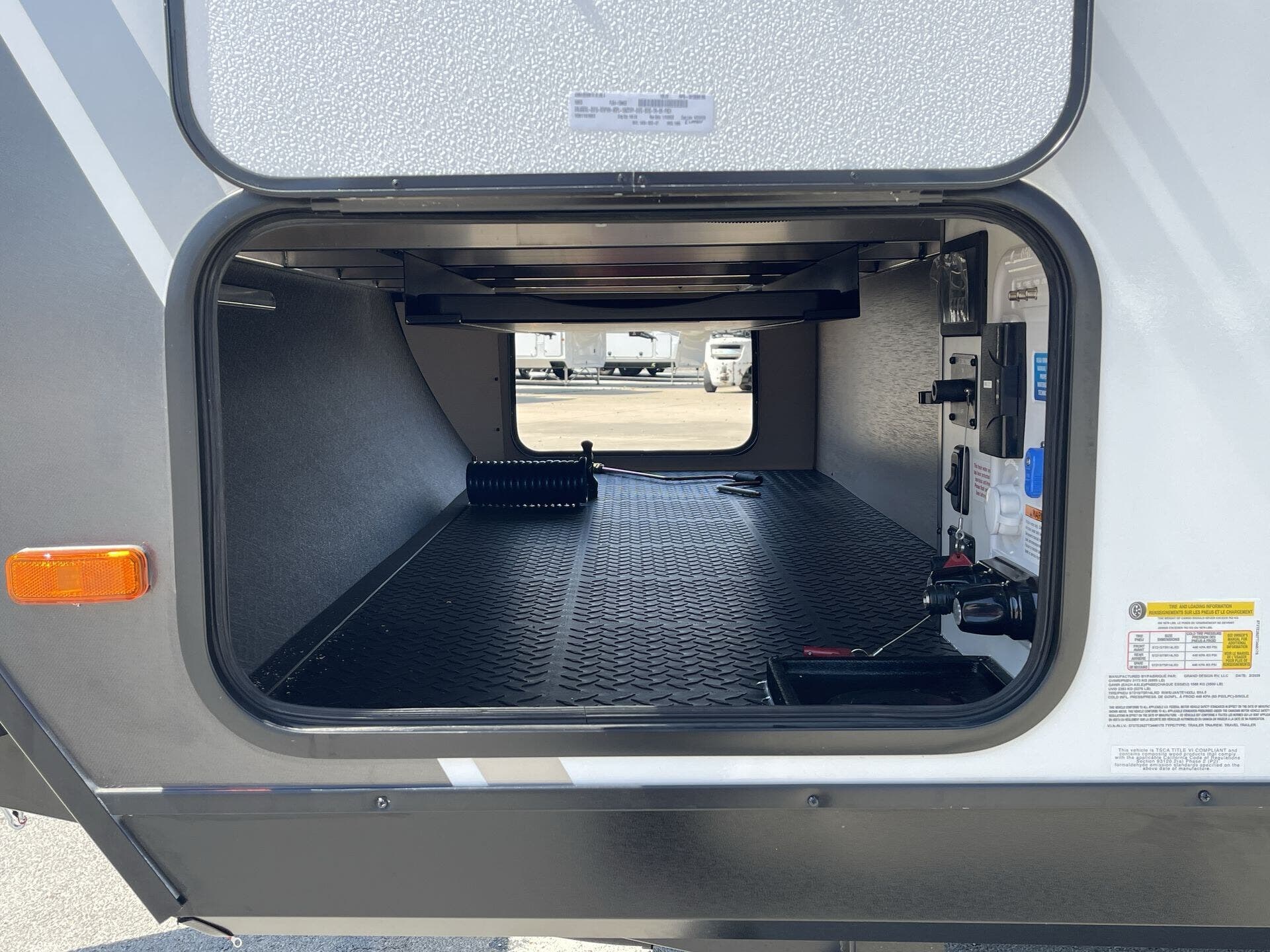 The private bedroom features a walk-around queen bed, while the oversized rear bath offers a residential-style shower for added comfort. With solar capability, climate control, and Grand Design’s durable construction, the 22RBE delivers reliable performance and comfort for every adventure.