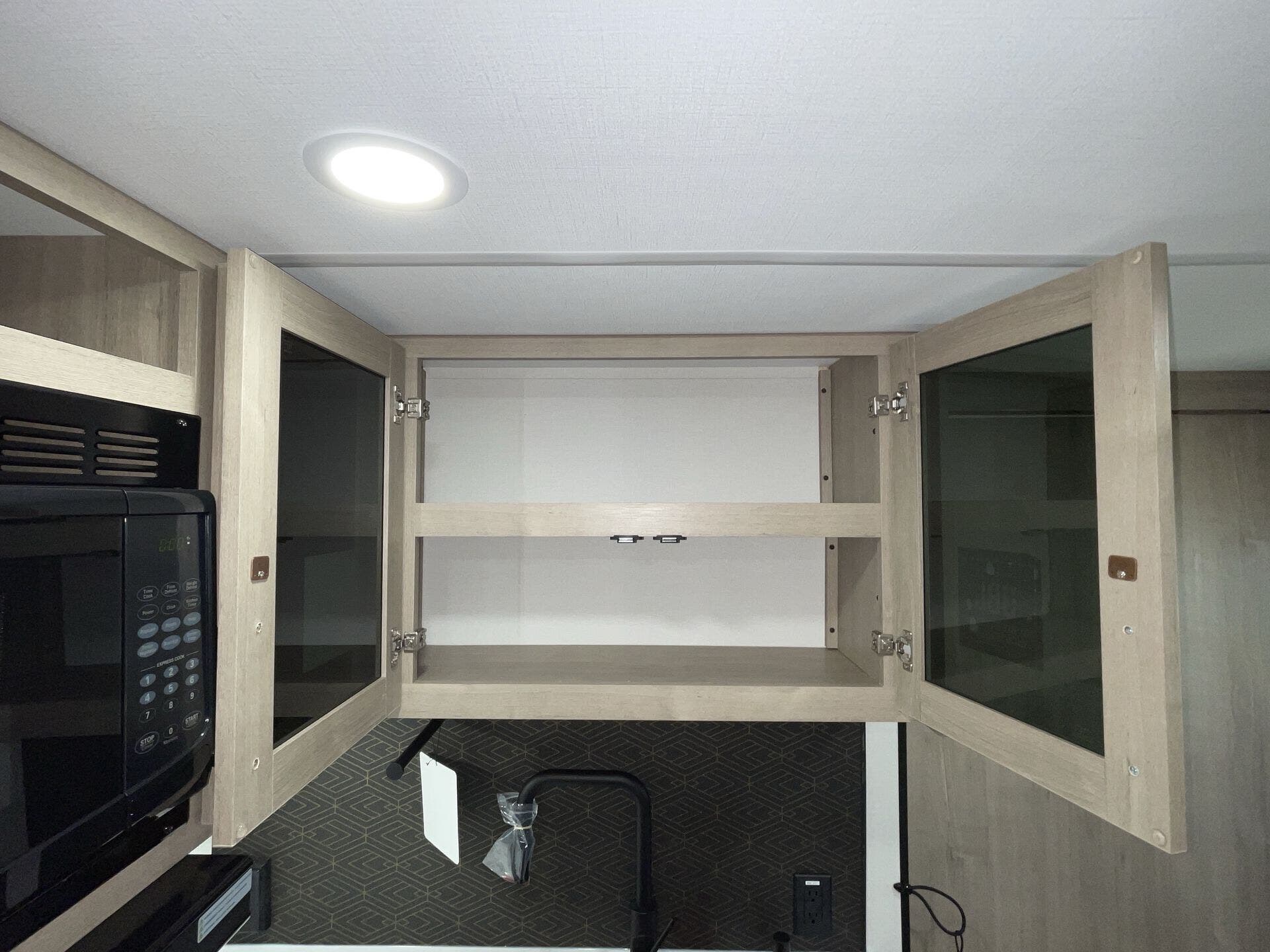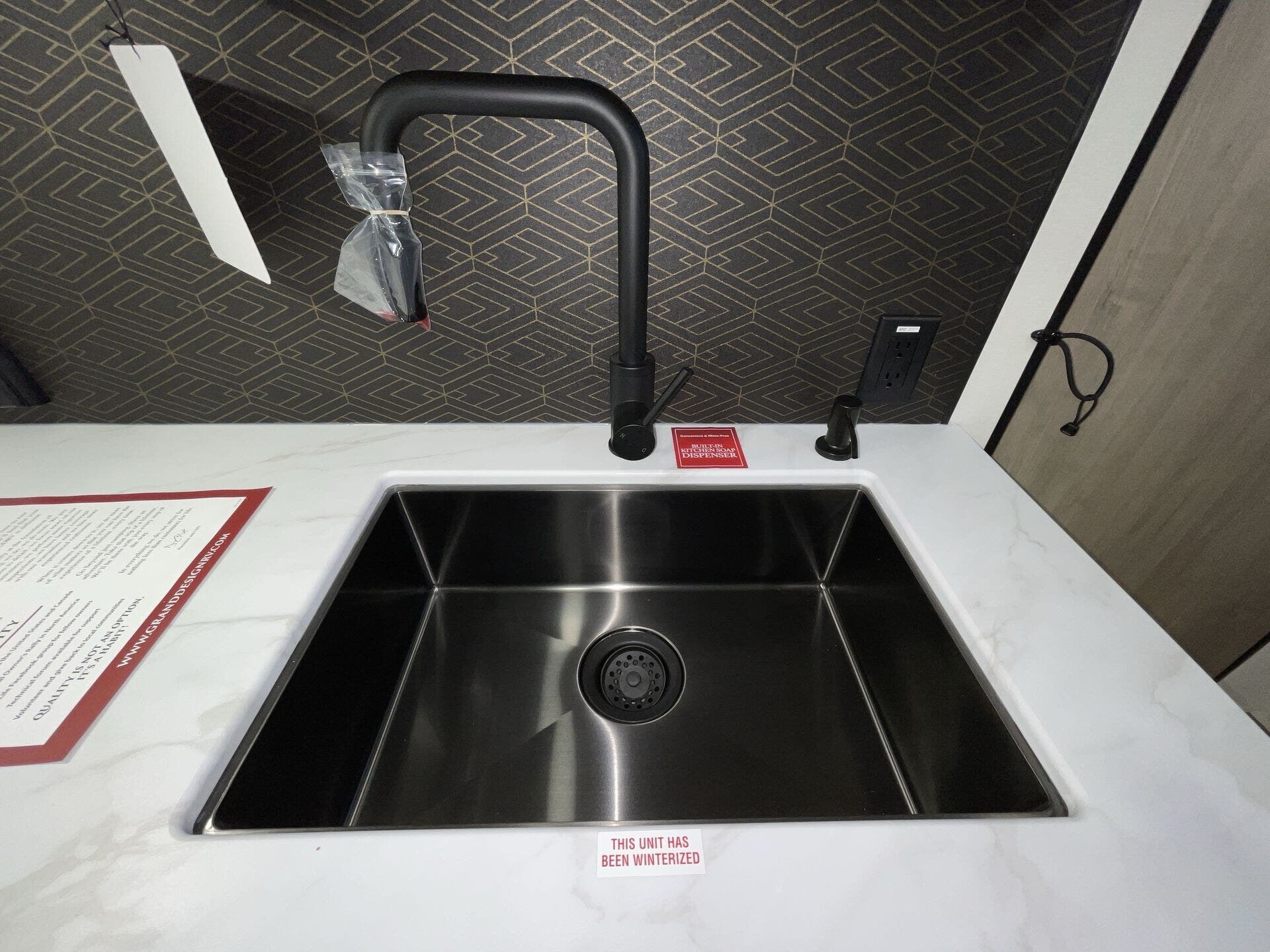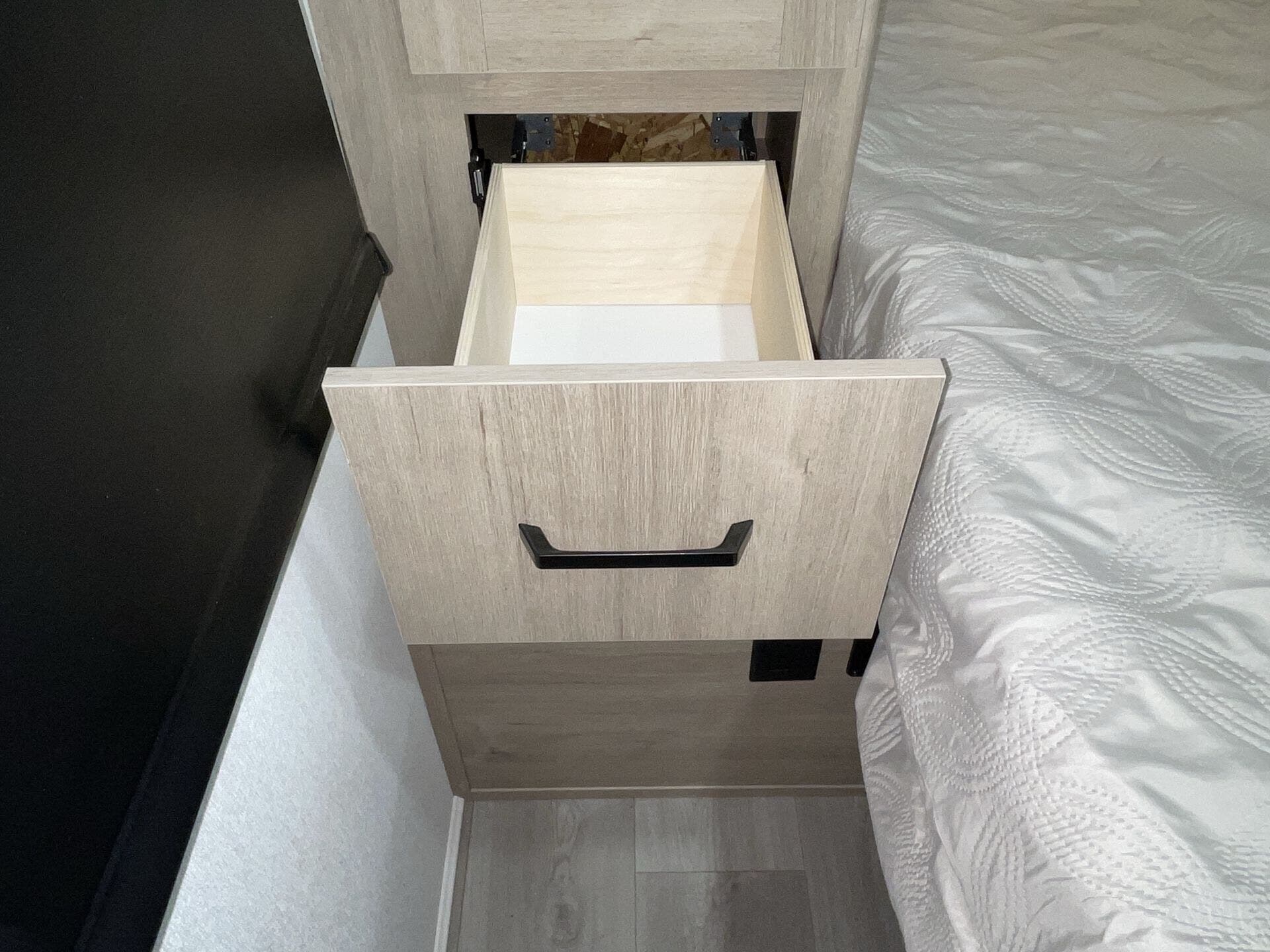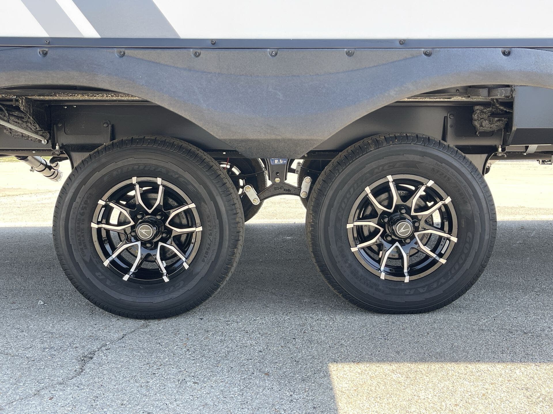 The private bedroom features a walk-around queen bed, while the oversized rear bath offers a residential-style shower for added comfort. With solar capability, climate control, and Grand Design’s durable construction, the 22RBE delivers reliable performance and comfort for every adventure.