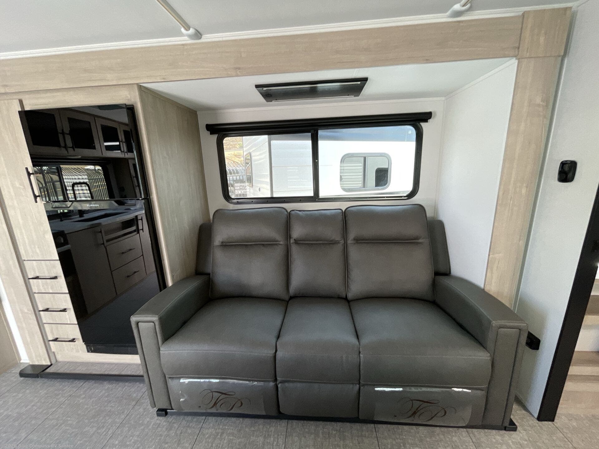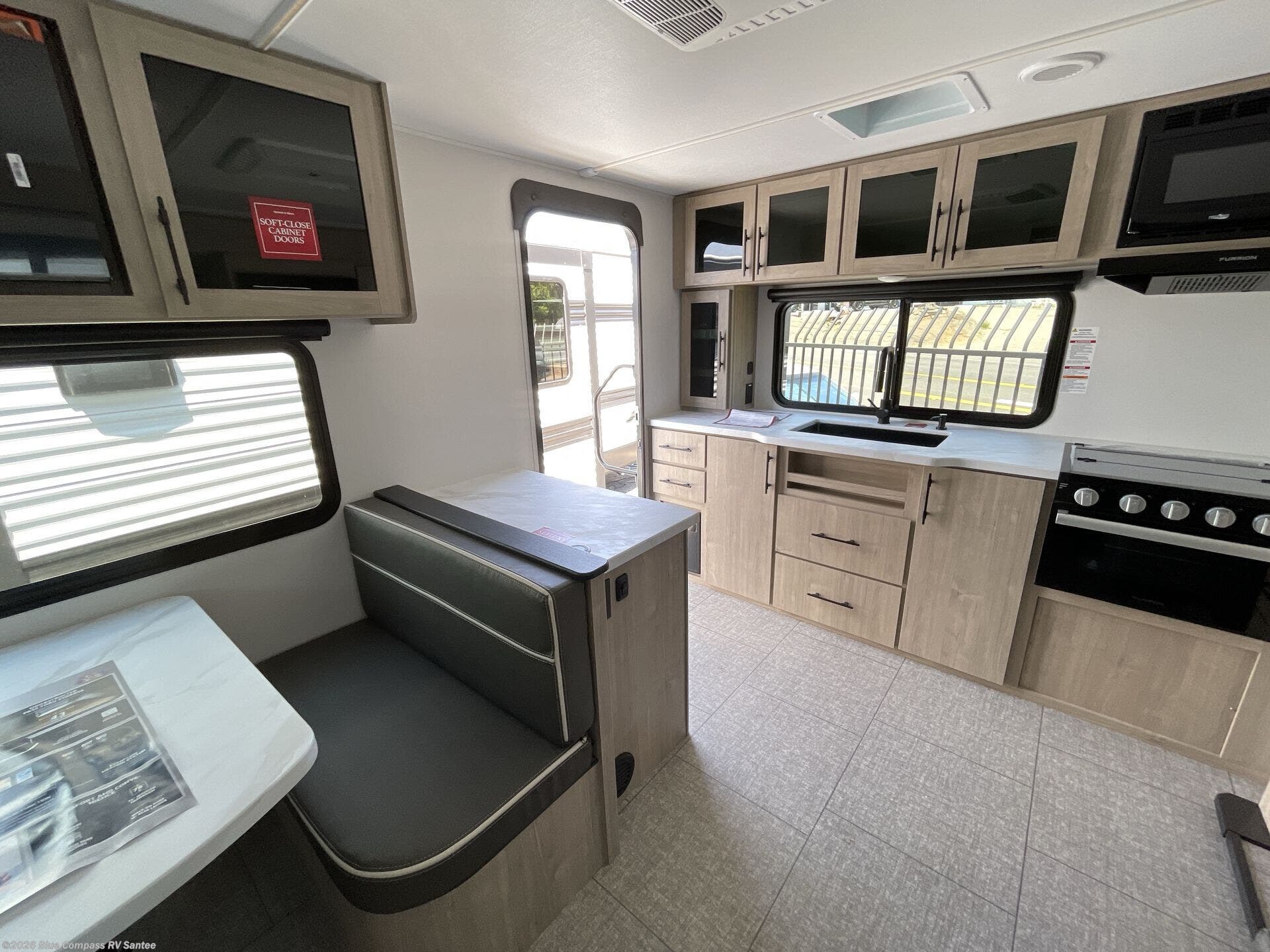 Treat yourself to a weekend of fun in this Imagine XLS travel trailer! Whether it's just you and your spouse, or you've chosen to bring along a group of friends, this trailer will meet the need. The front bedroom can sleep two people on the walk-around queen-size bed. The bedroom is quite functional because it not only contains the second exterior entry door, but it also has a private entrance into the walk-through bathroom since it is located on the other side of the bathroom. The booth dinette is functional too because it can transform from a dining location into a sleeping location, and the theater seating is directly across from the LED TV for easy viewing.