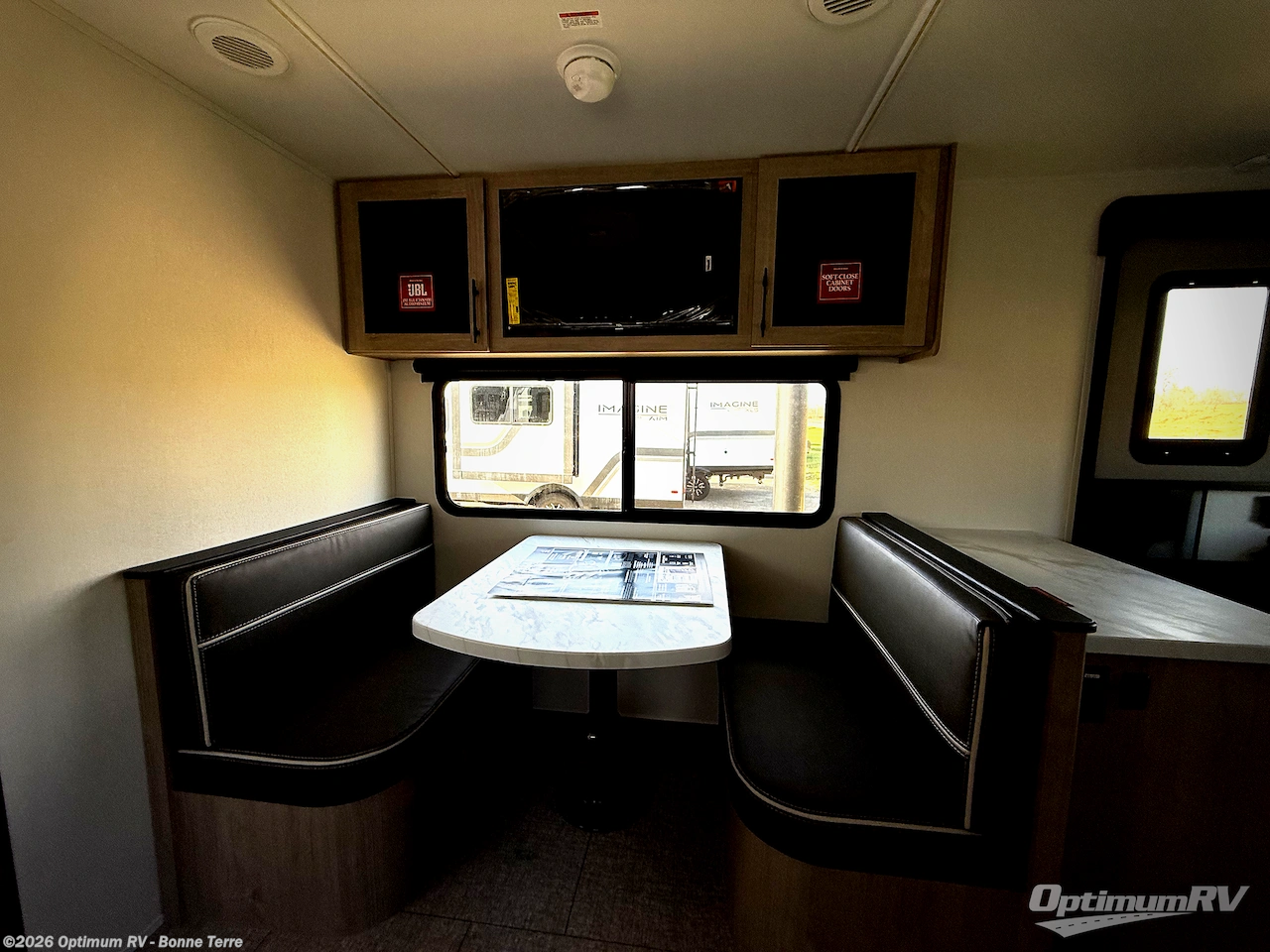 Treat yourself to a weekend of fun in this Imagine XLS travel trailer! Whether it's just you and your spouse, or you've chosen to bring along a group of friends, this trailer will meet the need. The front bedroom can sleep two people on the walk-around queen-size bed. The bedroom is quite functional because it not only contains the second exterior entry door, but it also has a private entrance into the walk-through bathroom since it is located on the other side of the bathroom. The booth dinette is functional too because it can transform from a dining location into a sleeping location, and the theater seating is directly across from the LED TV for easy viewing.