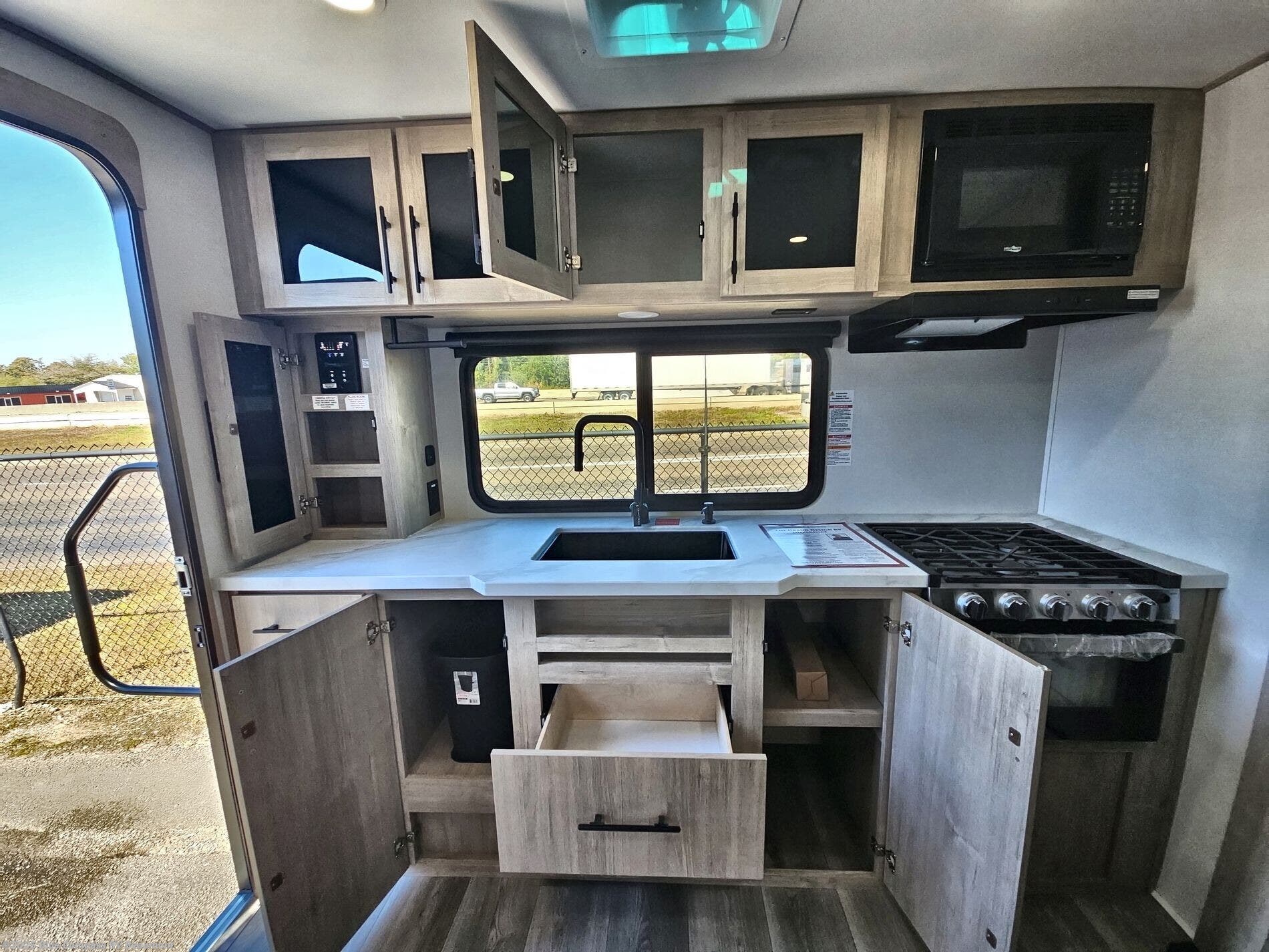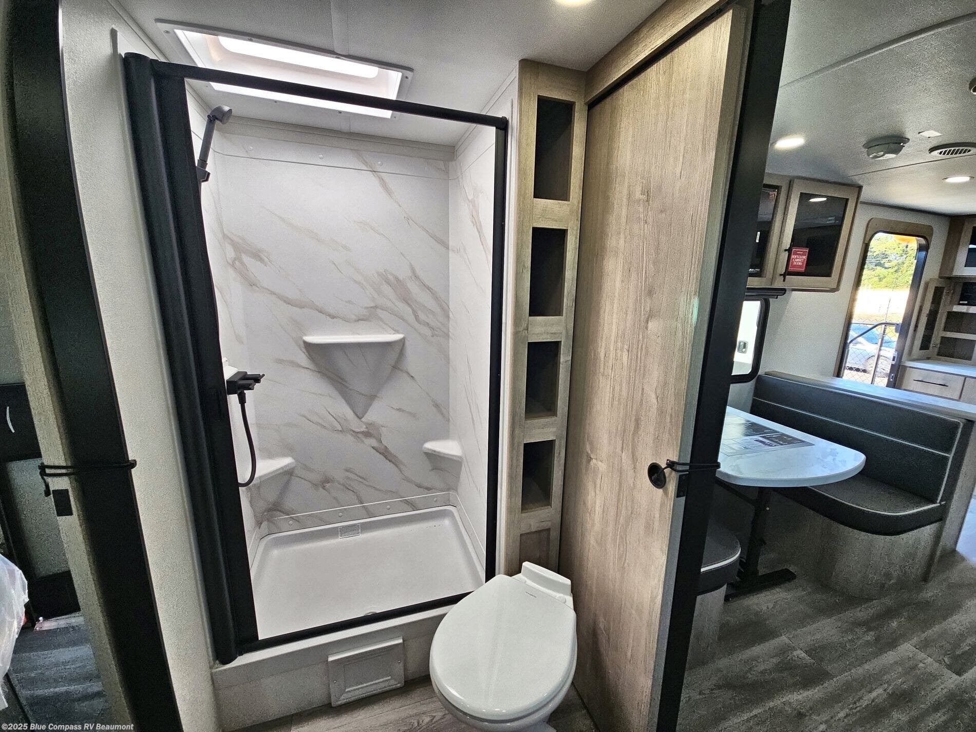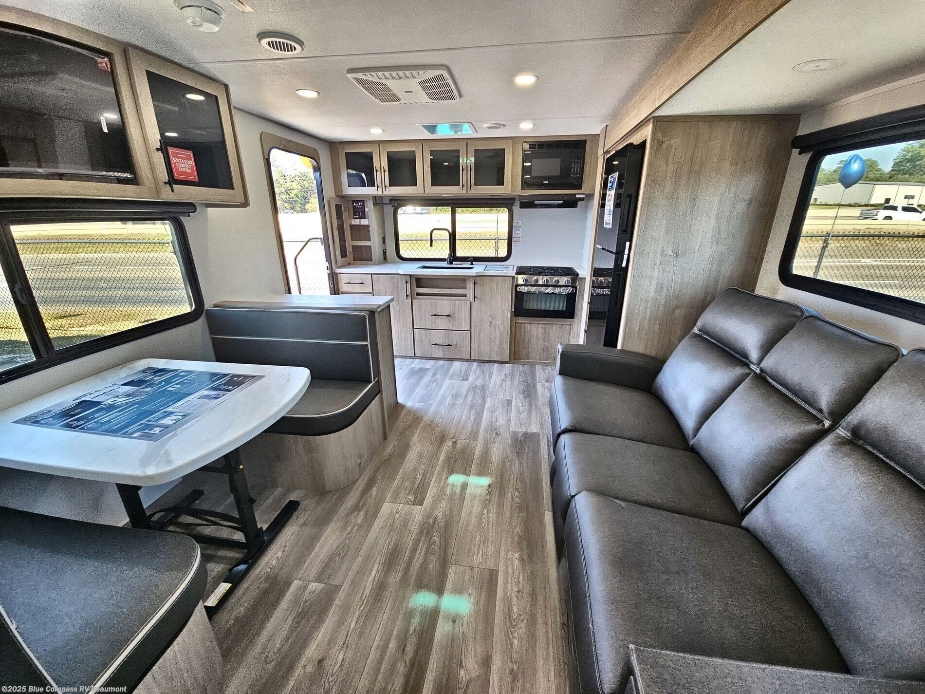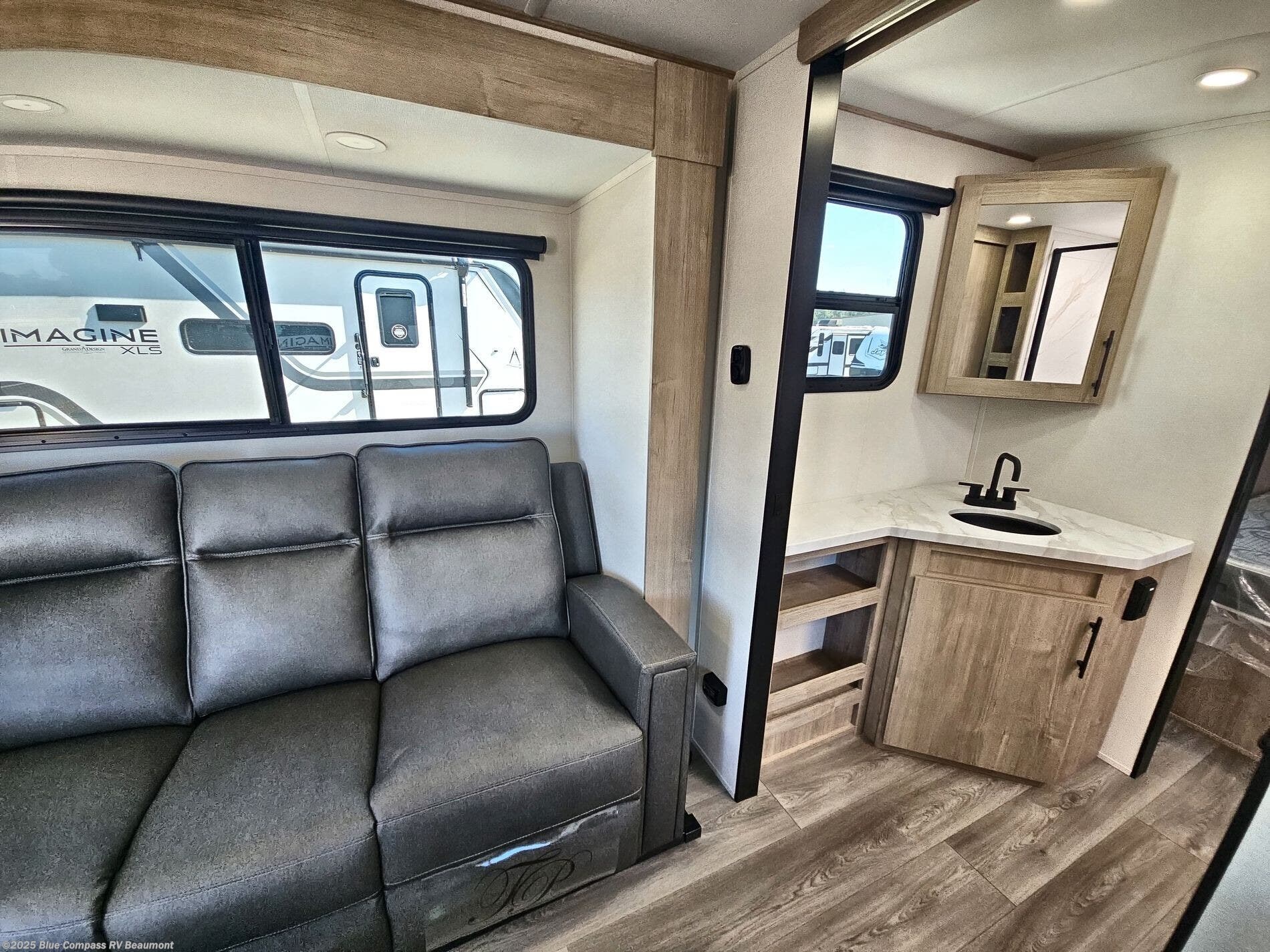 Treat yourself to a weekend of fun in this Imagine XLS travel trailer! Whether it's just you and your spouse, or you've chosen to bring along a group of friends, this trailer will meet the need. The front bedroom can sleep two people on the walk-around queen-size bed. The bedroom is quite functional because it not only contains the second exterior entry door, but it also has a private entrance into the walk-through bathroom since it is located on the other side of the bathroom. The booth dinette is functional too because it can transform from a dining location into a sleeping location, and the theater seating is directly across from the LED TV for easy viewing.