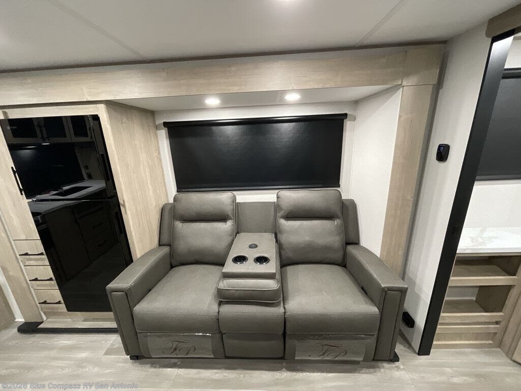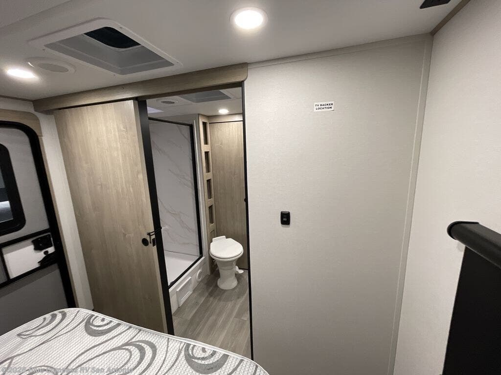 Treat yourself to a weekend of fun in this Imagine XLS travel trailer! Whether it's just you and your spouse, or you've chosen to bring along a group of friends, this trailer will meet the need. The front bedroom can sleep two people on the walk-around queen-size bed. The bedroom is quite functional because it not only contains the second exterior entry door, but it also has a private entrance into the walk-through bathroom since it is located on the other side of the bathroom. The booth dinette is functional too because it can transform from a dining location into a sleeping location, and the theater seating is directly across from the LED TV for easy viewing.