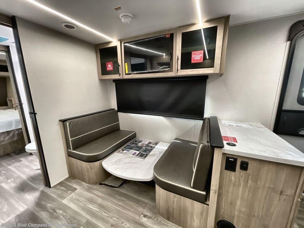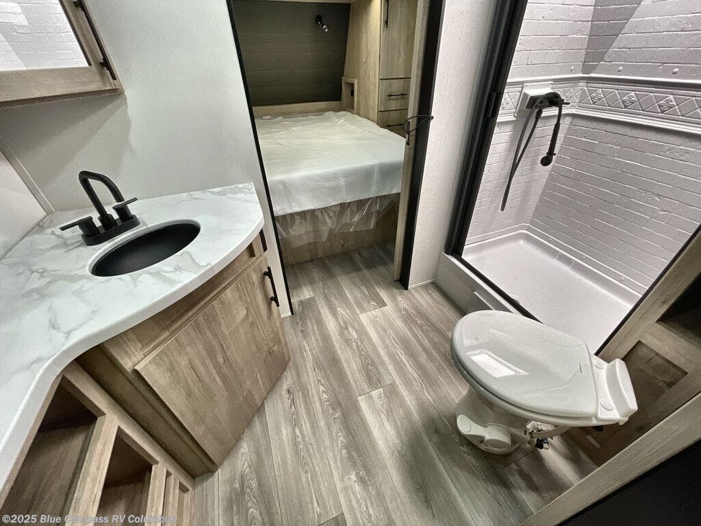 Treat yourself to a weekend of fun in this Imagine XLS travel trailer! Whether it's just you and your spouse, or you've chosen to bring along a group of friends, this trailer will meet the need. The front bedroom can sleep two people on the walk-around queen-size bed. The bedroom is quite functional because it not only contains the second exterior entry door, but it also has a private entrance into the walk-through bathroom since it is located on the other side of the bathroom. The booth dinette is functional too because it can transform from a dining location into a sleeping location, and the theater seating is directly across from the LED TV for easy viewing.