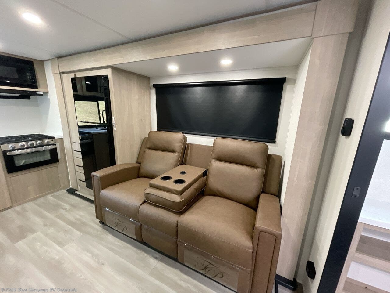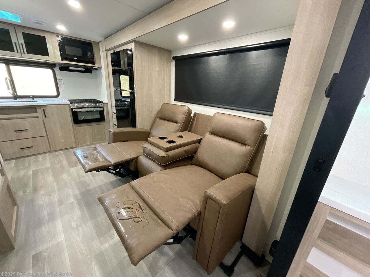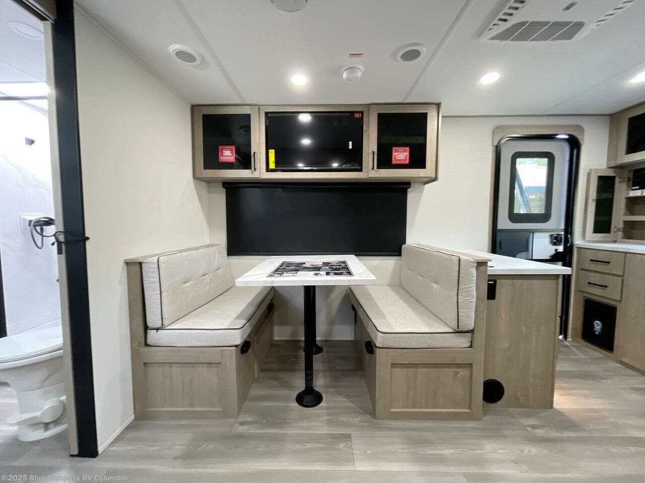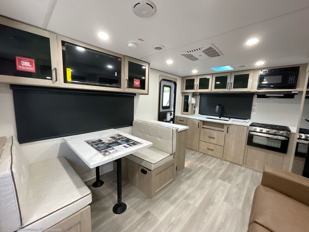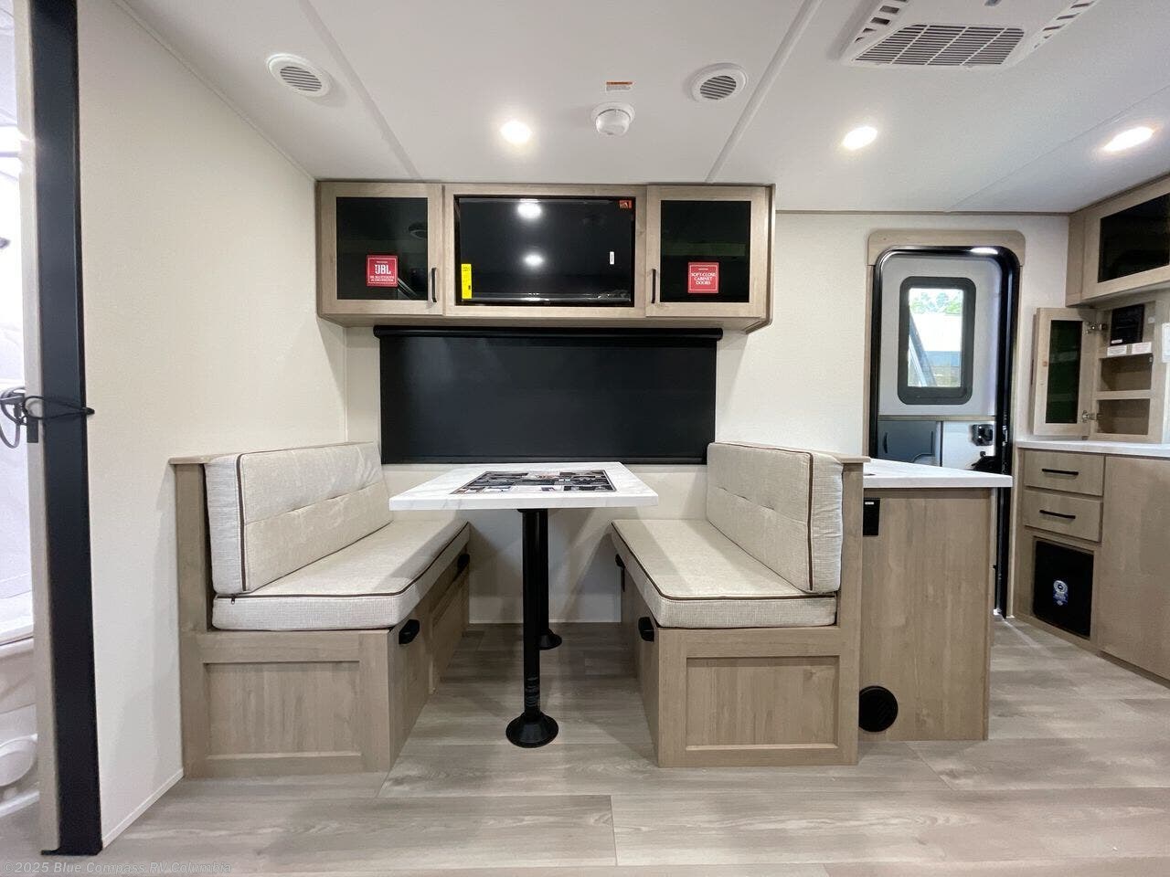 Treat yourself to a weekend of fun in this Imagine XLS travel trailer! Whether it's just you and your spouse, or you've chosen to bring along a group of friends, this trailer will meet the need. The front bedroom can sleep two people on the walk-around queen-size bed. The bedroom is quite functional because it not only contains the second exterior entry door, but it also has a private entrance into the walk-through bathroom since it is located on the other side of the bathroom. The booth dinette is functional too because it can transform from a dining location into a sleeping location, and the theater seating is directly across from the LED TV for easy viewing.