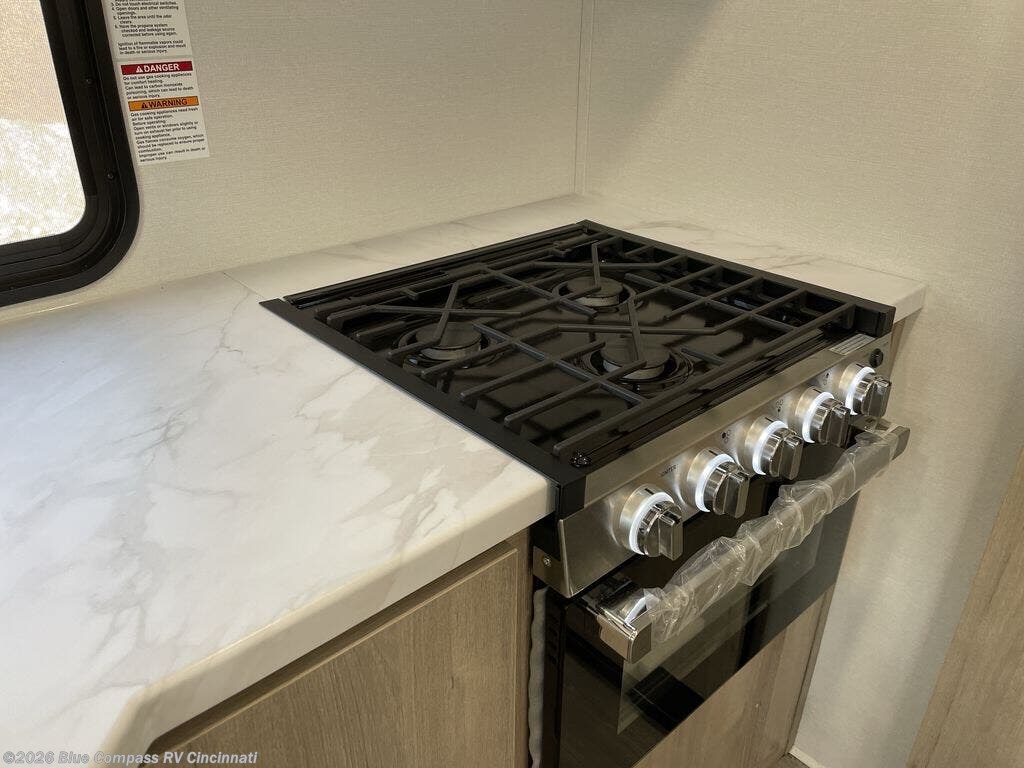 Treat yourself to a weekend of fun in this Imagine XLS travel trailer! Whether it's just you and your spouse, or you've chosen to bring along a group of friends, this trailer will meet your needs. The front bedroom can sleep two people on the walk-around queen-size bed. The bedroom is quite functional because it not only contains the second exterior entry door, but it also has a private entrance into the walk-through bathroom since it is located on the other side of the bathroom. The booth dinette is functional too because it can transform from a dining location into a sleeping location, and the theater seating is directly across from the LED TV for easy viewing. The rear kitchen is fit for the chef on the trip, it features residential countertops, a stainless-steel sink and a 3-burner range with oven for you to cook your meals in comfort.
