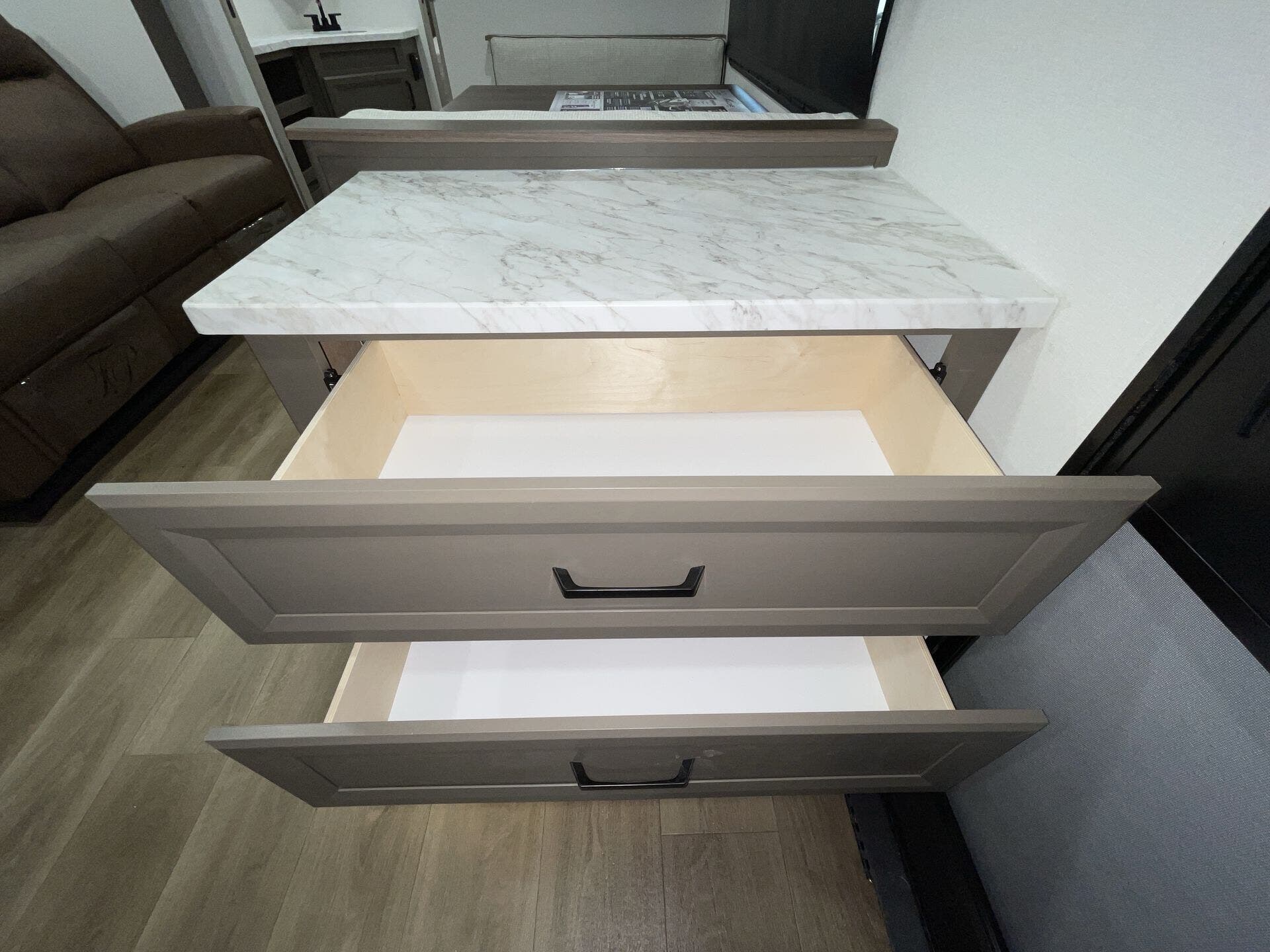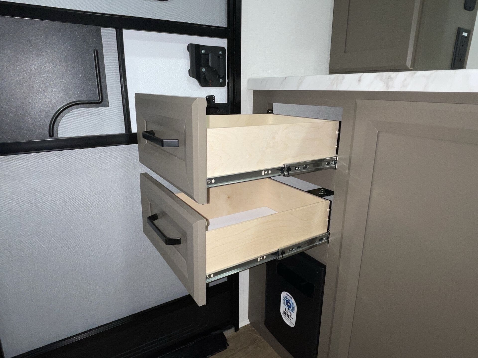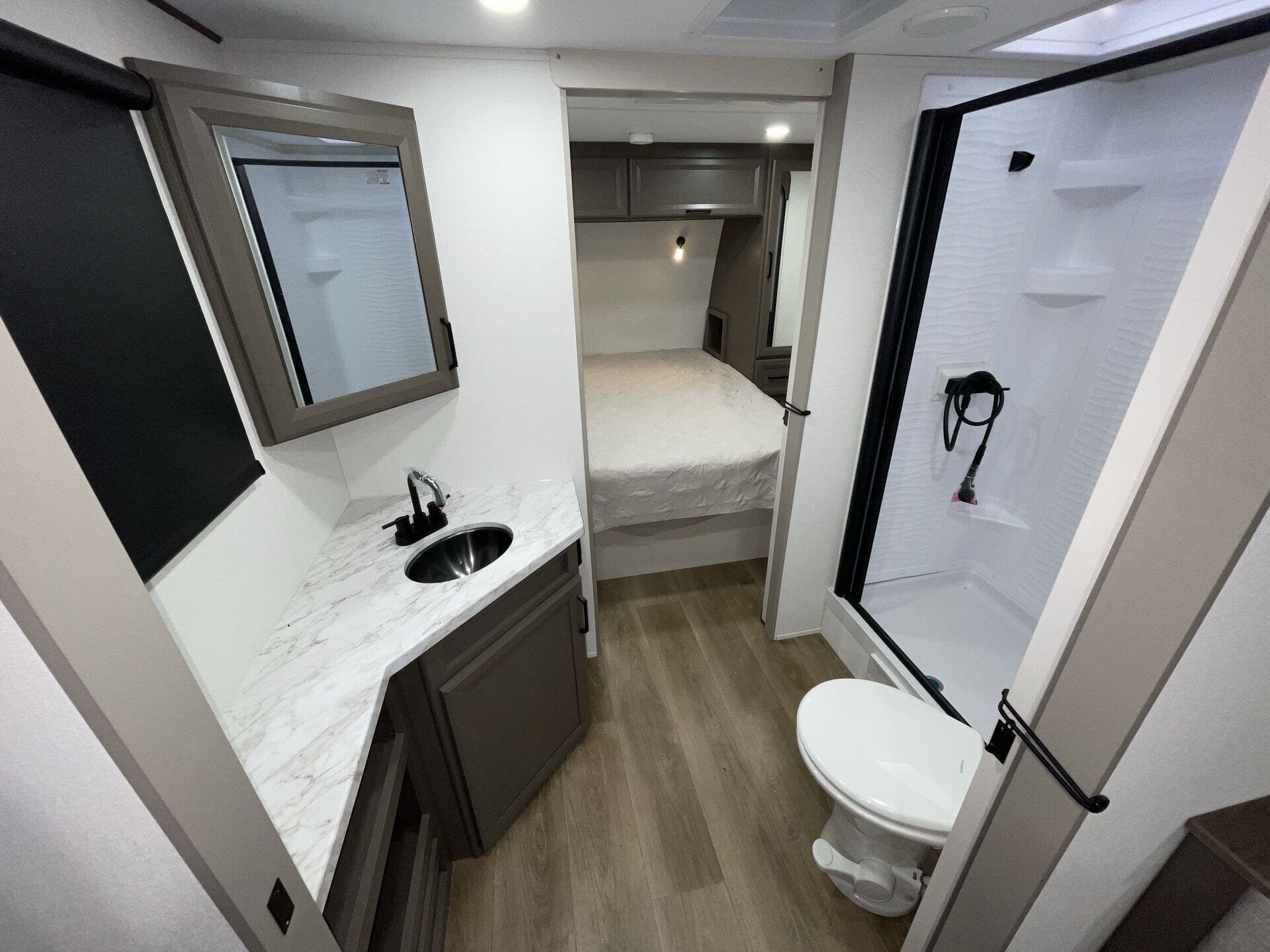 Up front, you'll find a private queen bedroom and a convenient walk-through bathroom with dual entry. With its lightweight design and practical features, the 23LDE is ideal for easy towing and comfortable travel.