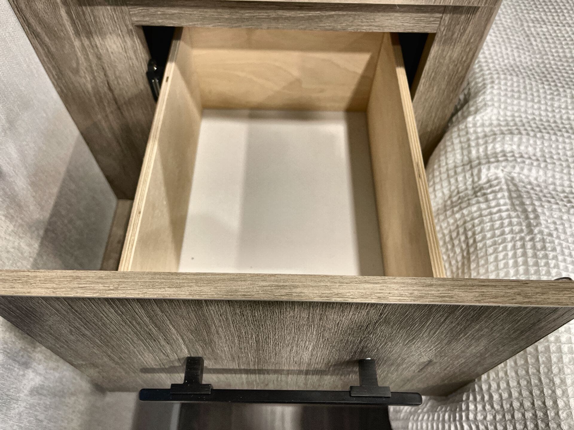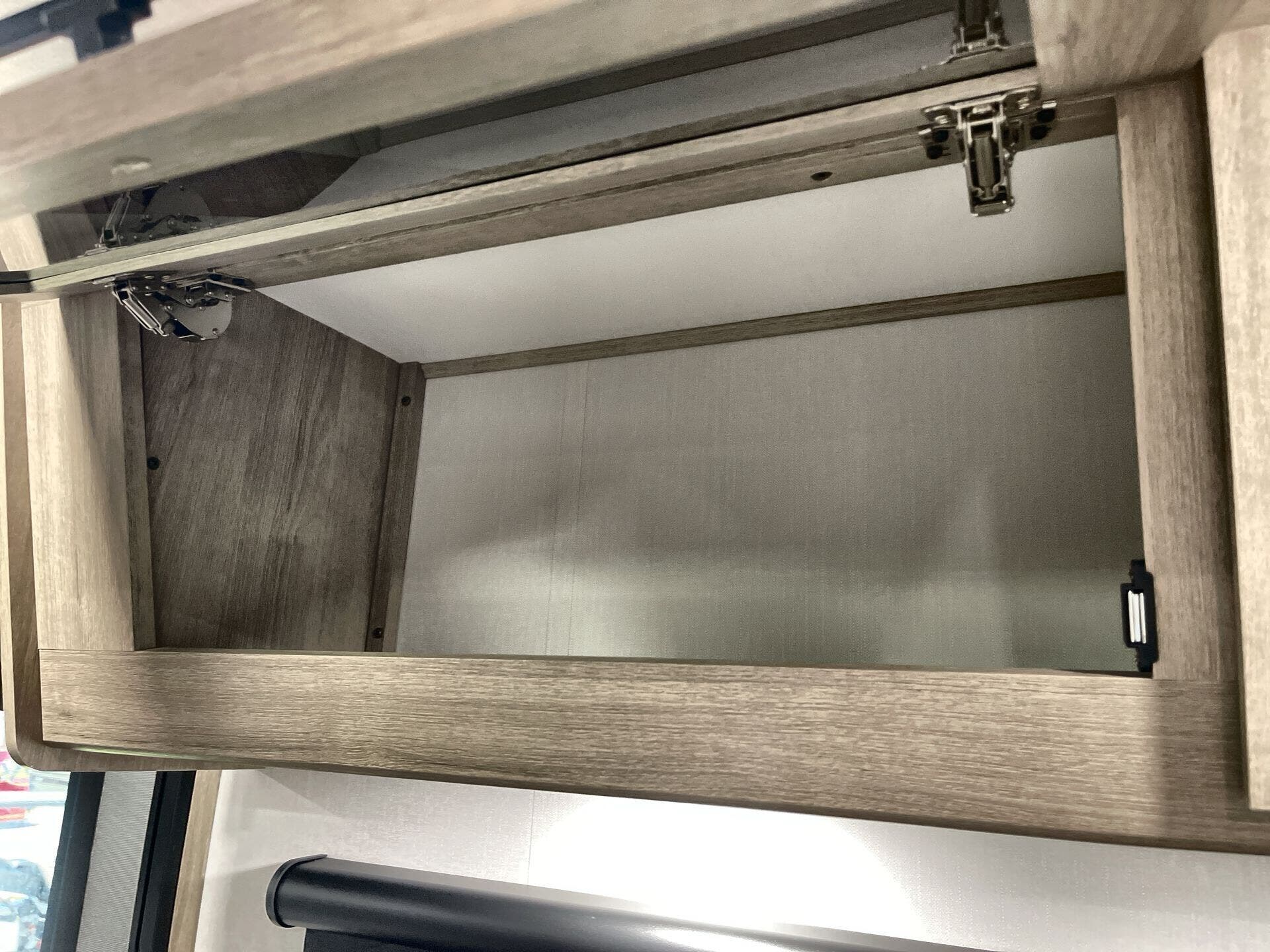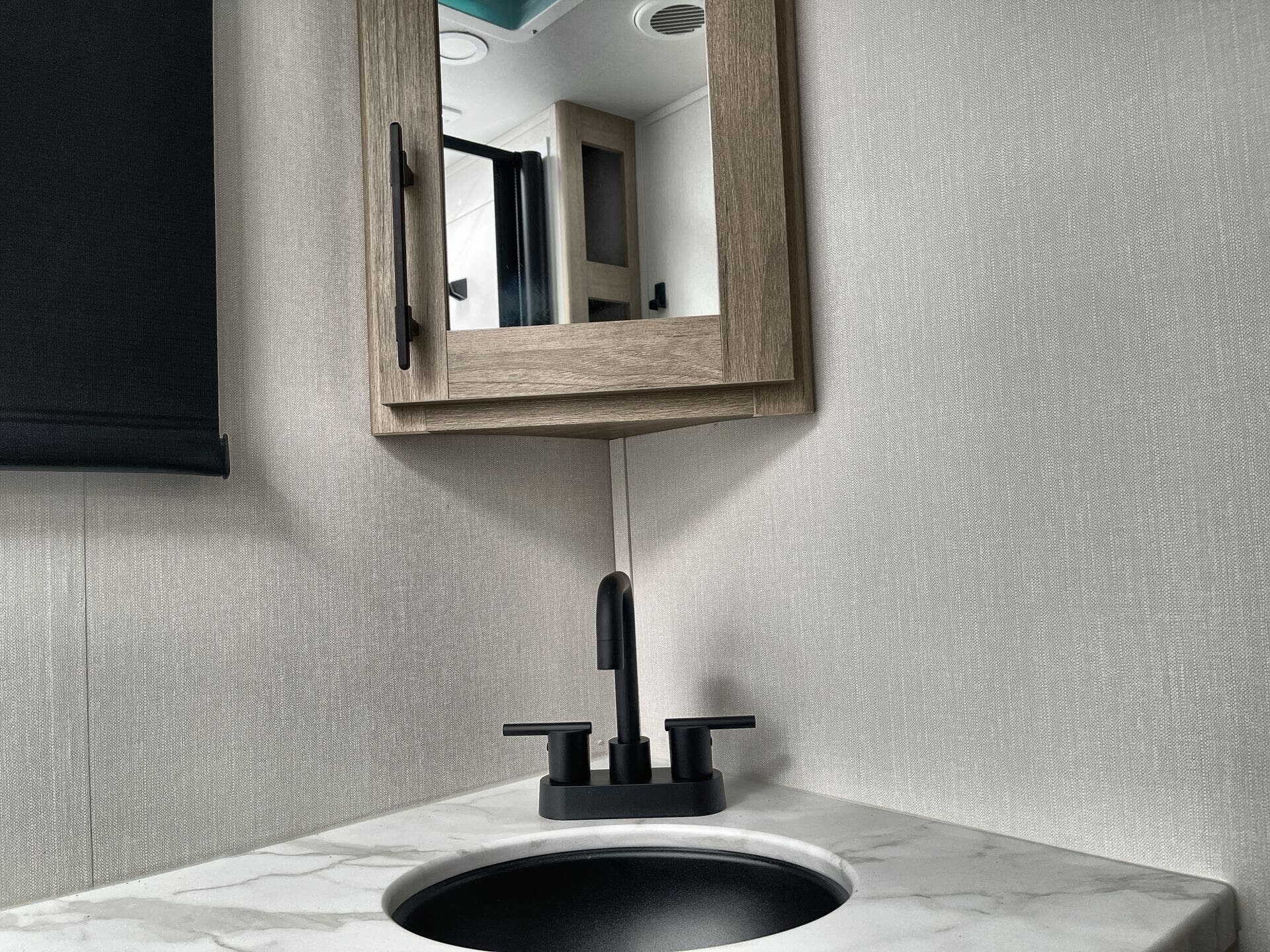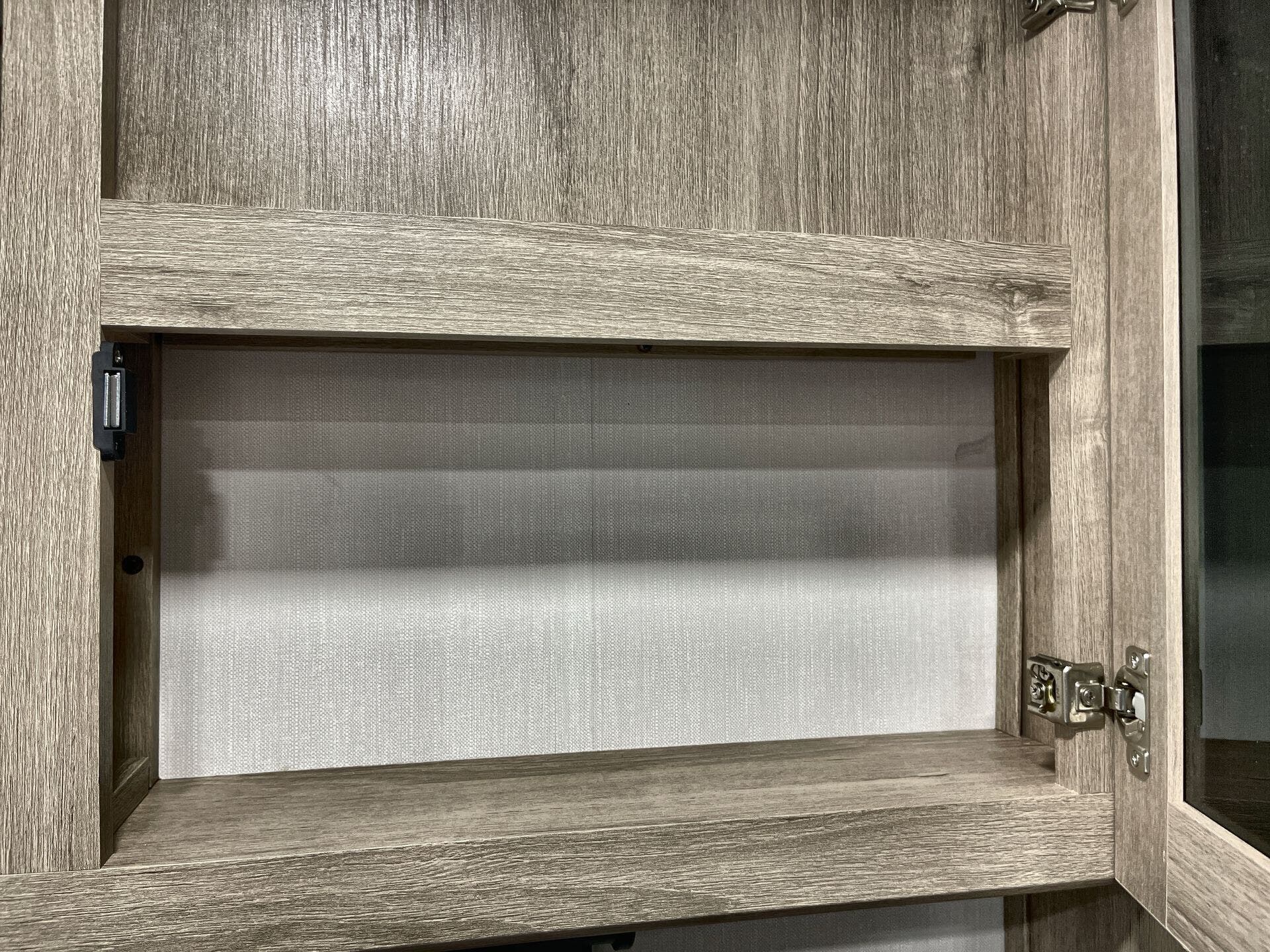 The 25DBE features a thoughtfully designed floor plan with sleeping accommodations for up to eight. A private master bedroom at the front offers a walkaround queen bed with overhead storage and bedside wardrobes, ensuring comfort and privacy. In the rear, double-over-double bunks provide ample space for kids or guests, while the convertible dinette and tri-fold sofa offer additional sleeping options.