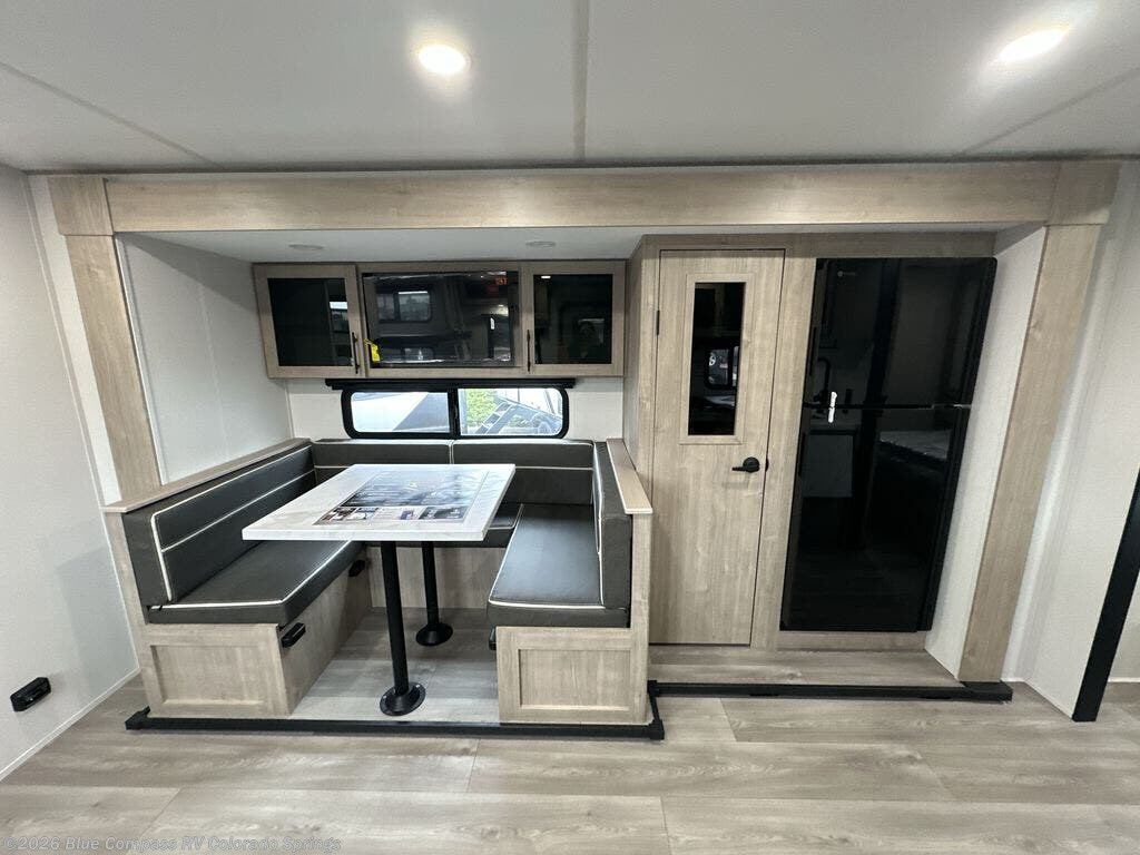 The dual entry doors make it easy to enter and exit this travel trailer! You will find a walk-around queen-size bed up front in the private bedroom, and one of the entry/exit doors to the unit so you can quietly slip out for an early morning fishing trip. The U-shaped dinette is right next to the window, so you can look out at your surroundings while you enjoy breakfast. The double-size bunks have some privacy curtains, and the bunks are right next to the full bathroom for easy access in the middle of the night. The fully equipped kitchen has everything you need to get dinner in the oven, and you can have some more prep space by using the flip-up countertop extension. You even have an outdoor griddle and an outdoor 1.6 cu. ft. refrigerator to enjoy a cold beverage while you cook under the 22' electric awning!