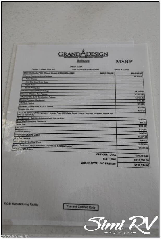 Looking to buy a 2026 Grand Design Influence Fifth Wheel RV?