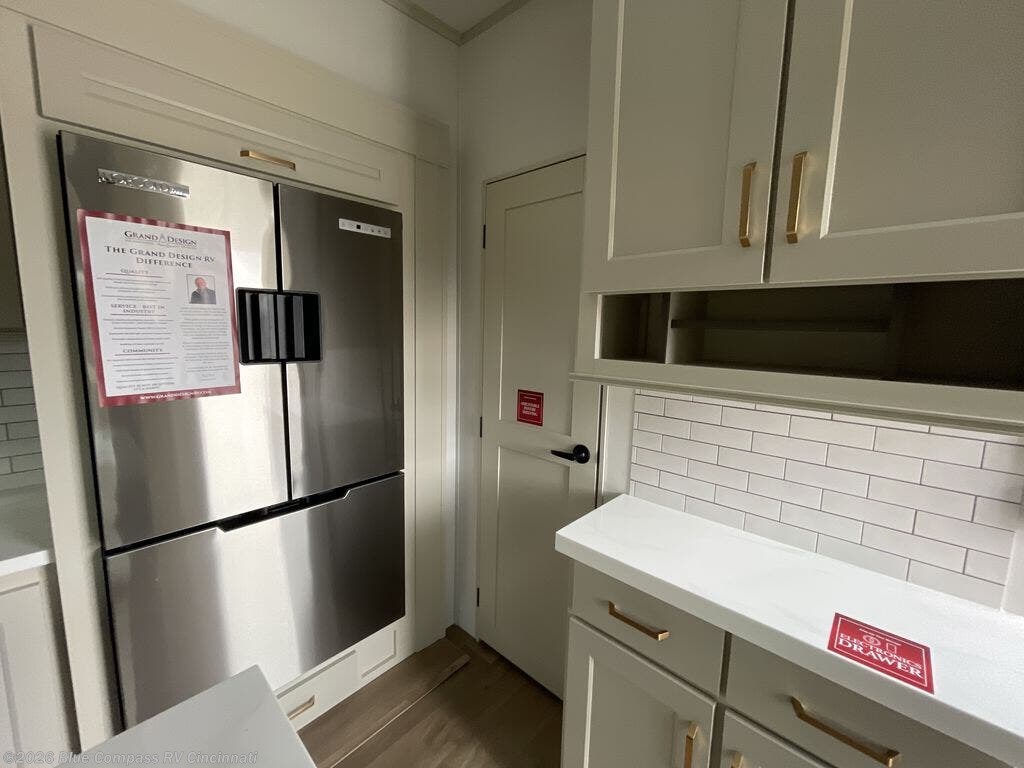 Any Grand Design Influence fifth wheel features five-sided aluminum cage construction with a walk-on roof and a fully enclosed underbelly with heated tanks and storage for all weather camping. For peace of mind, the MORryde CRE3000 Suspension system will provide safe and smooth towing, and the 101" widebody construction offers all the room you need and that is before multiple slides are fully engaged. You will appreciate the Keyed-Alike locks, slam-latch baggage doors with magnetic door catches, exterior security light, and SolidStep entry steps. On the inside, Congoleum flooring, premium roller shades for privacy, a hallway handrail for safety, and nightstands with USB ports to keep all of your electronics fully charged. You will also love the On Demand tankless water heater when showering, plus the added heat and ambiance from an electric fireplace, and so much more!