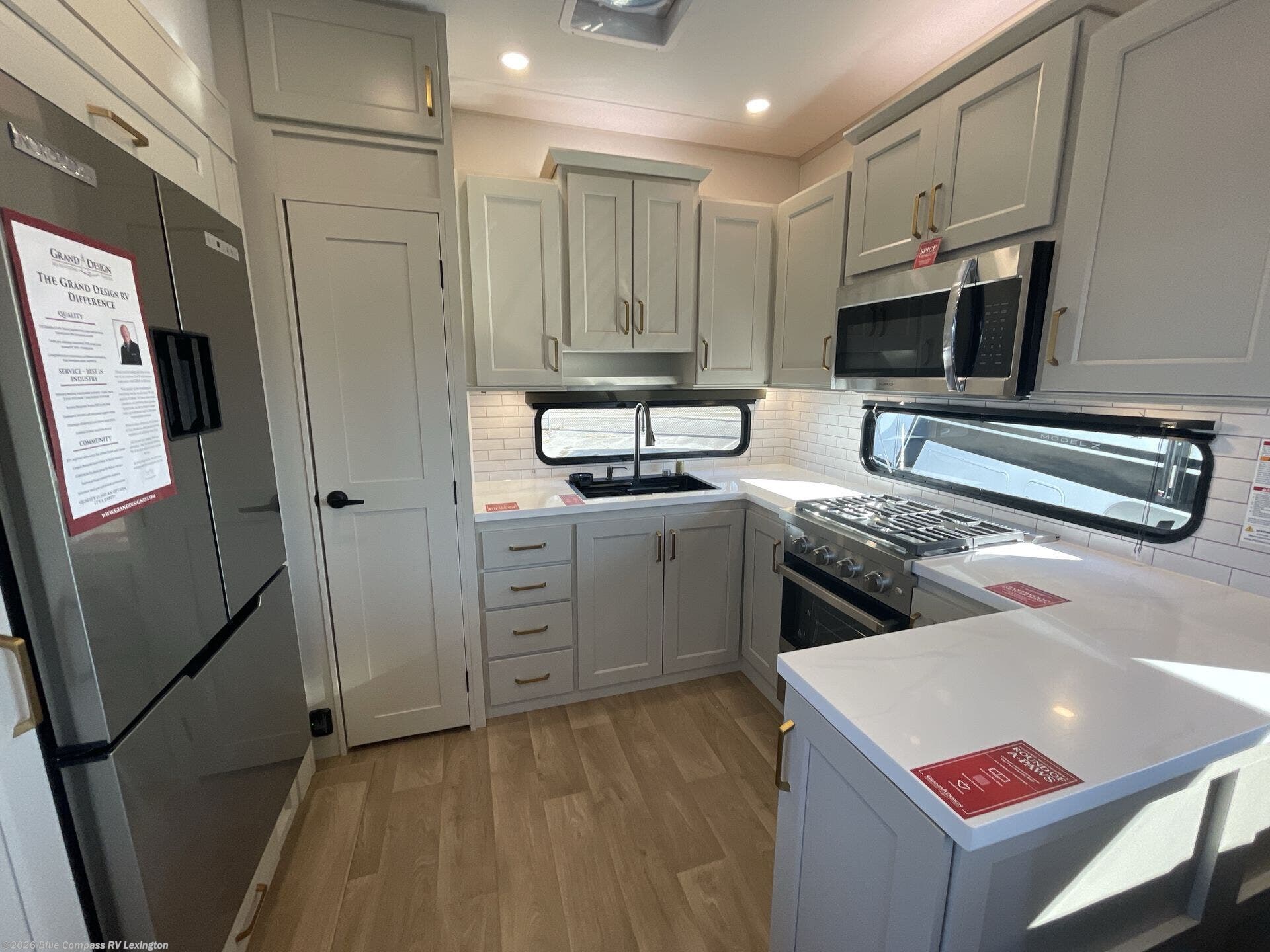 Any Grand Design Influence fifth wheel features five-sided aluminum cage construction with a walk-on roof and a fully enclosed underbelly with heated tanks and storage for all weather camping. For peace of mind, the MORryde CRE3000 Suspension system will provide safe and smooth towing, and the 101" widebody construction offers all the room you need and that is before multiple slides are fully engaged. You will appreciate the Keyed-Alike locks, slam-latch baggage doors with magnetic door catches, exterior security light, and SolidStep entry steps. On the inside, Congoleum flooring, premium roller shades for privacy, a hallway handrail for safety, and nightstands with USB ports to keep all of your electronics fully charged. You will also love the On Demand tankless water heater when showering, plus the added heat and ambiance from an electric fireplace, and so much more!