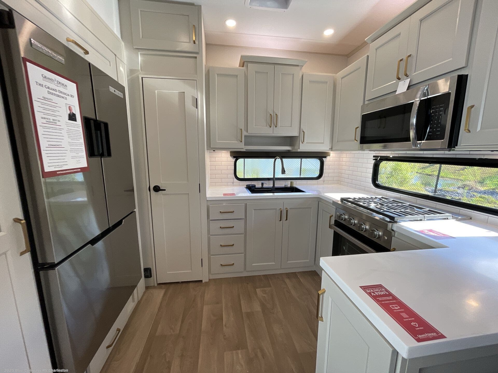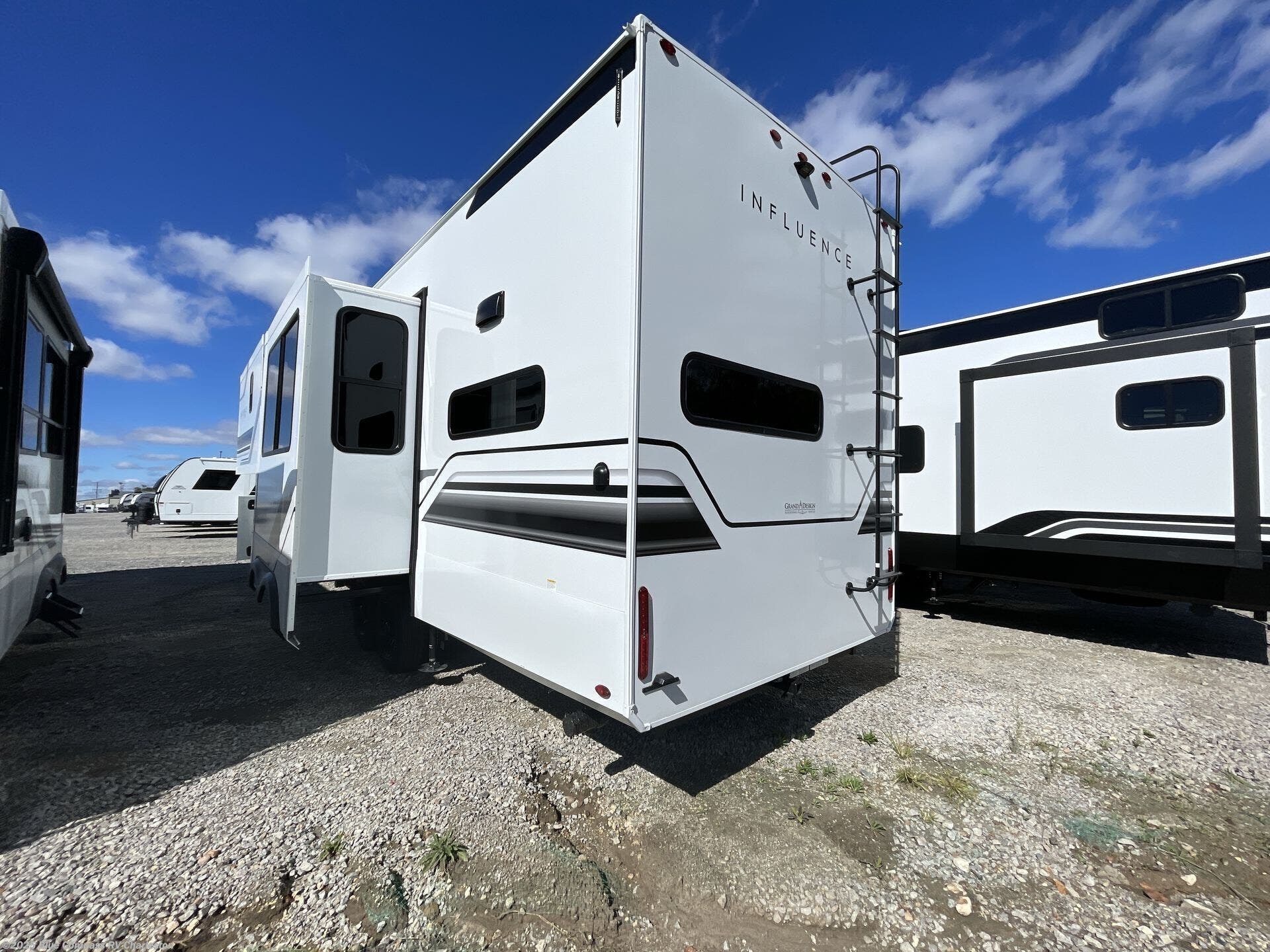 Any Grand Design Influence fifth wheel features five-sided aluminum cage construction with a walk-on roof and a fully enclosed underbelly with heated tanks and storage for all weather camping. For peace of mind, the MORryde CRE3000 Suspension system will provide safe and smooth towing, and the 101" widebody construction offers all the room you need and that is before multiple slides are fully engaged. You will appreciate the Keyed-Alike locks, slam-latch baggage doors with magnetic door catches, exterior security light, and SolidStep entry steps. On the inside, Congoleum flooring, premium roller shades for privacy, a hallway handrail for safety, and nightstands with USB ports to keep all of your electronics fully charged. You will also love the On Demand tankless water heater when showering, plus the added heat and ambiance from an electric fireplace, and so much more!