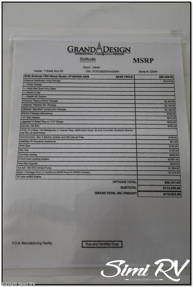 Looking to buy a 2026 Grand Design Influence Fifth Wheel RV?