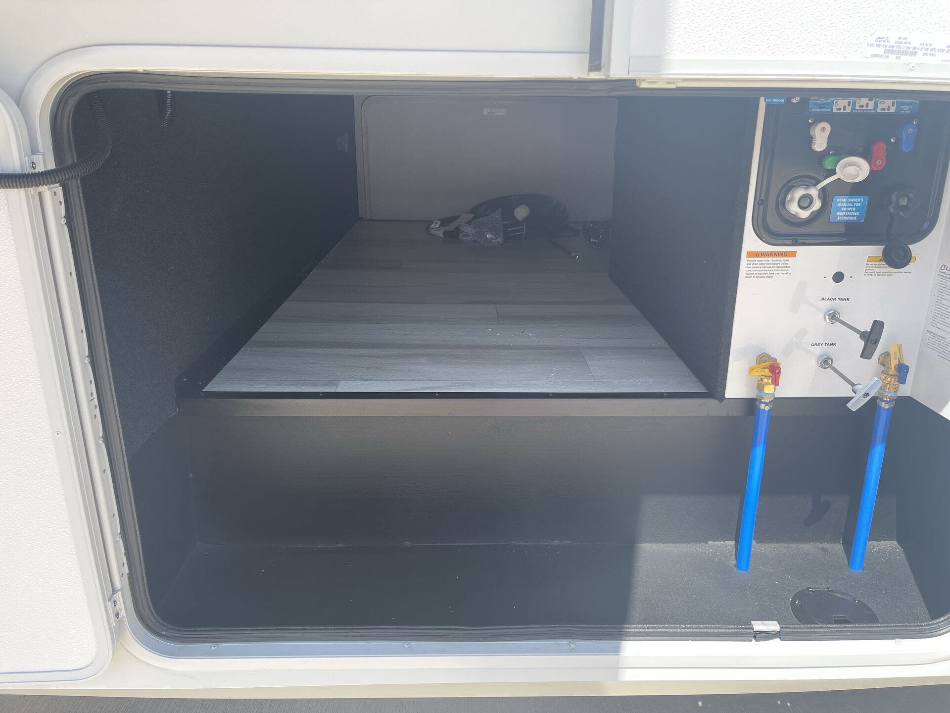 - Water capacities: 81 gallons fresh, 106 gallons black & gray water tanks