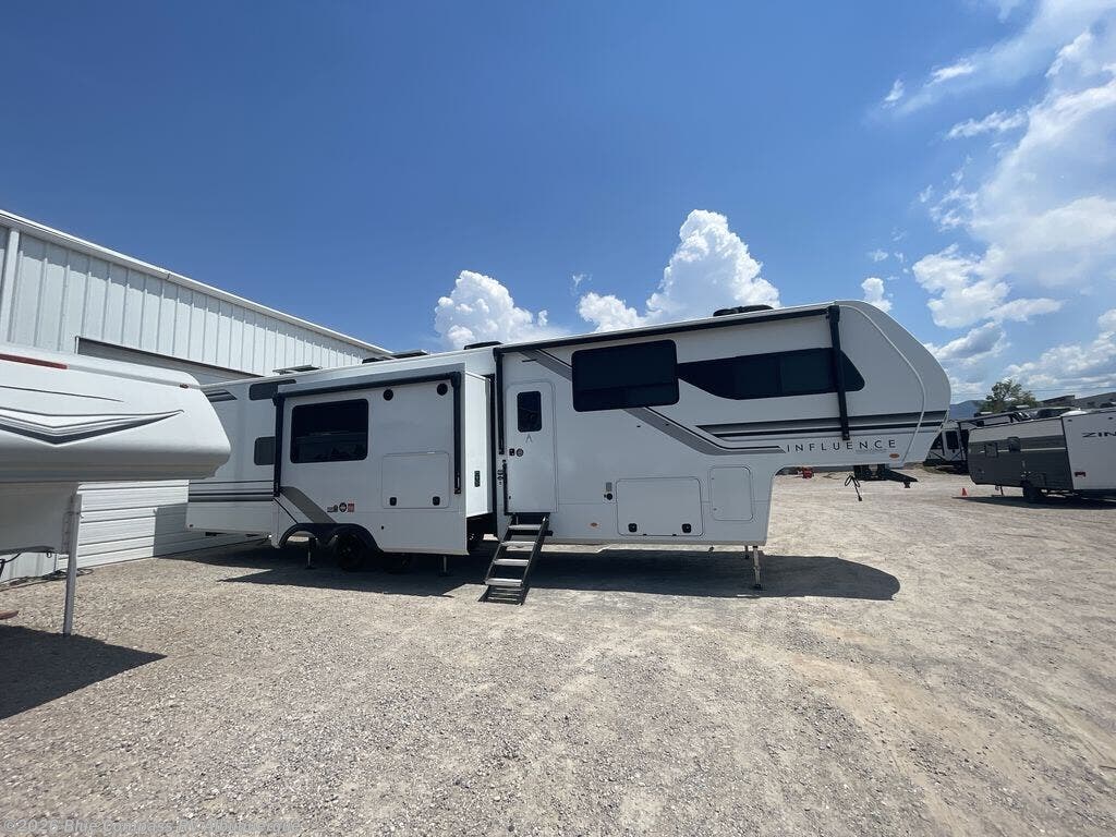 Any Grand Design Influence fifth wheel features five-sided aluminum cage construction with a walk-on roof and a fully enclosed underbelly with heated tanks and storage for all weather camping. For peace of mind, the MORryde CRE3000 Suspension system will provide safe and smooth towing, and the 101" widebody construction offers all the room you need and that is before multiple slides are fully engaged. You will appreciate the Keyed-Alike locks, slam-latch baggage doors with magnetic door catches, exterior security light, and SolidStep entry steps. On the inside, Congoleum flooring, premium roller shades for privacy, a hallway handrail for safety, and nightstands with USB ports to keep all of your electronics fully charged. You will also love the On Demand tankless water heater when showering, plus the added heat and ambiance from an electric fireplace, and so much more!