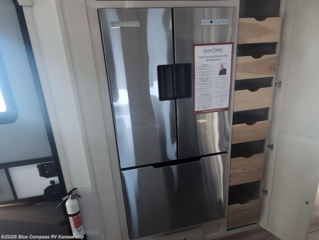 Any Grand Design Influence fifth wheel features five-sided aluminum cage construction with a walk-on roof and a fully enclosed underbelly with heated tanks and storage for all weather camping. For peace of mind, the MORryde CRE3000 Suspension system will provide safe and smooth towing, and the 101" widebody construction offers all the room you need and that is before multiple slides are fully engaged. You will appreciate the Keyed-Alike locks, slam-latch baggage doors with magnetic door catches, exterior security light, and SolidStep entry steps. On the inside, Congoleum flooring, premium roller shades for privacy, a hallway handrail for safety, and nightstands with USB ports to keep all of your electronics fully charged. You will also love the On Demand tankless water heater when showering, plus the added heat and ambiance from an electric fireplace, and so much more!