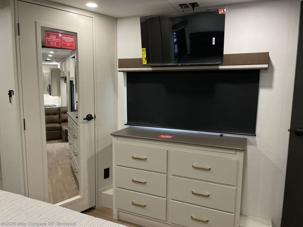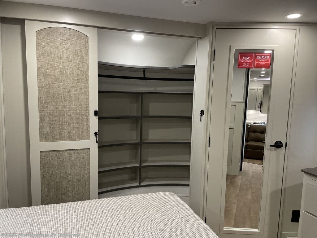 Any Grand Design Influence fifth wheel features five-sided aluminum cage construction with a walk-on roof and a fully enclosed underbelly with heated tanks and storage for all weather camping. For peace of mind, the MORryde CRE3000 Suspension system will provide safe and smooth towing, and the 101" widebody construction offers all the room you need and that is before multiple slides are fully engaged. You will appreciate the Keyed-Alike locks, slam-latch baggage doors with magnetic door catches, exterior security light, and SolidStep entry steps. On the inside, Congoleum flooring, premium roller shades for privacy, a hallway handrail for safety, and nightstands with USB ports to keep all of your electronics fully charged. You will also love the on demand tankless water heater when showering, plus the added heat and ambiance from an electric fireplace, and so much more!