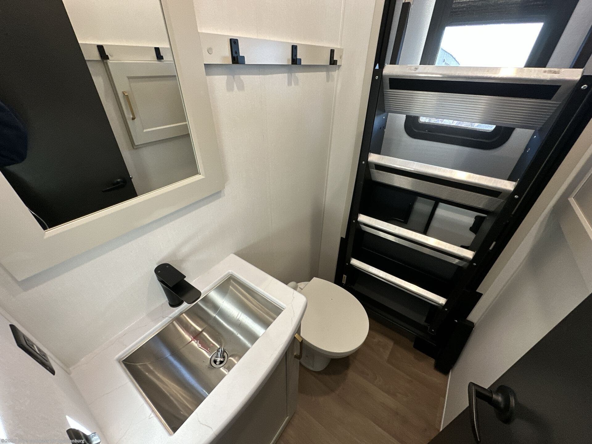 Your whole crew will love camping in this spacious fifth wheel! There is a rear private bunkhouse with a tri-fold sofa and fold-down bunk within a slide, plus a second bunk, storage space, and even a half bath with one of the dual entry doors to the unit for added convenience! You'll find your own space in the front private bedroom, complete with a queen bed slide out, a pass-thru clothes hamper that goes directly into the full bath, plus washer and dryer prep if you choose to add these appliances. A U-shaped kitchen includes ample counter space, a spice rack above the microwave, plus a flip-up countertop extension for even more prep space. There is also a U-shaped dinette where you can all dine around, plus an L-shaped sofa with recline at the end for relaxing space. And you're sure to appreciate the entertainment wall with an LED smart TV, fireplace and smart storage!