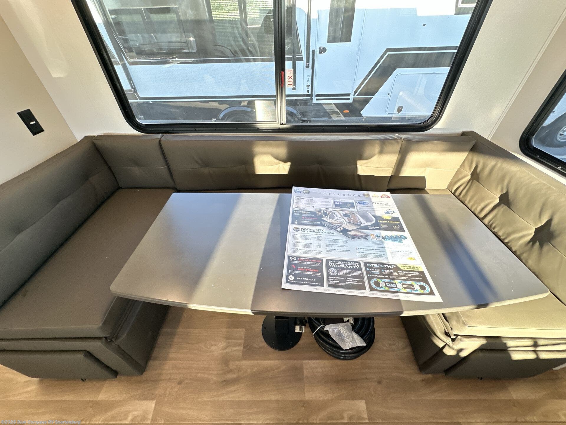 Any Grand Design Influence fifth wheel features five-sided aluminum cage construction with a walk-on roof and a fully enclosed underbelly with heated tanks and storage for all weather camping. For peace of mind, the MORryde CRE3000 Suspension system will provide safe and smooth towing, and the 101" widebody construction offers all the room you need and that is before multiple slides are fully engaged. You will appreciate the Keyed-Alike locks, slam-latch baggage doors with magnetic door catches, exterior security light, and SolidStep entry steps. On the inside, Congoleum flooring, premium roller shades for privacy, a hallway handrail for safety, and nightstands with USB ports to keep all of your electronics fully charged. You will also love the on demand tankless water heater when showering, plus the added heat and ambiance from an electric fireplace, and so much more!
