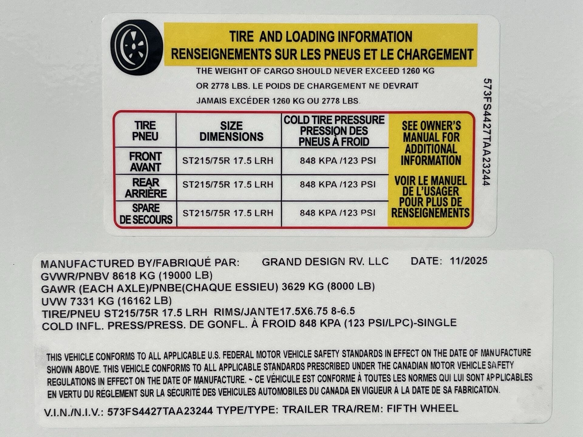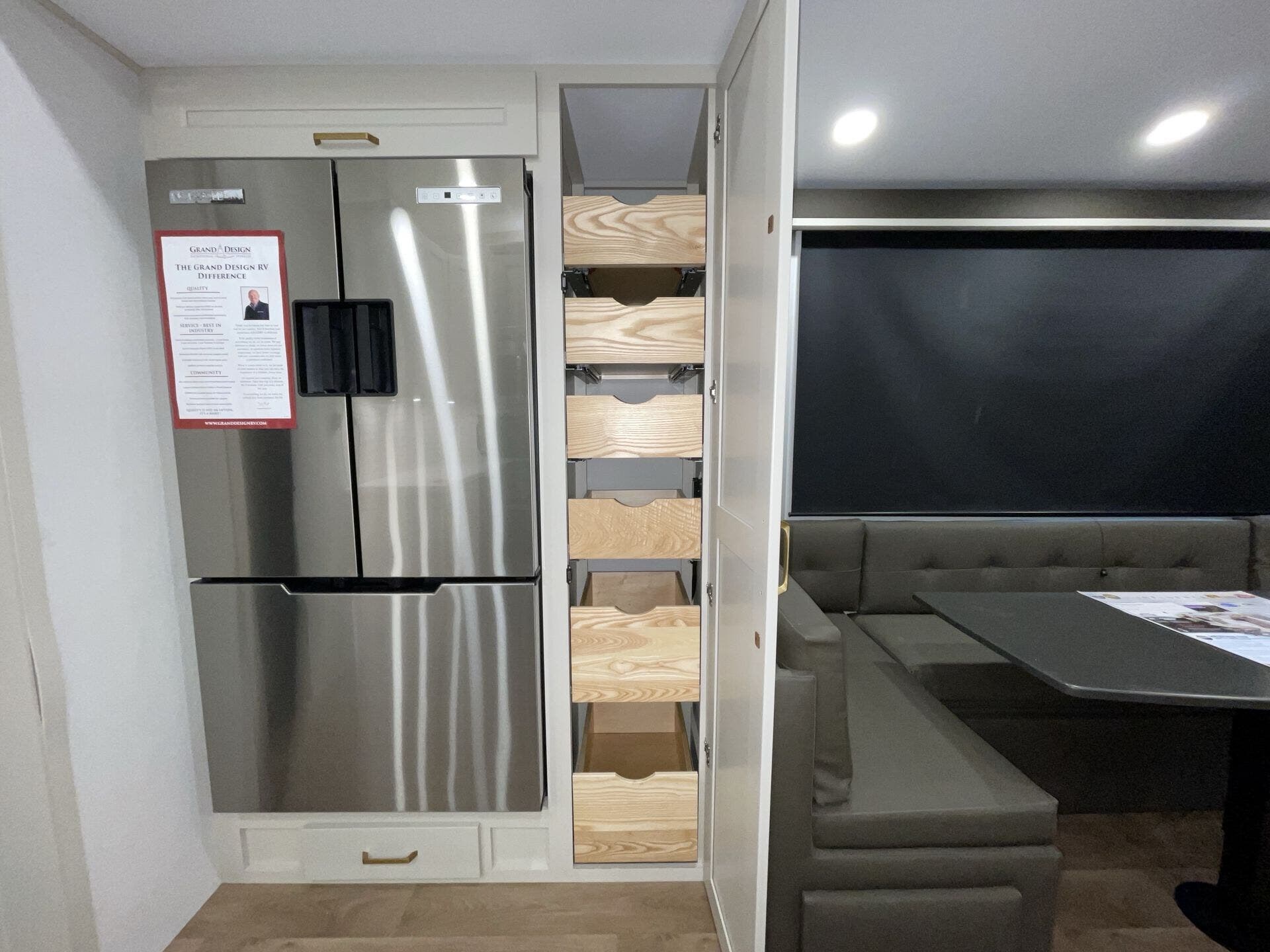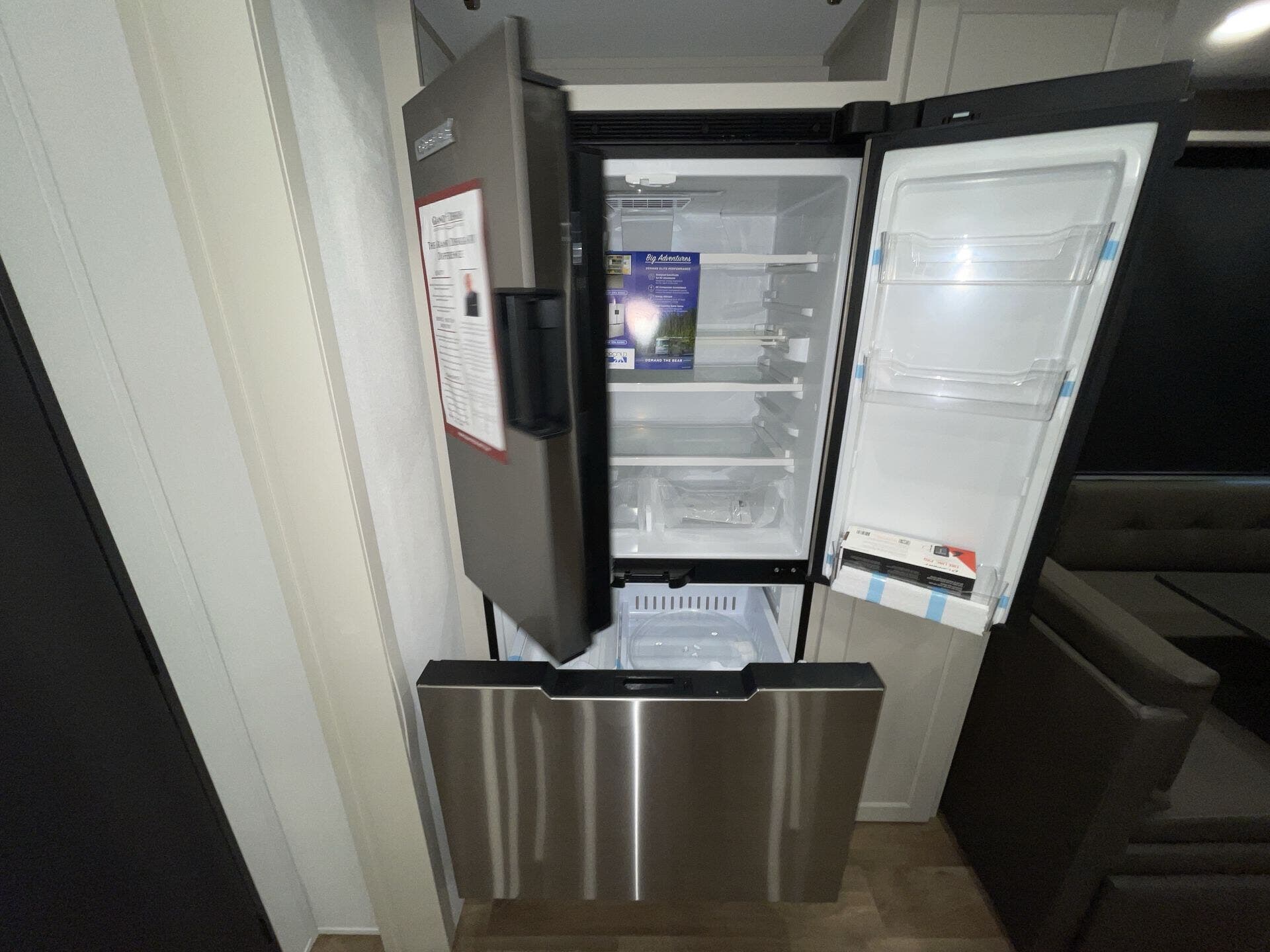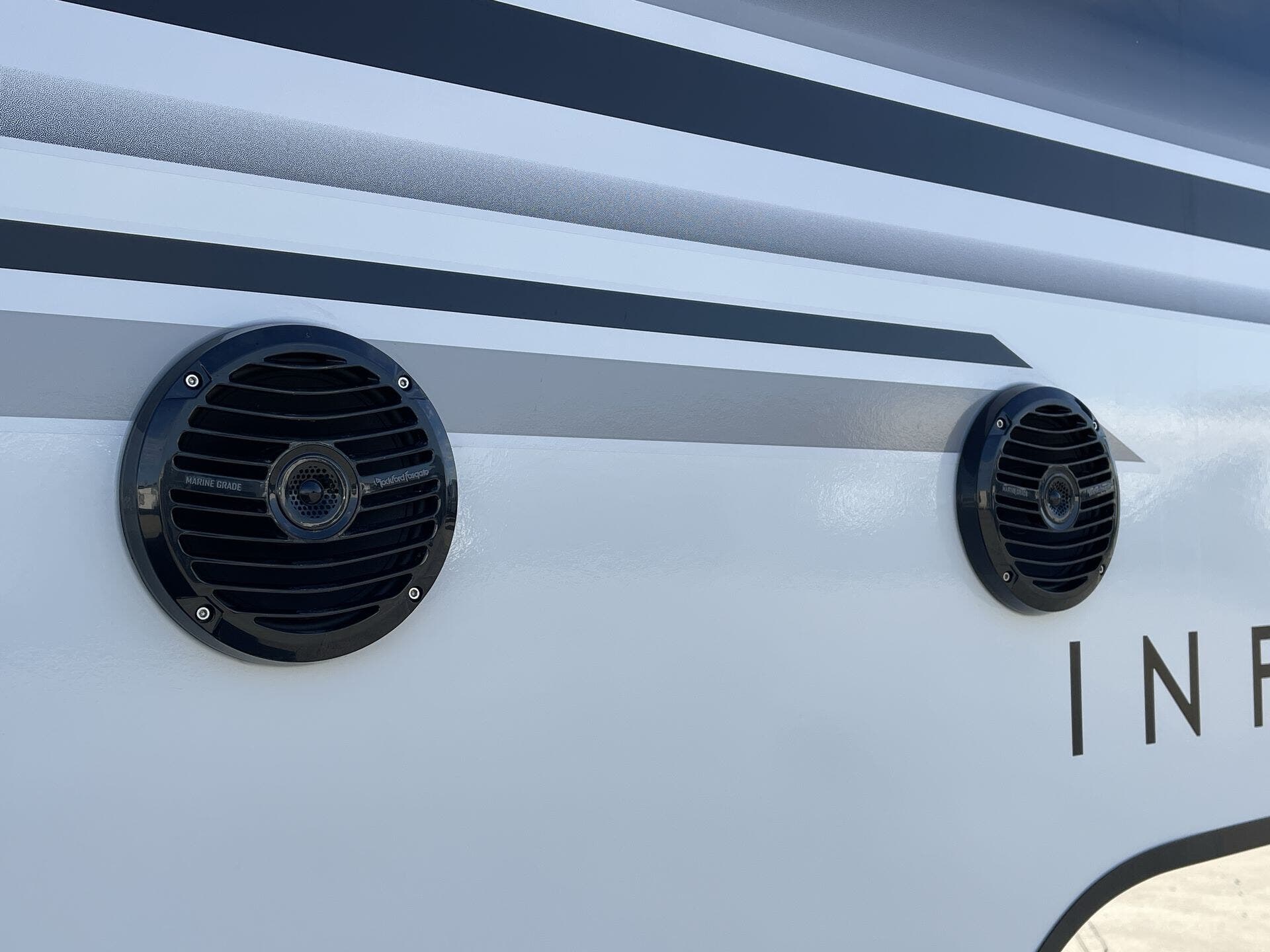 Awning, Black Tank Flush, Detachable Power Cord, Enclosed Underbelly, Exterior Refrigerator, Exterior Speakers, Fiberglass Sidewalls, Griddle, Heated Underbelly, Ladder, Mor-Ryde Suspension, Outside Kitchen, Pass Thru Storage, Power Awning, Power Roof Vent, Roof Deck, Roof Vent, Screen Door, Slam Latch Baggage Doors, Slideout, Spare Tire Kit -