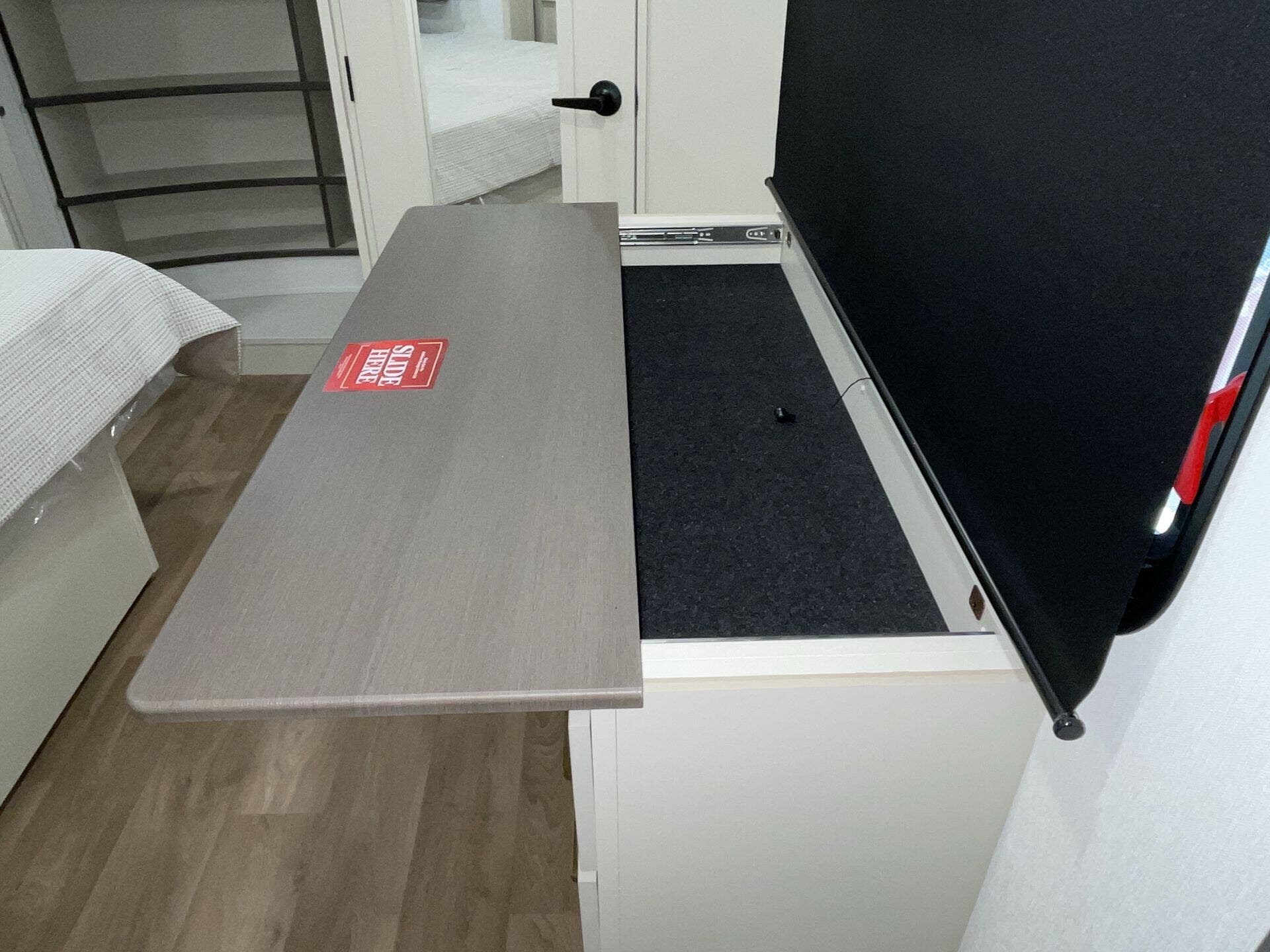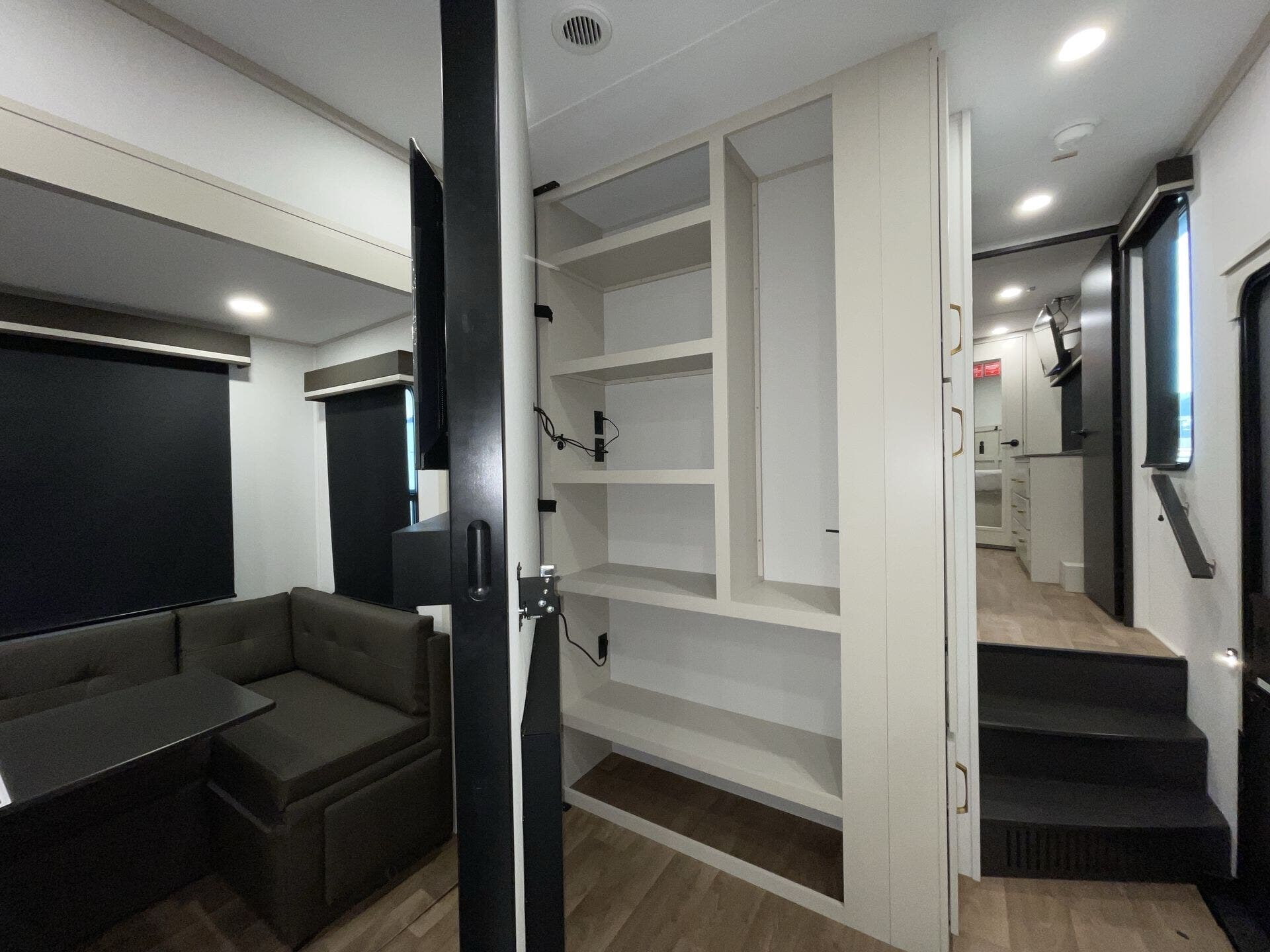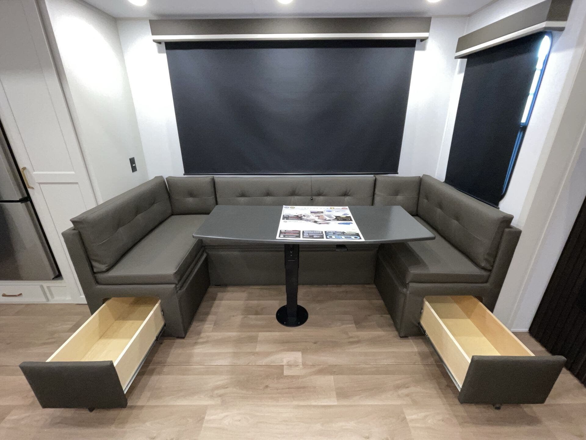 Bath & 1/2, Booth Dinette, Bunk Beds, Bunkhouse, Day/Night Shades, Dinette, Dinette Bed, Fireplace, Glass Shower Door, King Size Bed, Kitchen Sink, Medicine Cabinet, Overhead Cabinetry, Pantry, Pet Friendly, Roof Vents, Shower, Solid Surface Countertops, Theater Seating, Toilet, U-Shaped Dinette, Wardrobe(s), Washer/Dryer Prep
