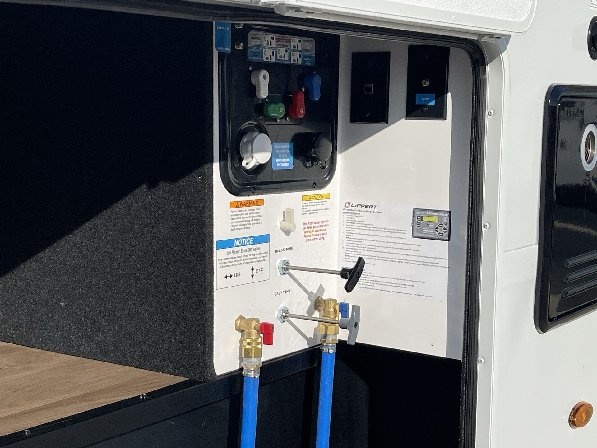 Massive water & utility capacities (83 gal fresh / 106 gal grey & black), plus tankless water heater — great for longer trips